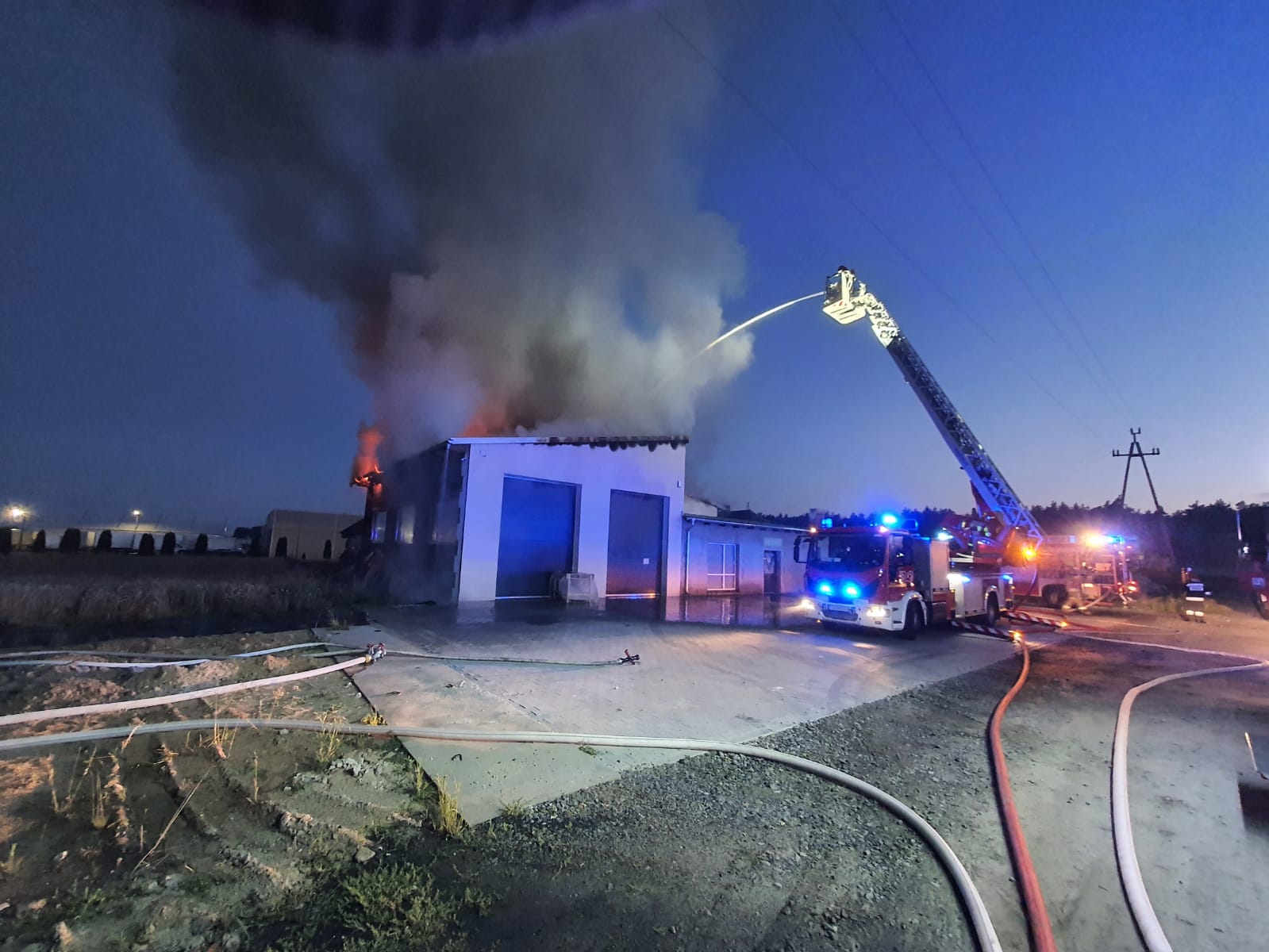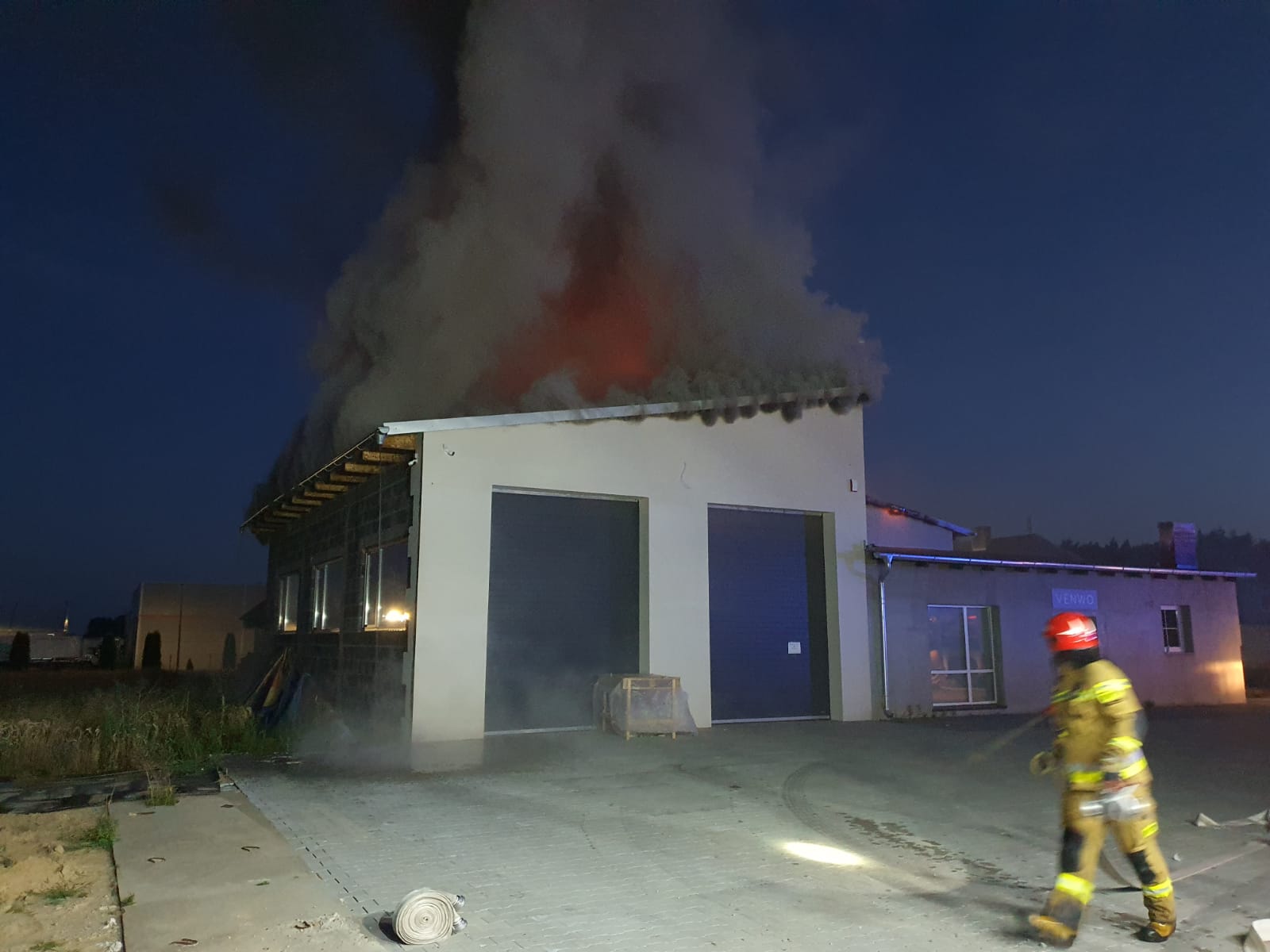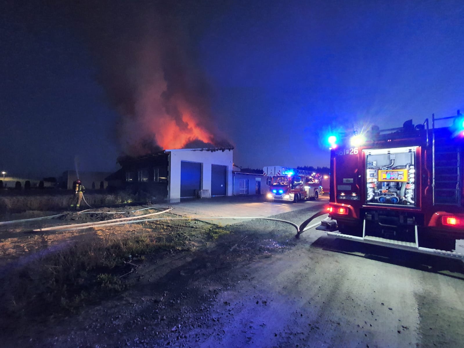 30.07.2020 - Pożar budynku produkcyjno-magazynowego przy ul. Kępińskiej w miejscowości Bralin.