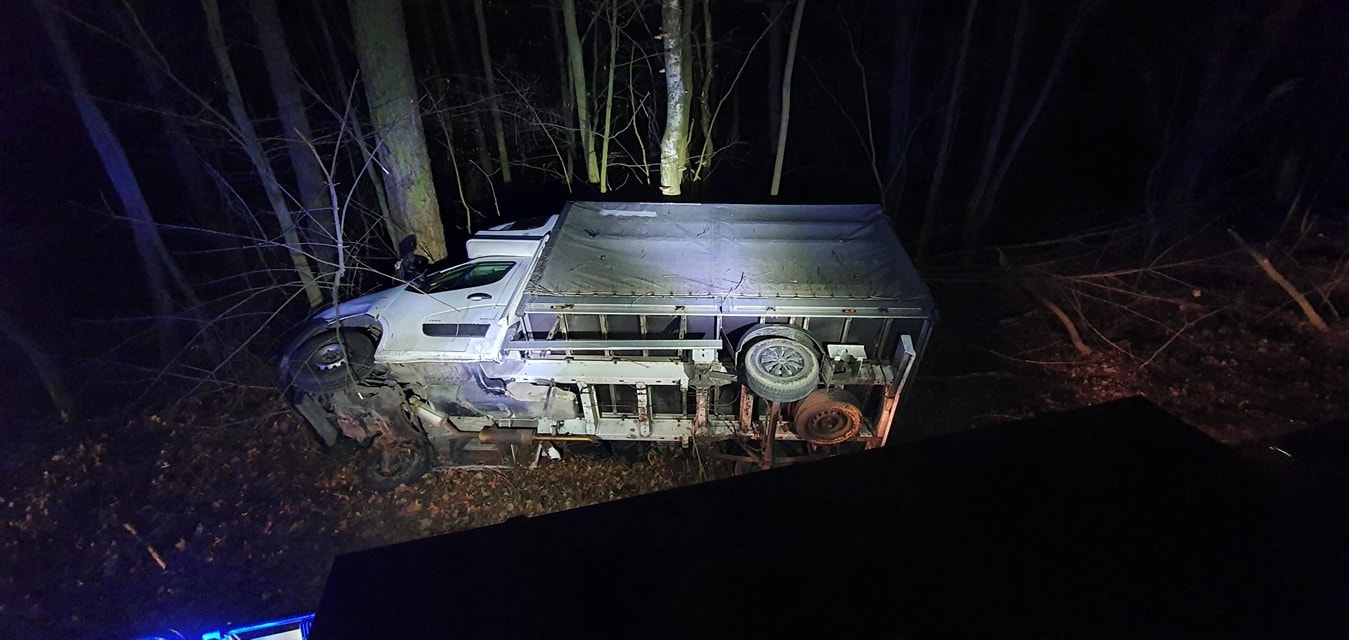 31.03.2021 - SAMOCHÓD DOSTAWCZY WYPADŁ Z DROGI