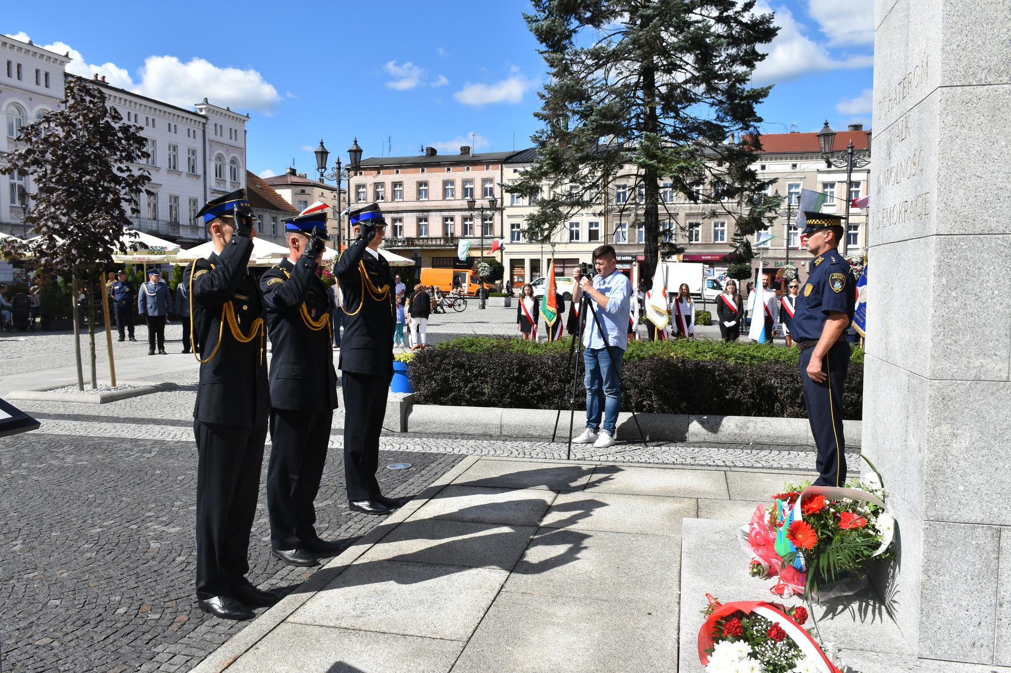 Podczas uroczystości funkcjonariusze oddali hołd ofiarom II wojny światowej, złożyli kwiaty pod pomnikiem "Bohaterów walk o wolność i niepodległość" na kępińśkim rynku.