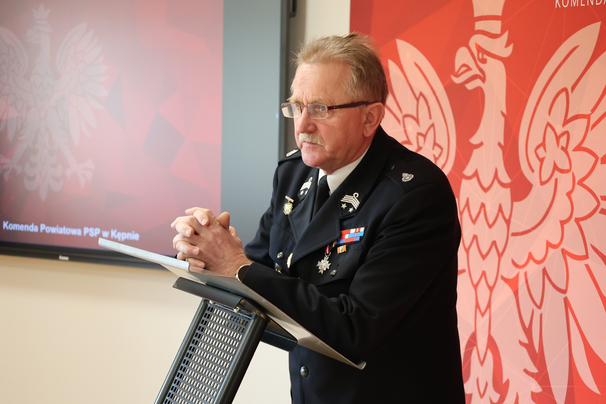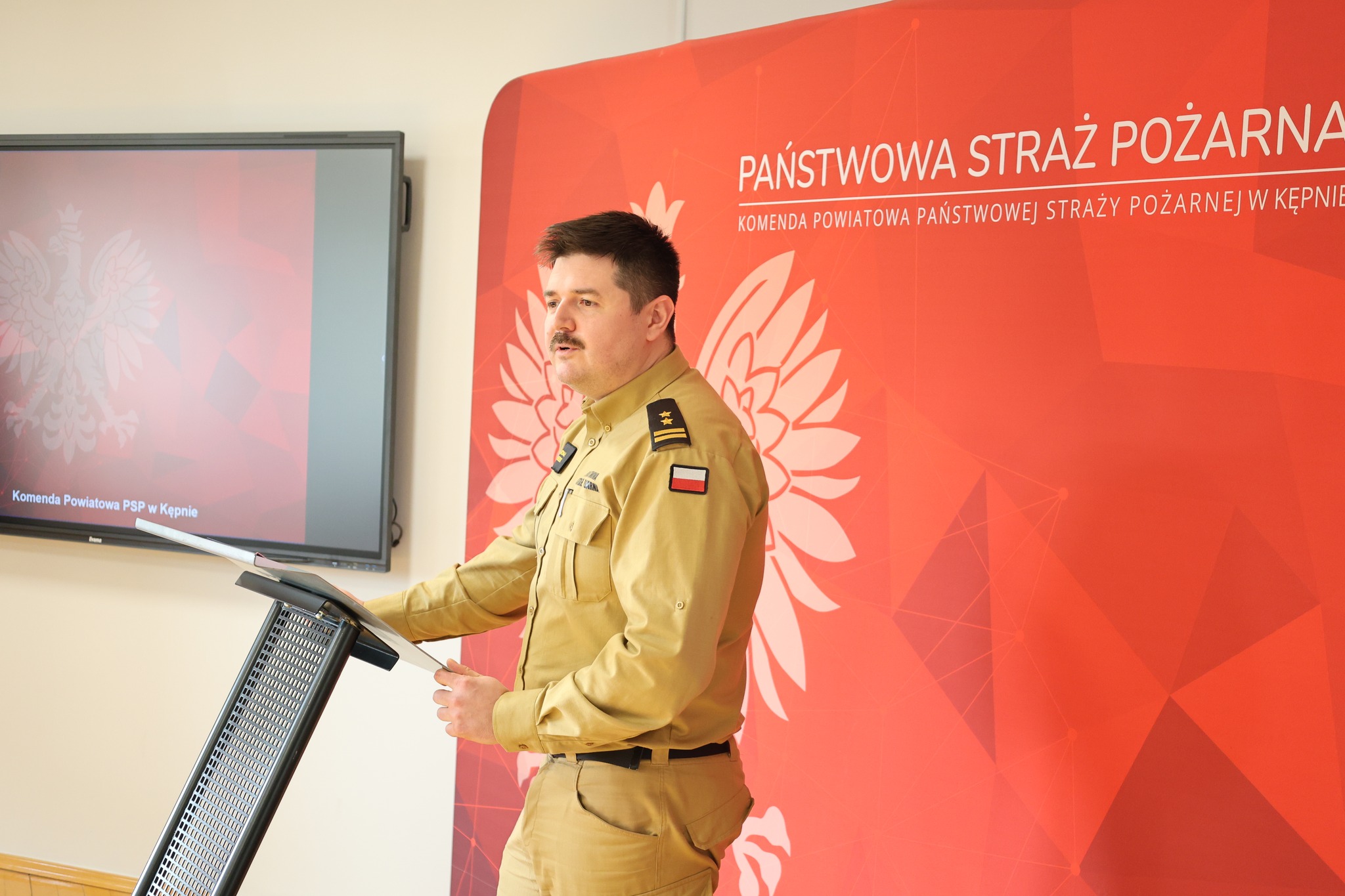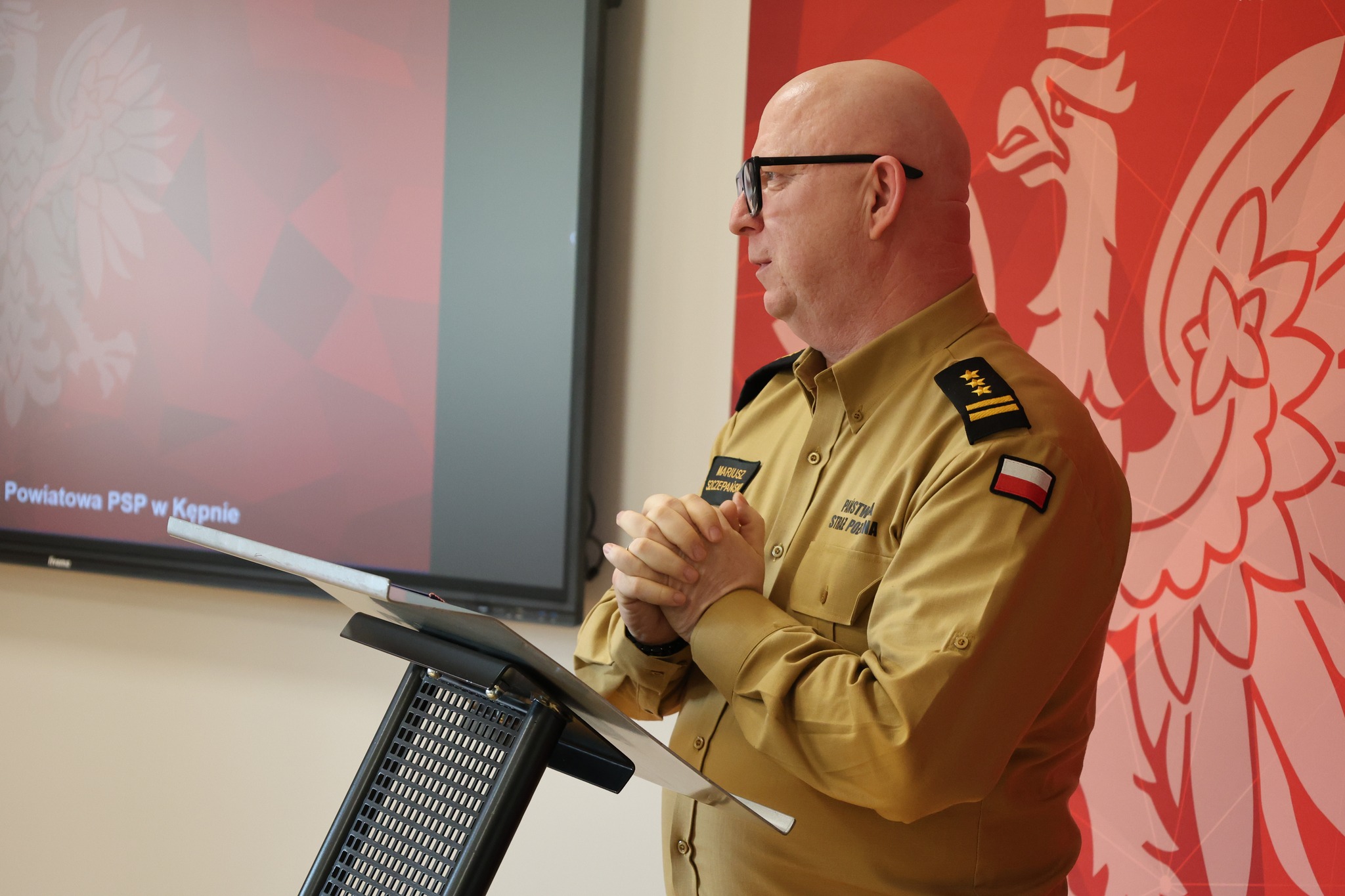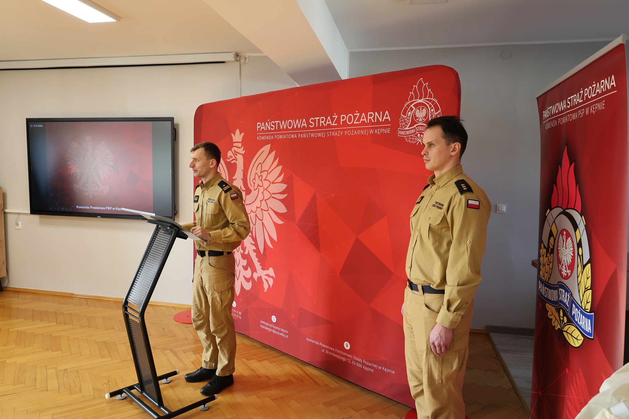 W siedzibie Komendy Powiatowej Państwowej Straży Pożarnej w Kępnie odbyła się odprawa służbowa podsumowująca działalność w 2025 roku. W spotkaniu uczestniczyli przedstawiciele władz samorządowych, służb współpracujących oraz funkcjonariusze i pracownicy komendy.