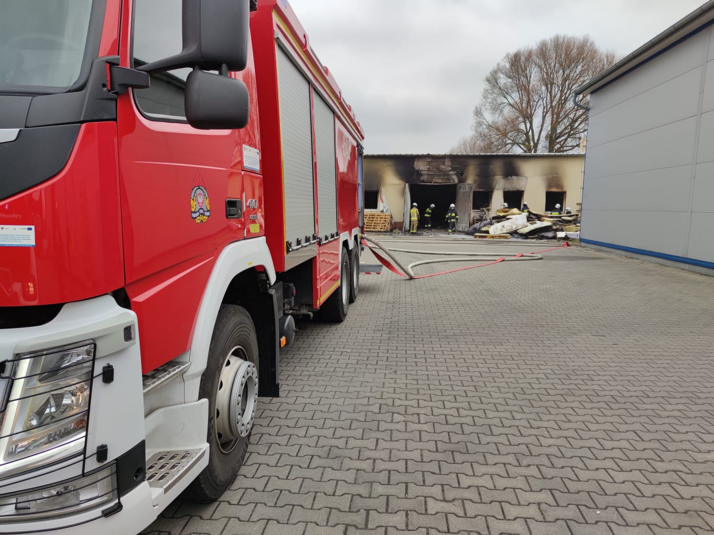 Przybyli na miejsce strazacy zastali objętą w połowie pożarem halę magazynową o wymiarach 50x10 metrów. W czasie powstania pożaru w budynku znajdowały się dwie pracownice, które opuściły obiekt przed przybyciem straży pożarnej.