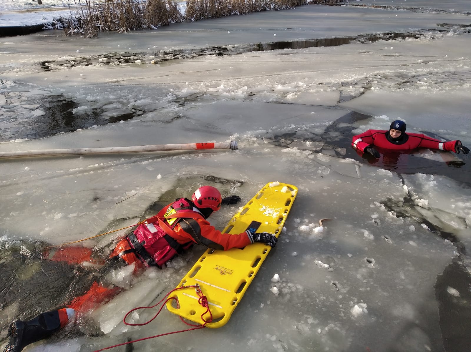 W dniach 14-15.01.2021 r. na akwenie przyległym do obiektów Kępińskiego Ośrodka Sportu i Rekreacji odbyły się ćwiczenia z zakresy ratownictwa na lodzie.
