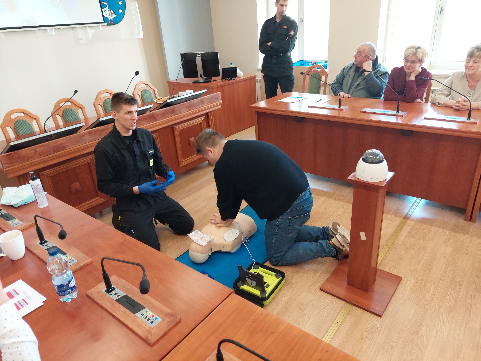 W czwartek 28 kwietnia funkcjonariusze Komendy Powiatowej Państwowej Straży Pożarnej w Kępnie przeprowadzili w Starostwie Powiatowym w Kępnie zajęcia z zakresu bezpieczeństwa pożarowego oraz zasad udzielania pierwszej pomocy z naciskiem na używanie defibrylatora AED.