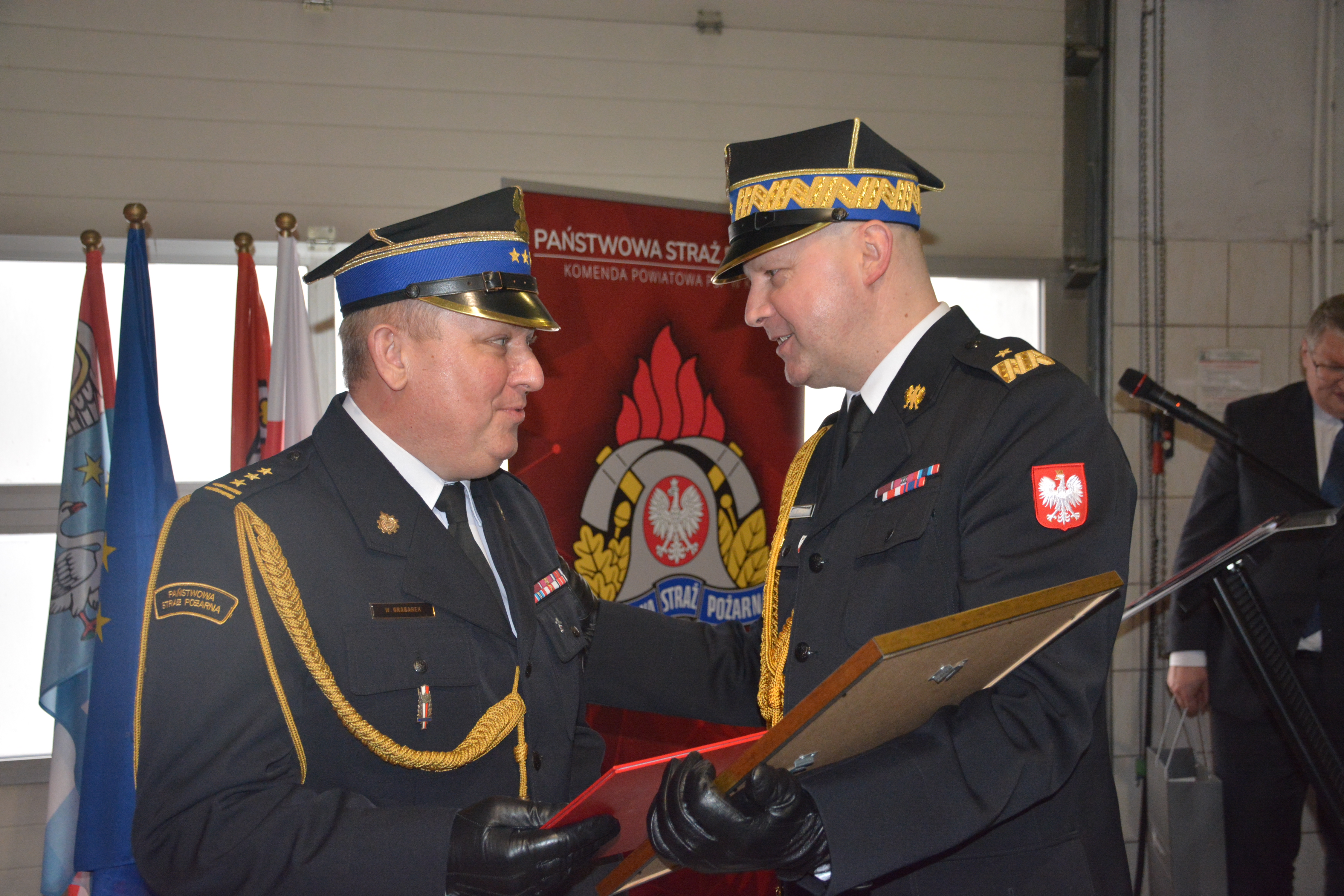 Przechodzący na zaopatrzenie emerytalne Komendant złożył meldunek o zakończeniu służby nabryg. Dariuszowi Matczakowi Wielkopolskiemu Komendantowi Wojewódzkiemu Państwowej Straży Pożarnej, który podziękował za oddaną służbę w szeregach Państwowej Straży Pożarnej i zaangażowanie w realizację powierzonych zadań.
