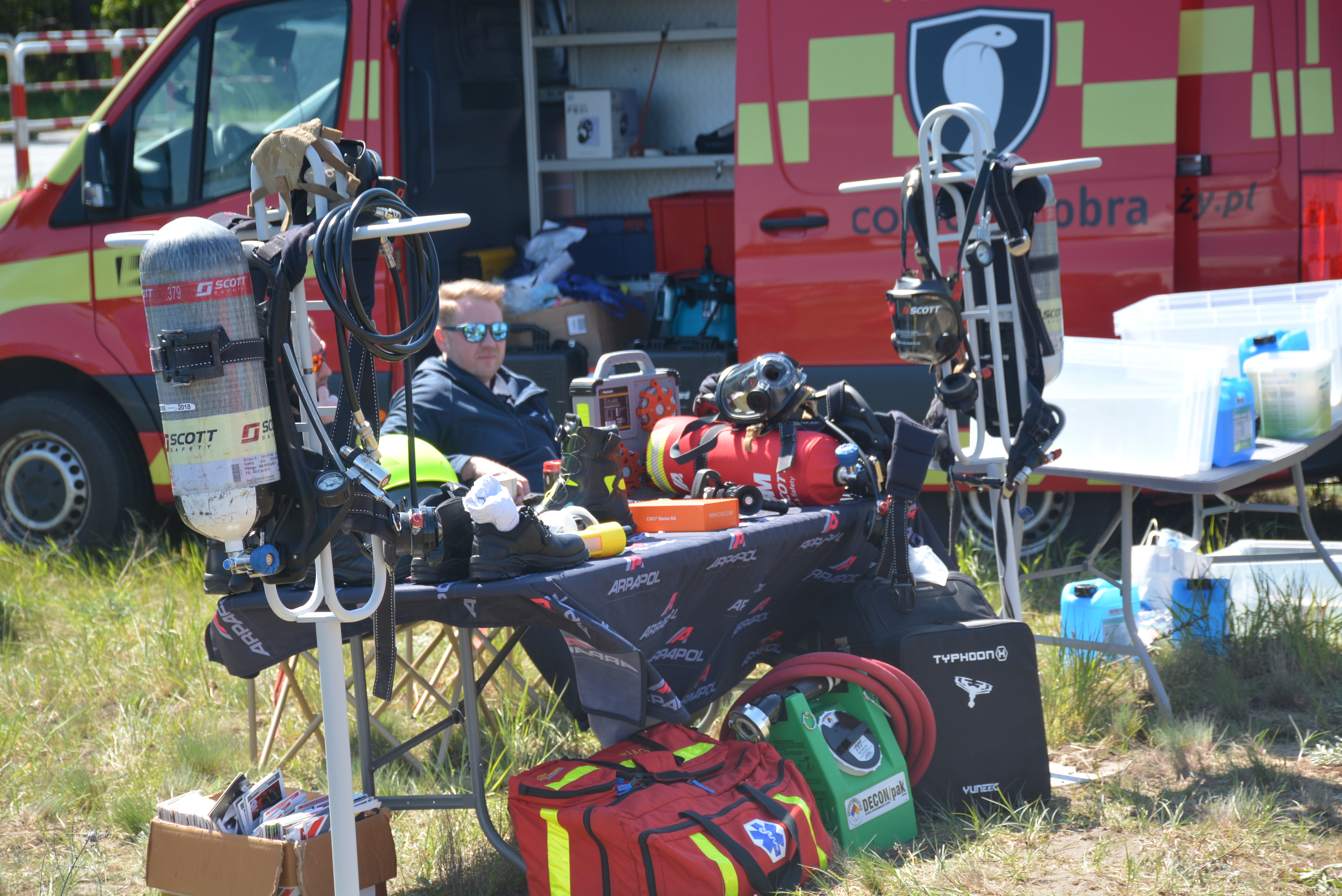 Dzięki obecności przedstawicieli firm dystrybuujących sprzęt do jednostek PSP i OSP na ćwiczeniach była możliwość przetestowania aparatów ochrony układu oddechowego, kamer termowizyjnych oraz armatury pożarniczej. Ponadto na miejscu obecny był również przedstawiciel firmy zajmującej się profesjonalnym myciem i dezynfekcją manualną masek i sprzętu osobistego.