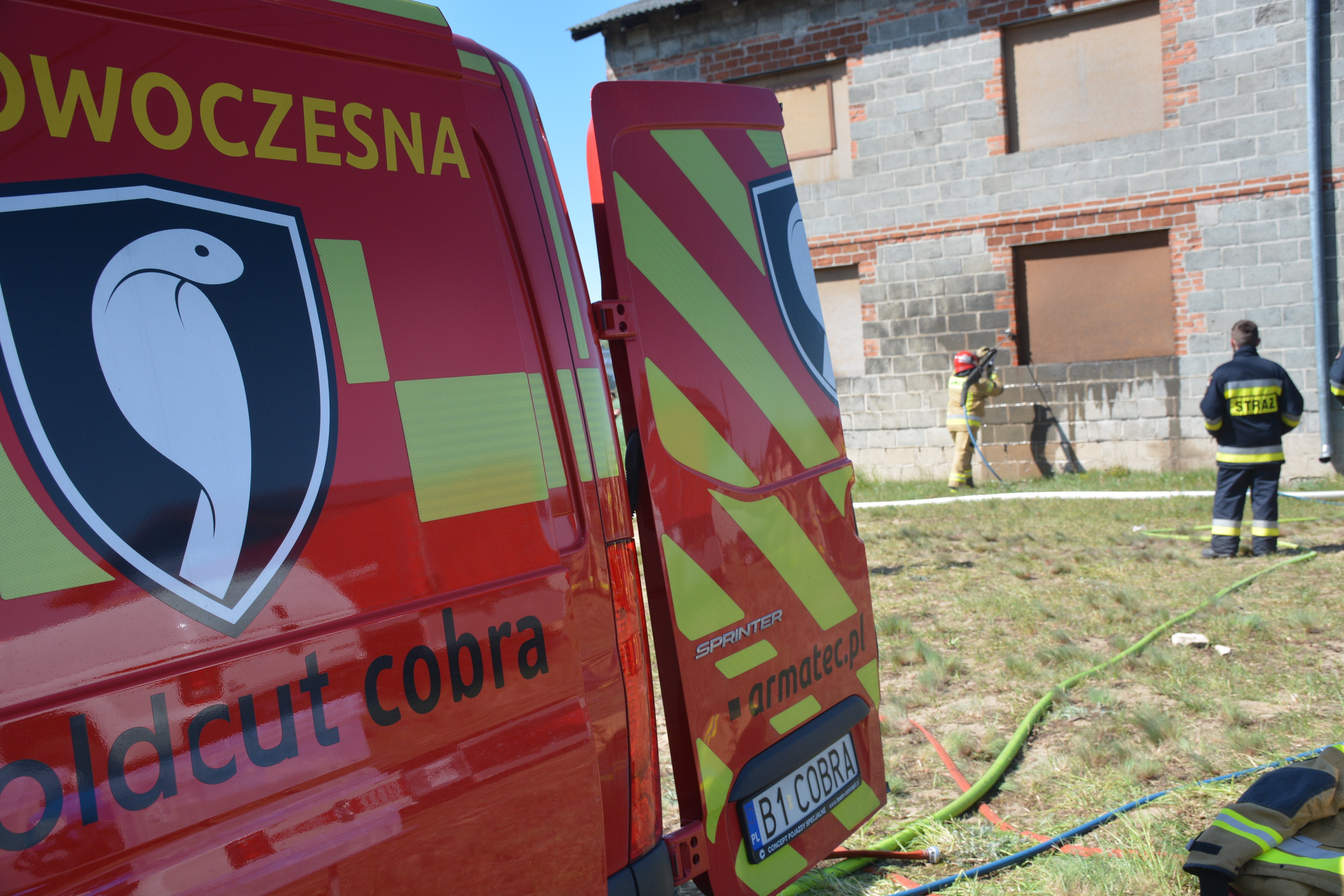 Obserwacja pożaru testowego oraz gaszenie z wykorzystaniem kombinacji Olsztyńskiej. Obserwacja realnego rozwoju pożaru wewnątrz obiektu, oraz „resetowanie” pożaru przy pomocy 3 różnych wariantów: prądownice Turbo, system piany sprężonej CAFS oraz lancy gaśniczej systemu COBRA.
