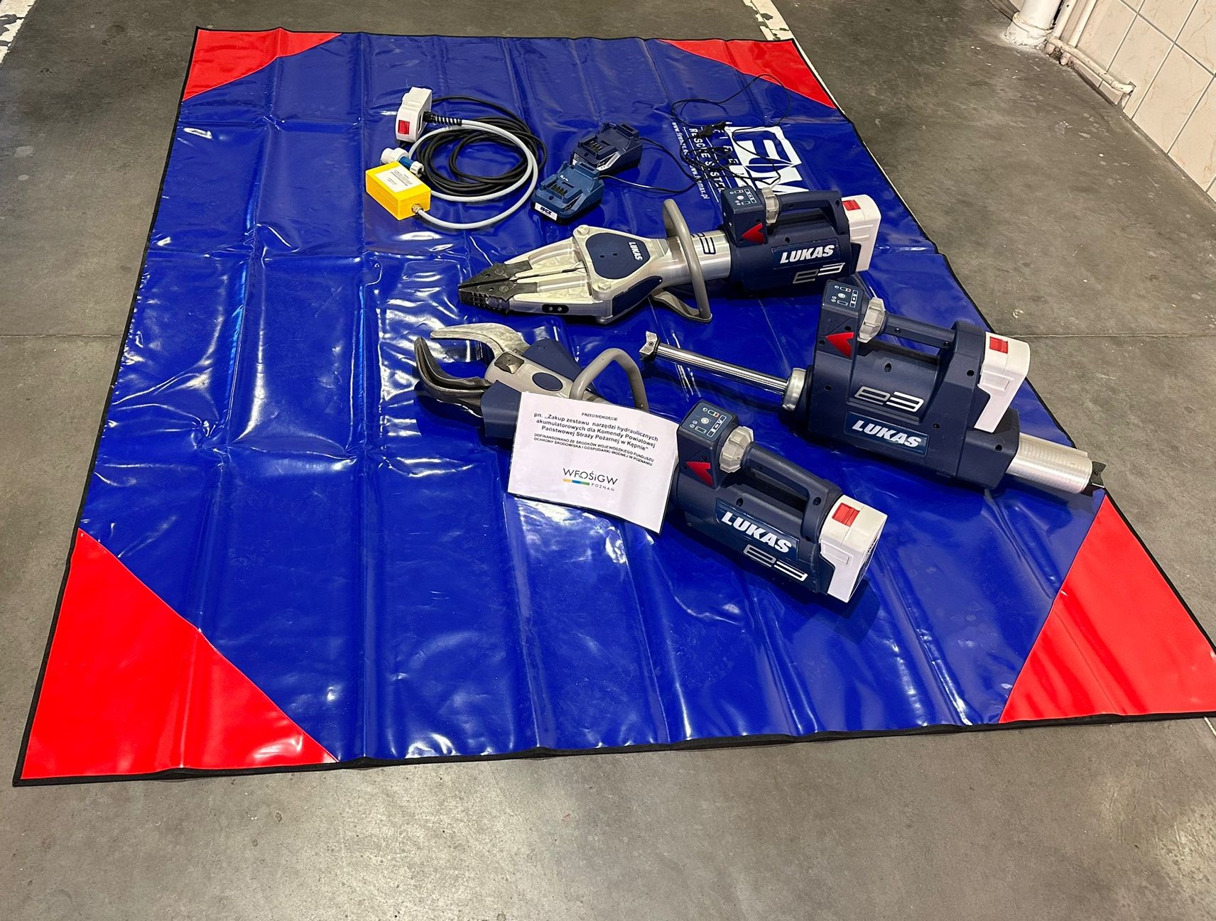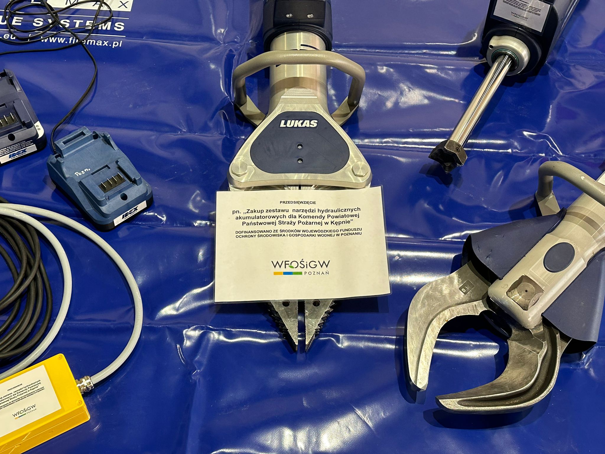 Komenda Powiatowa Państwowej Straży Pożarnej w Kępnie pozyskała nowy zestaw narzędzi hydraulicznych w ramach przedsięwzięcia pn. "Zakup zestawu narzędzi hydraulicznych akumulatorowych dla Komendy Powiatowej Państwowej Straży w Kępnie".