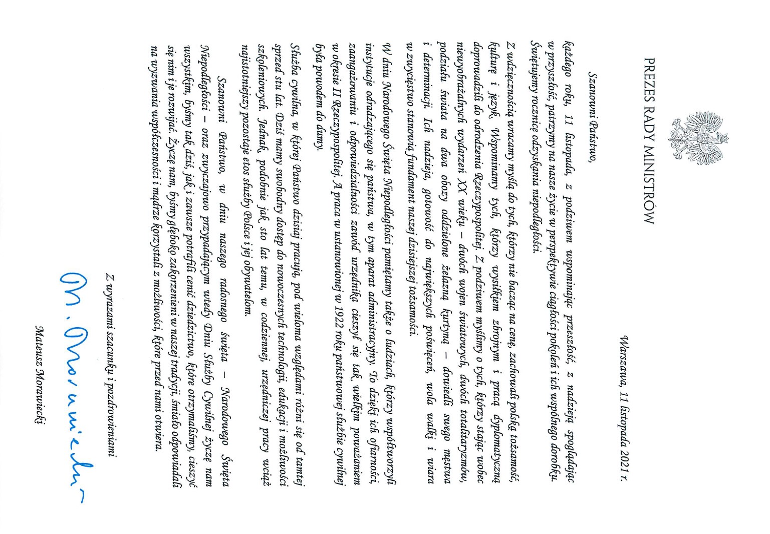 Pismo Kierownictwa Komendy Głównej Państwowej Straży Pożarnej11_listopada_zyczenia_KG_PSP.pdf 0.25MB List Prezesa Rady Ministrów Mateusza Morawieckiego