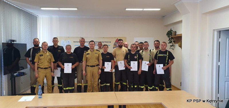 Warunkiem przystąpienia do części praktycznej było odbycie szkolenia teoretycznego w formie e learningu zakończonego egzaminem i wydaniem zaświadczenia. 25 czerwca 2023 roku w Sali Konferencyjnej kętrzyńskiej komendy 14 słuchaczy podeszło do egzaminu końcowego. Tego samego dnia 14 absolwentów odebrało zaświadczenie po zdanym egzaminie. Zaświadczenia przekazał Zastępca Komendanta Powiatowego PSP w Kętrzynie który jednocześnie był przewodniczącym komisji egzaminacyjnej.