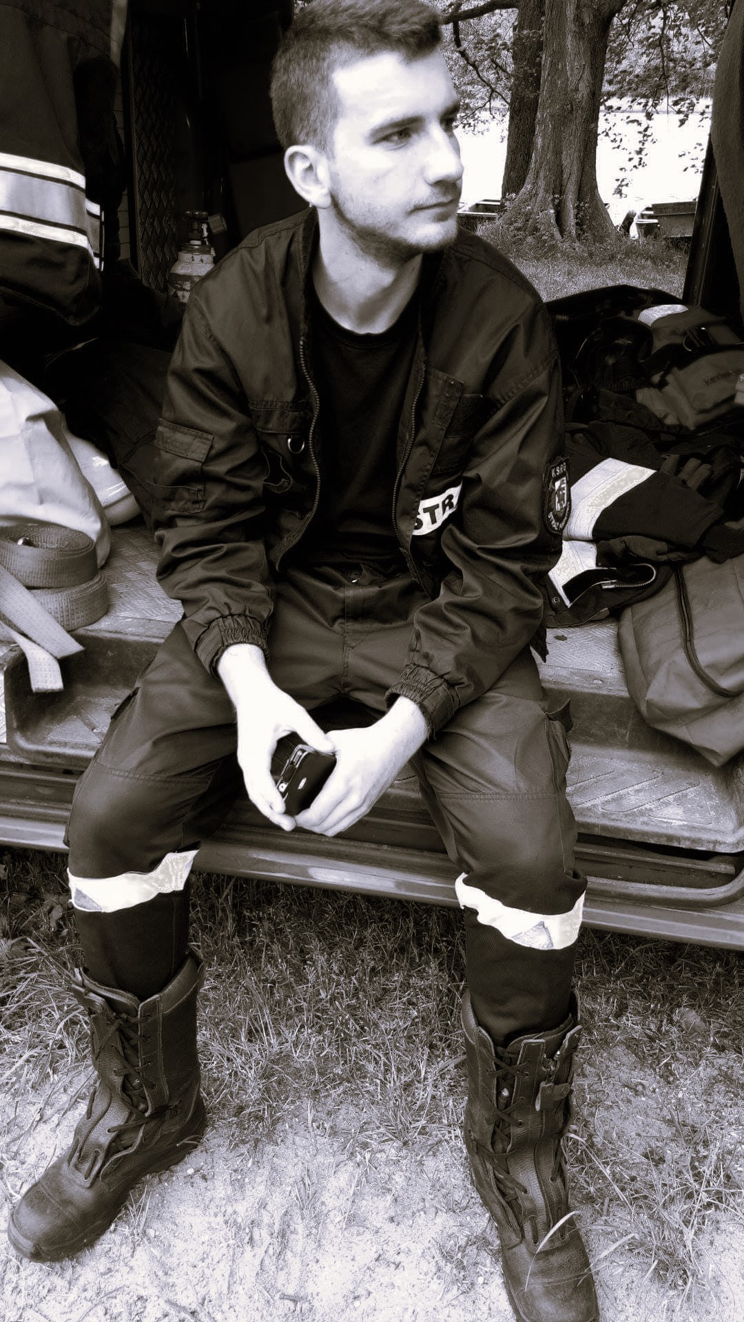 Pierwsze kroki stawiał w Ochotniczej Straży Pożarnej w Dobrym Mieście w Młodzieżowej Drużynie Pożarniczej, a od 2014 r. brał już czynny udział w działaniach ratowniczych. Był również ratownikiem medycznym, działał aktywnie w stowarzyszeniu Joannici Dzieło Pomocy, prowadzącym działalność w obszarze ratownictwa i edukacji medycznej. Do służby w Państwowej Straży Pożarnej przyjęty został 1 października 2017 r. na stanowisko stażysty w Jednostce Ratowniczo Gaśniczej Komendy Powiatowej PSP w Kętrzynie.