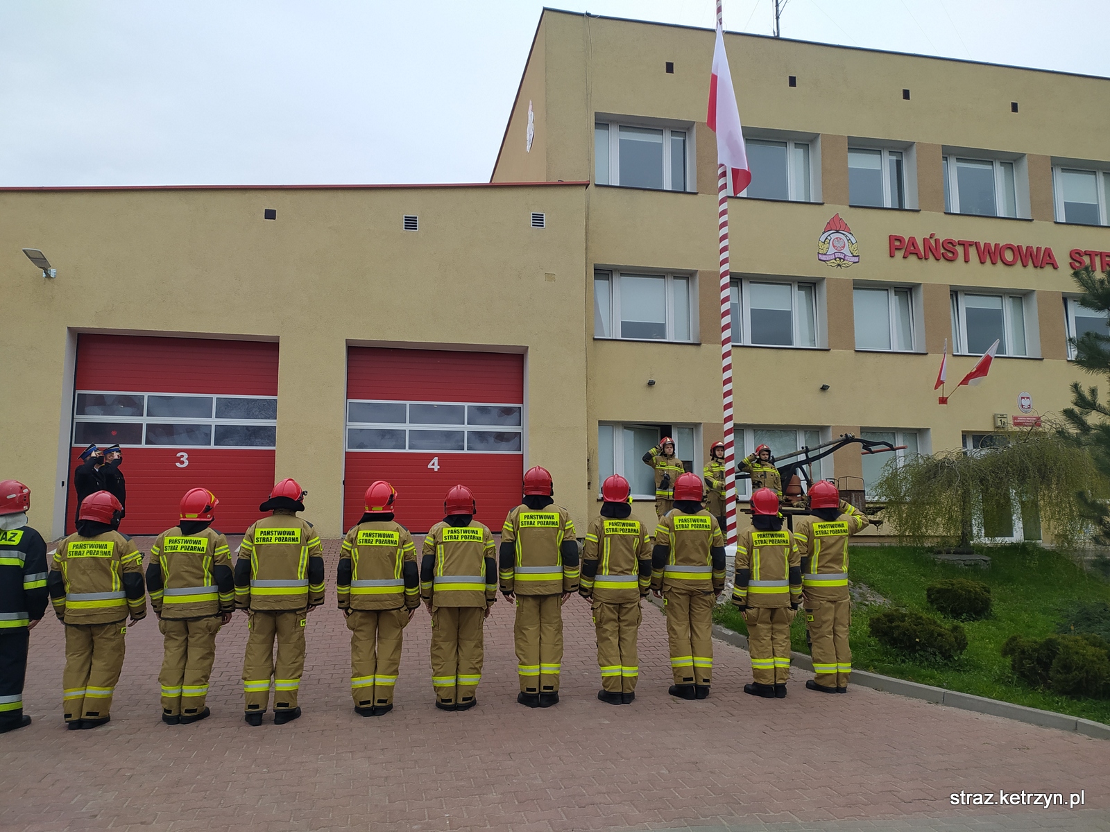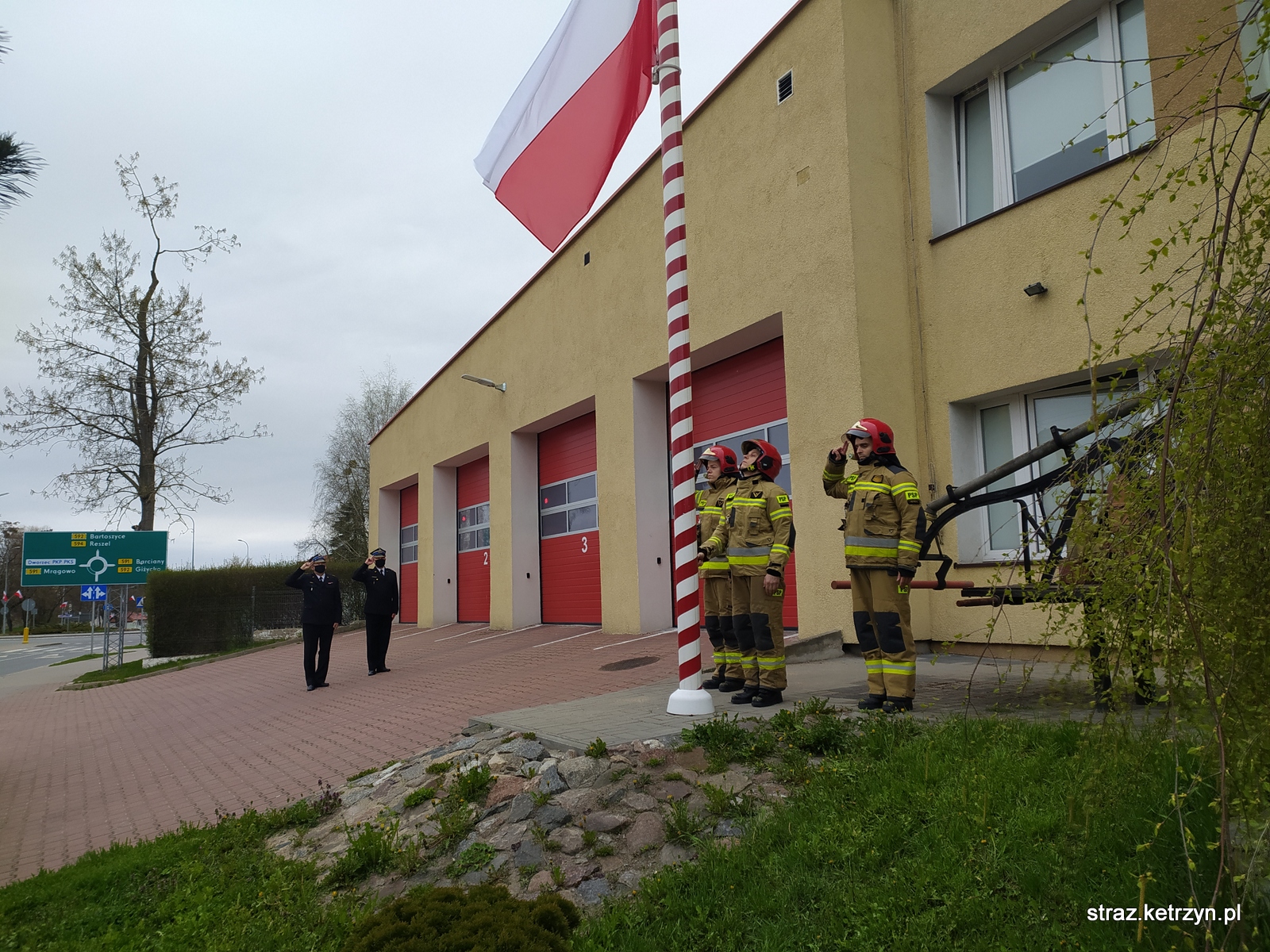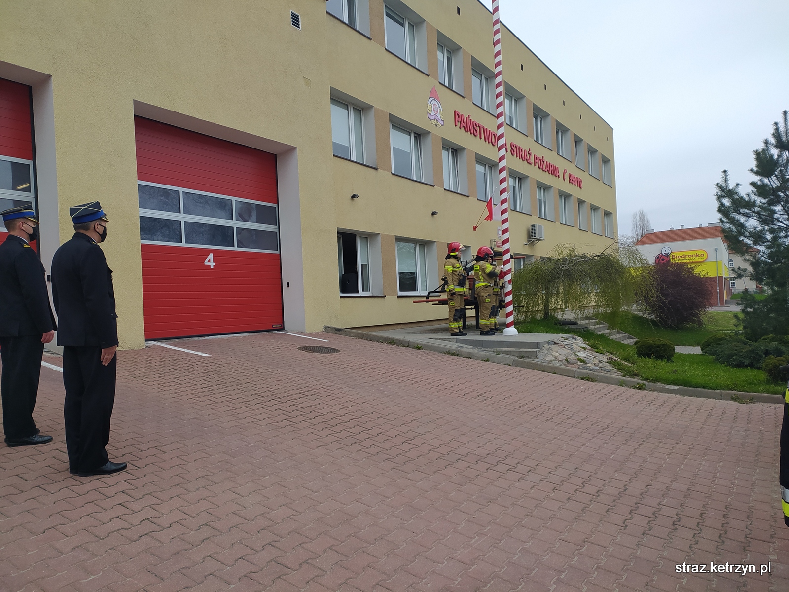 02.05.2021 roku przed budynkiem KP PSP w Kętrzynie odbyła się uroczysta zmiana służby z podniesieniem flagi na maszt.