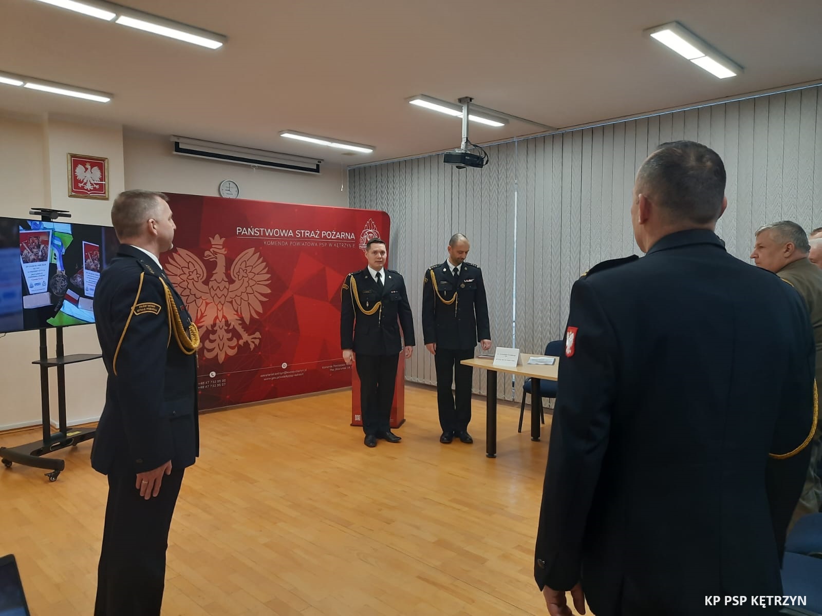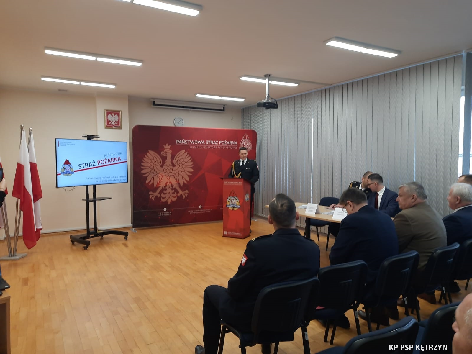 Narada rozpoczęła się od złożenia meldunku st. bryg. Michałowi Kamienieckiemu Warmińsko–Mazurskiemu Komendantowi Wojewódzkiemu PSP. Odczytano decyzję powierzenia obowiązków Zastępcy Komendanta Powiatowego PSP w Kętrzynie z dniem 1 marca mł. bryg. Ireneuszowi Harhaj. Następnie głos zabrał mł. bryg. Kamil Golon p. o. Komendant Powiatowy PSP w Kętrzynie, który przywitał zaproszonych gości i przedstawił prezentację całorocznej działalności kętrzyńskiej Komendy oraz plany na rok 2024.