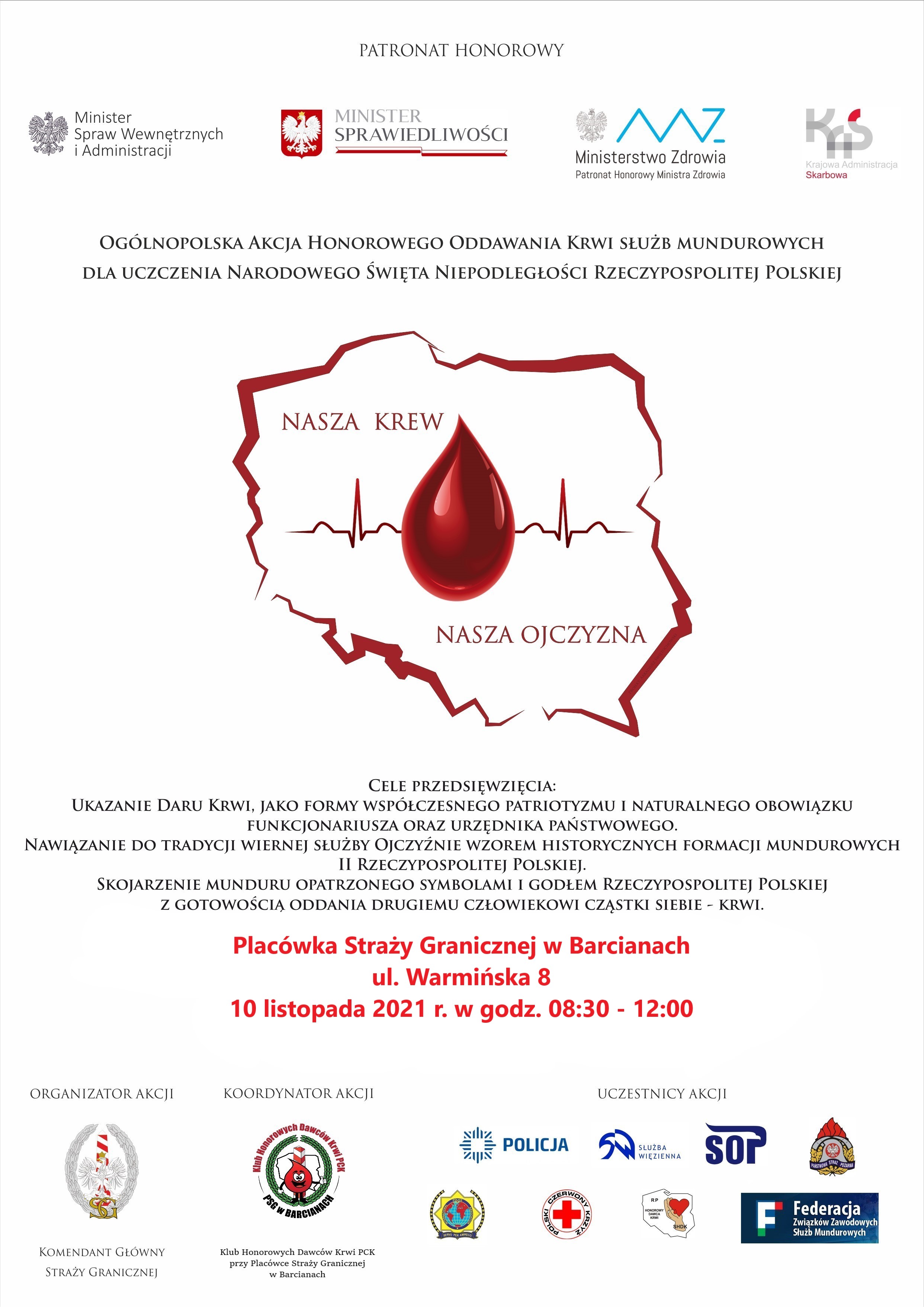 Ogólnopolska akcja honorowego oddawania krwi służb mundurowych dla uczczenia Narodowego Święta Niepodległości Rzeczypospolitej Polskiej.