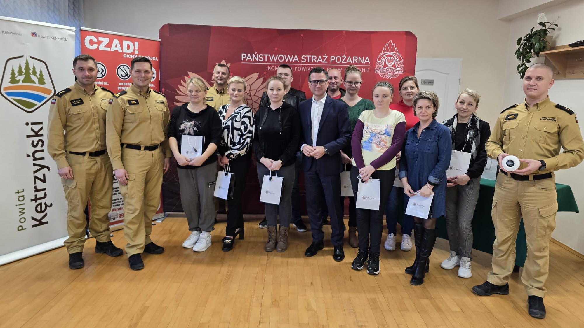 W dniu 6 listopada br. nagrody, w postaci czujek tlenku węgla i dymu, zostały przekazane wylosowanym laureatom przez Starostę Kętrzyńskiego Michała Kochanowskiego oraz Komendanta Powiatowego PSP w Kętrzynie mł.bryg. Kamila Golon.