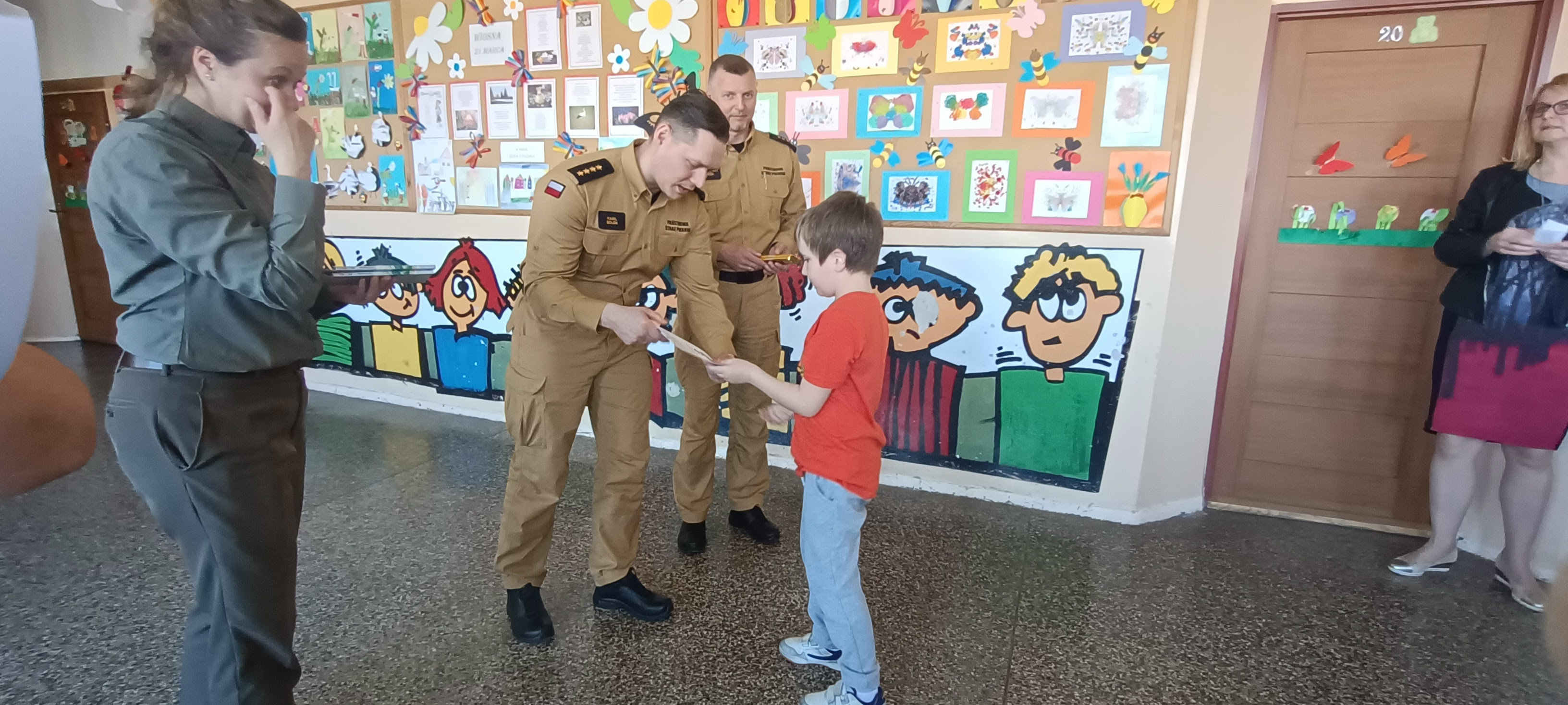 Z tej okazji 5 maja uczniowie Szkoły Podstawowej nr 4 im. Stanisława Moniuszki w Kętrzynie postanowili w wyjątkowy sposób podziękować za trud służby strażaków oraz pracy leśników, tworząc niezliczoną ilość laurek oraz plakatów. Strażacy oraz Pani leśnik mieli okazję przedstawić szczegóły swoich zawodów co jak zawsze spotkało się z ogromnym zainteresowaniem słuchaczy. Nie obyło się także bez pokazu sprzętu strażackiego. W związku z wykonaniem dużej ilości prac plastycznych, dyrekcja szkoły postanowiła wyłonić najlepsze z nich. Strażacy z KP PSP w Kętrzynie mieli przyjemność wziąć udział we wręczeniu dyplomów i upominków. Wykonane prace jednocześnie tworzą GIGA interaktywną laurkę składającą się z tysięcy laurek namalowanych przez przedszkolaków i dzieci szkół podstawowych z całej Polski.