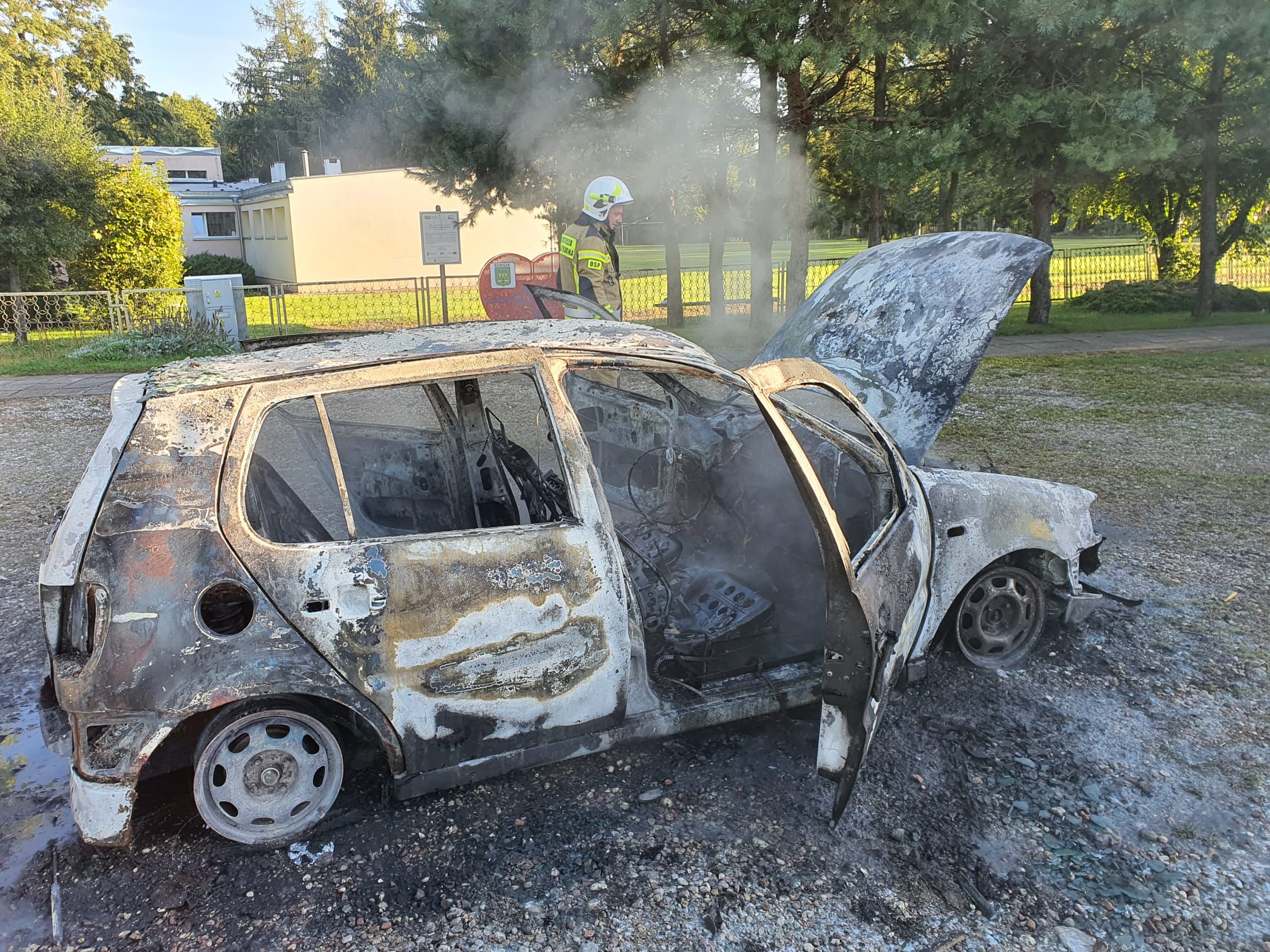 VW Polo uległ całkowitemu spaleniu. W działaniach udział brały 2 zastępy straży pożarnej (10 strażaków) oraz patrol policji.
