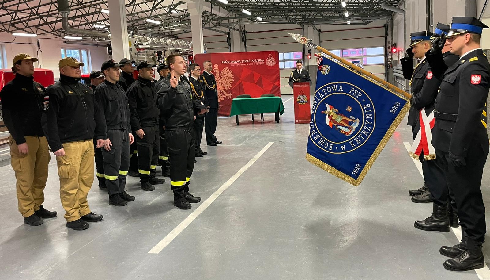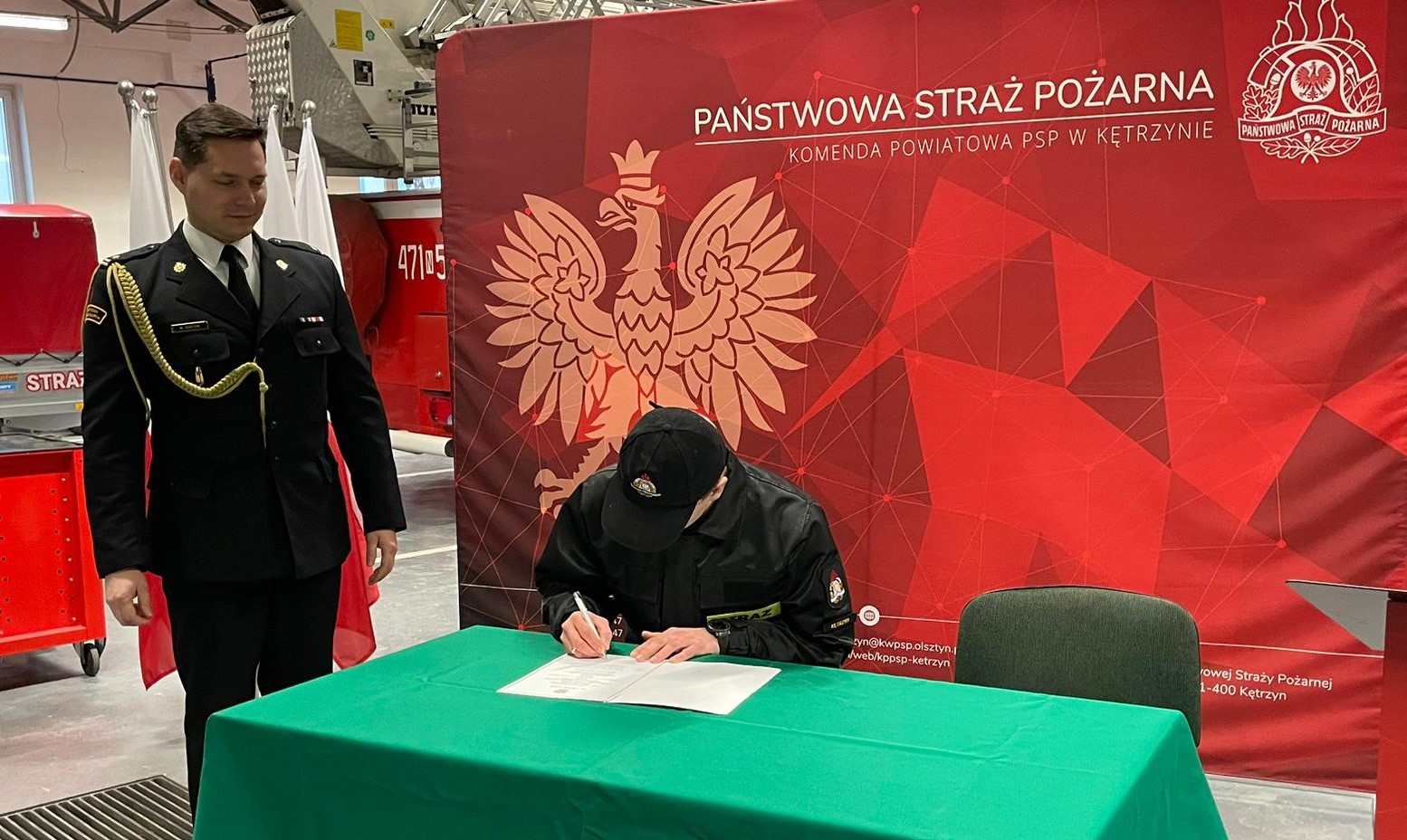 23 stycznia 2025 roku w Komendzie Powiatowej PSP w Kętrzynie odbyła się uroczysta zbiórka, podczas której nowo przyjęty strażak złożył ślubowanie.