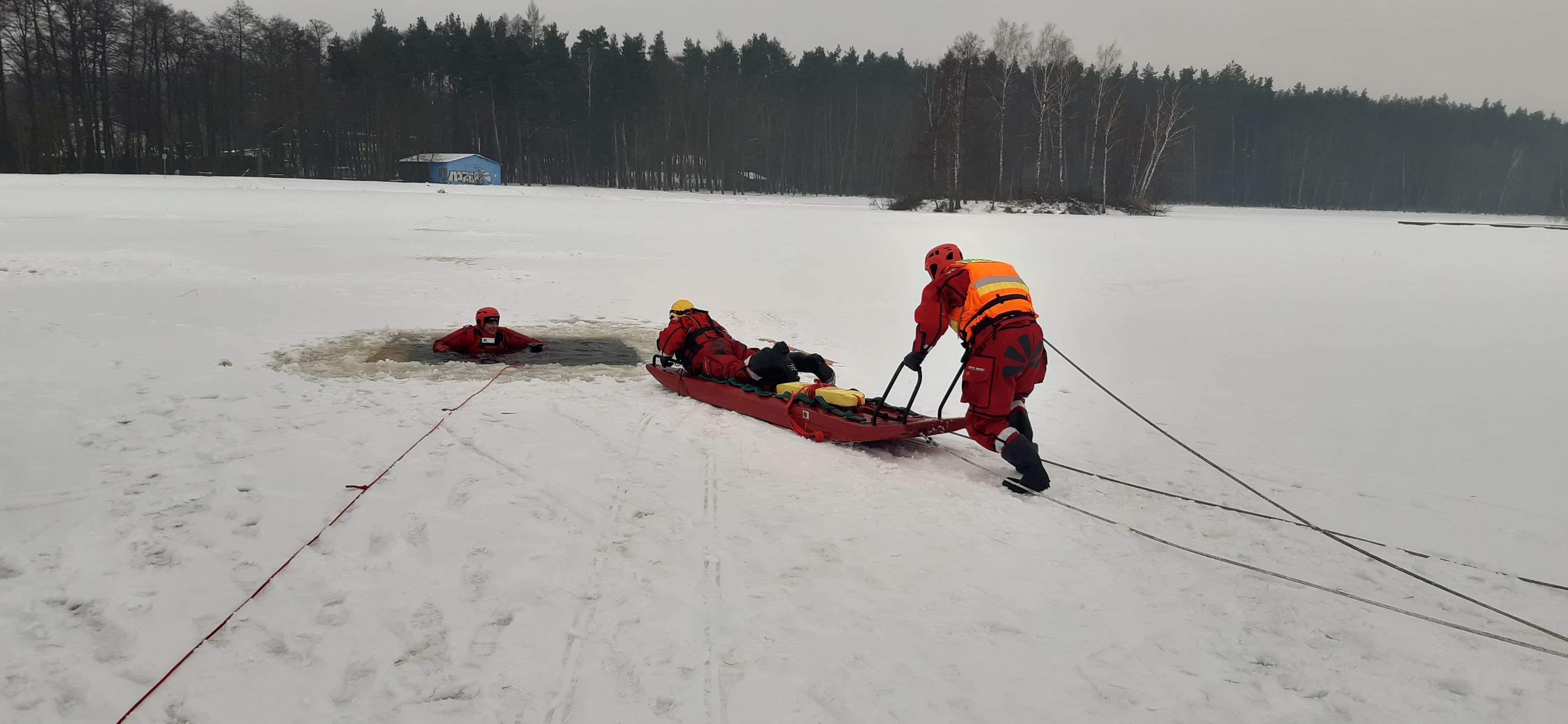 - ewakuacja sań lodowych z ratownikami z miejsca zagrożonego załamaniem się lodu.