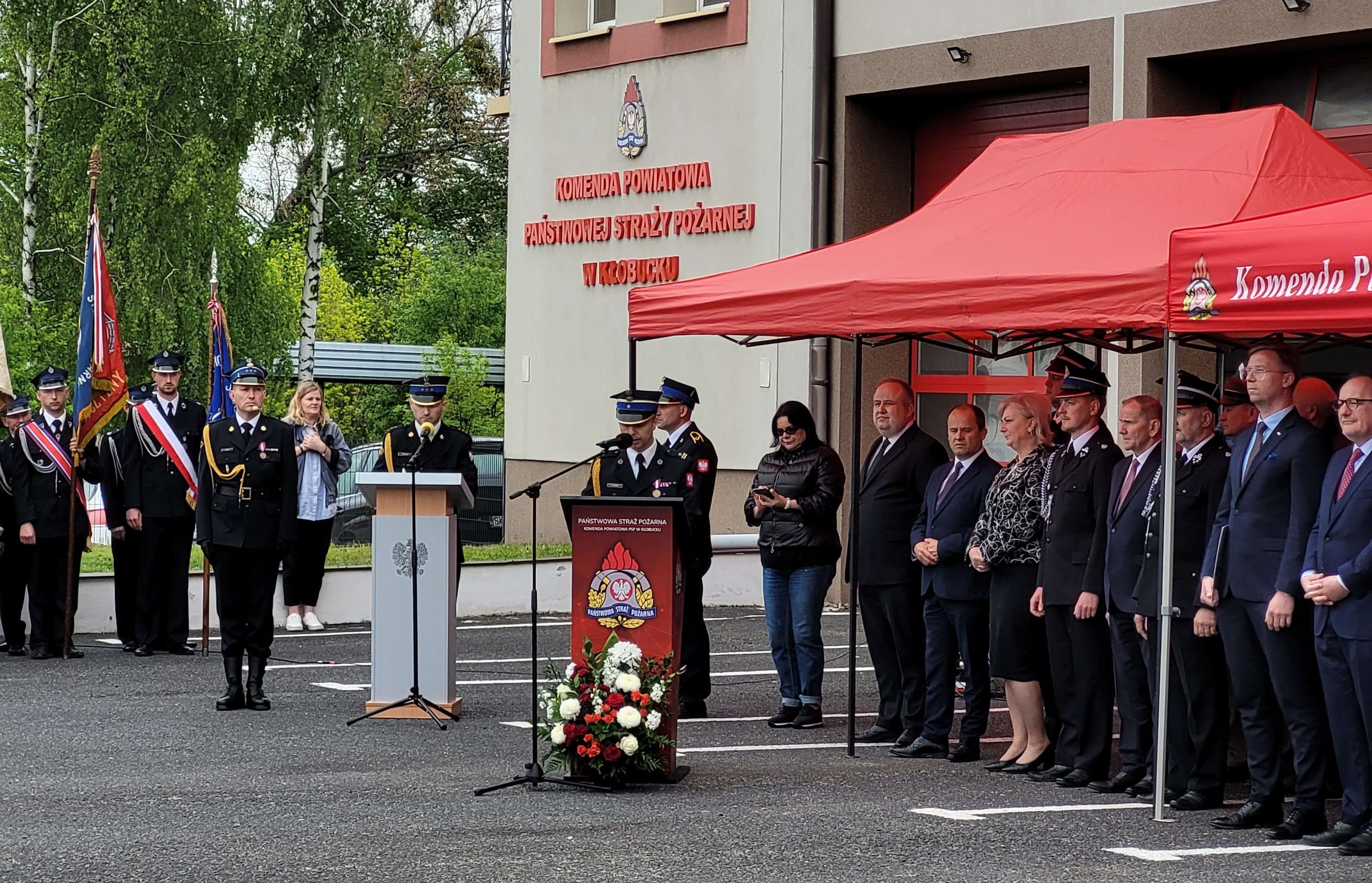 Komendant Powiatowy Państwowej Straży Pożarnej w Kłobucku mł.bryg. Karol Wers przywitał wszystkich strażaków i pracowników kłobuckiej komendy oraz przybyłych gości, wśród których byli między innymi: