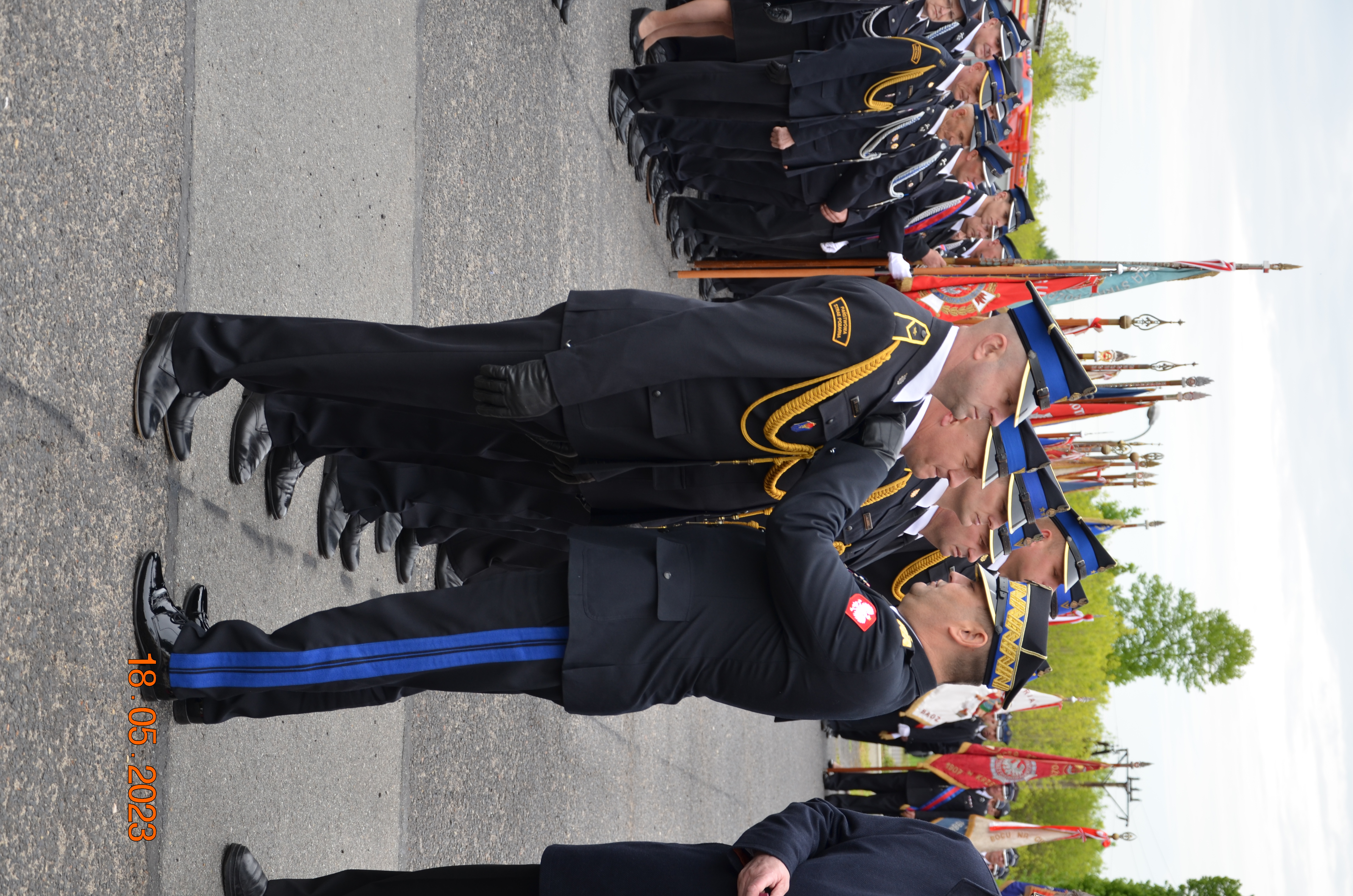 Następnie po dokonaniu przeglądu pododdziałów nastąpiło przywitanie z pododdziałami, a także podniesienie flagi państwowej i odegranie hymnu państwowego.