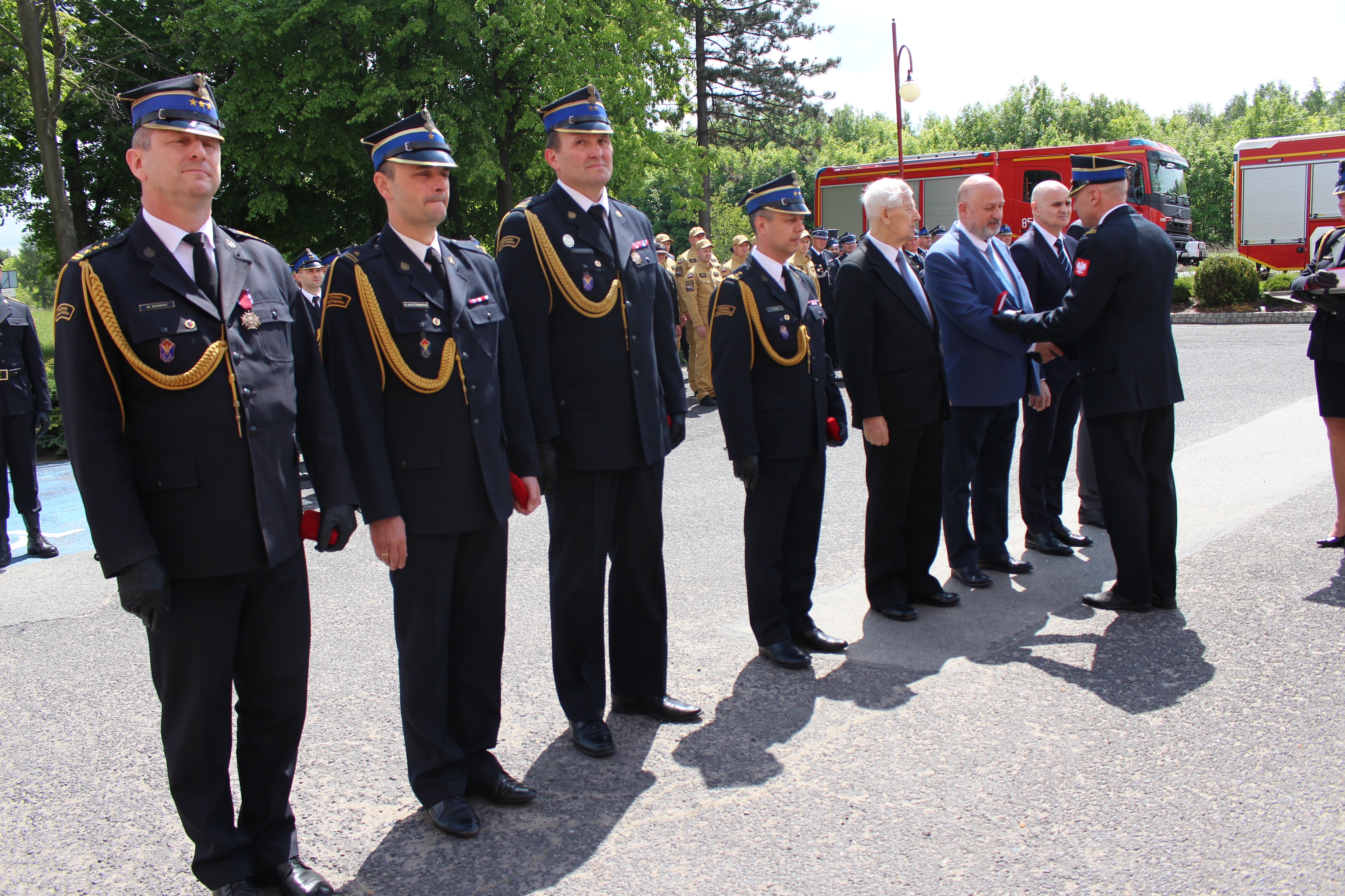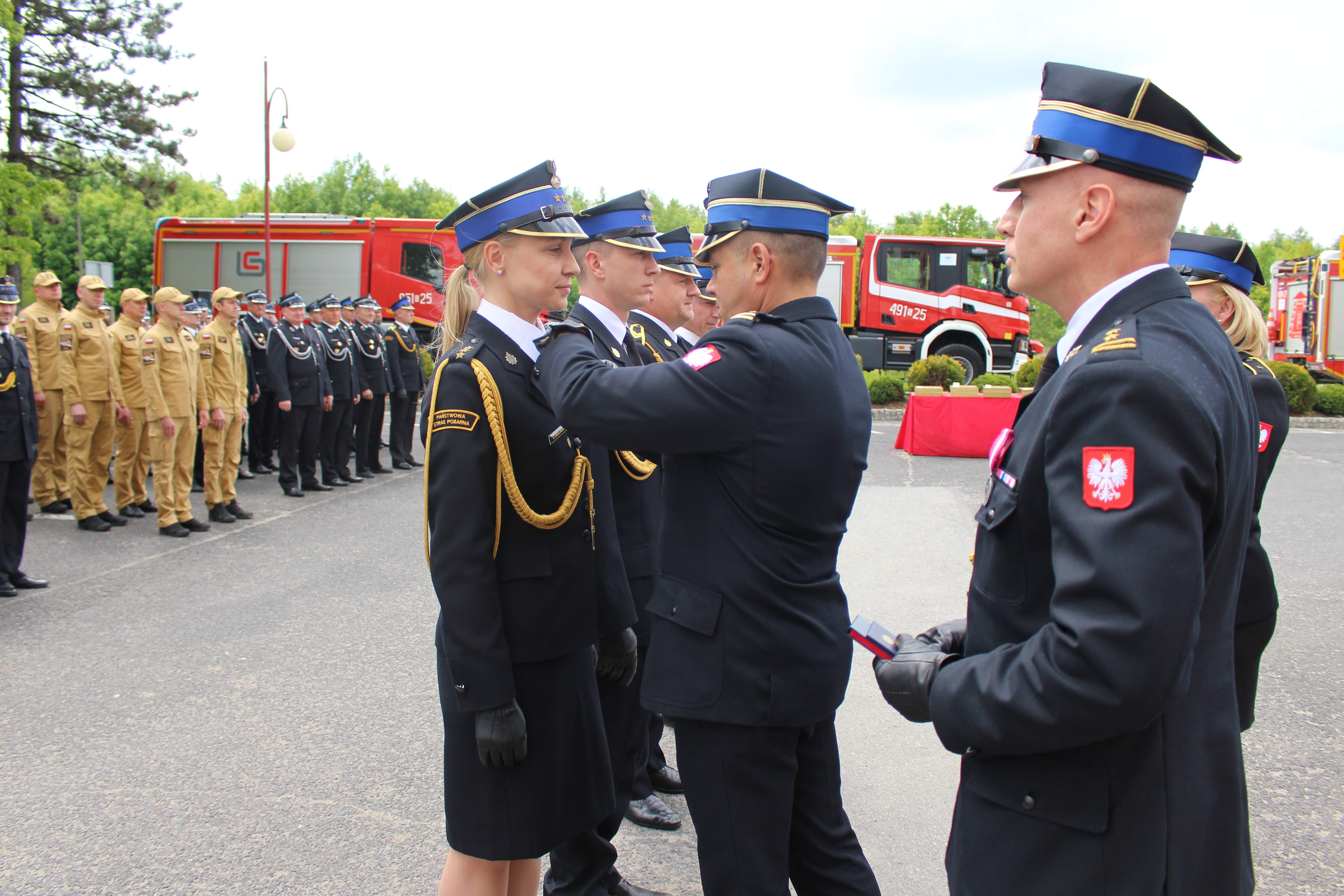 W trakcie uroczystości strażakom Państwowej Straży Pożarnej wręczono medale, odznaczenia oraz nadano wyższe stopnie służbowe: