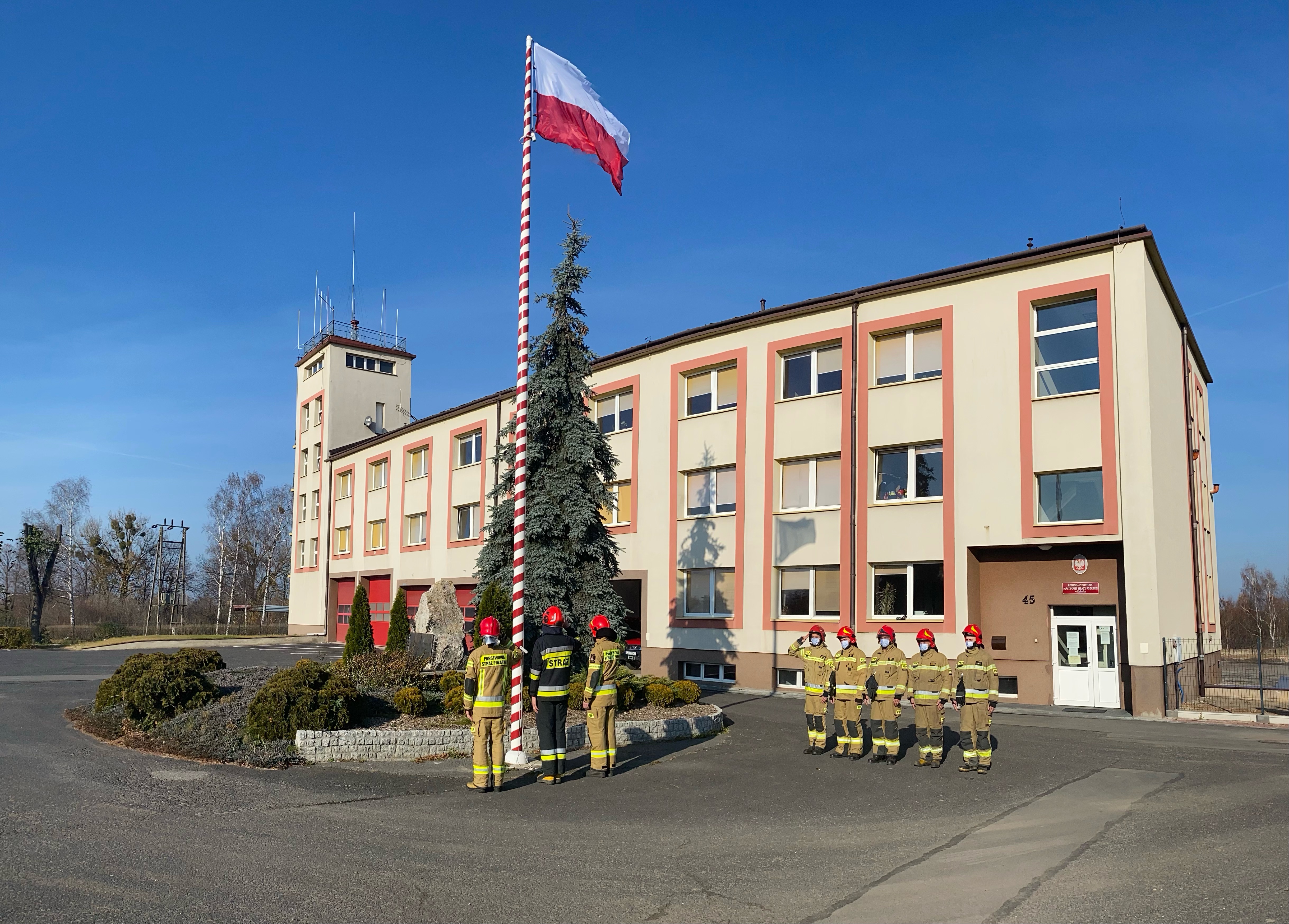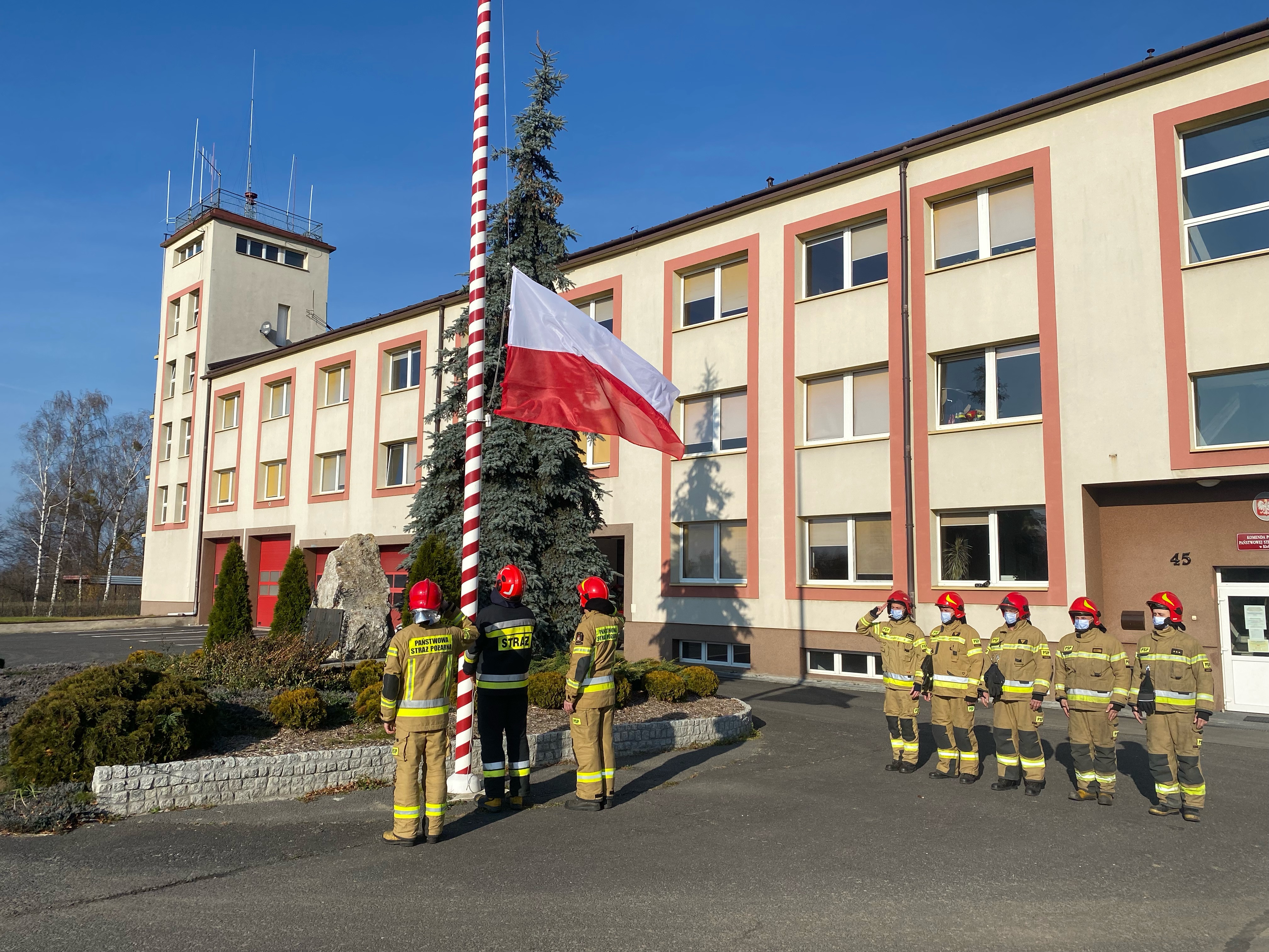 Z okazji Narodowego Święta Niepodległości strażacy z Jednostki Ratowniczo-Gaśniczej PSP w Kłobucku 11 listopada 2021r uroczyście podnieśli flagę państwową oraz odśpiewali hymn państwowy. W ten sposób upamiętnili 103 rocznicę odzyskania przez Polskę niepodległości.