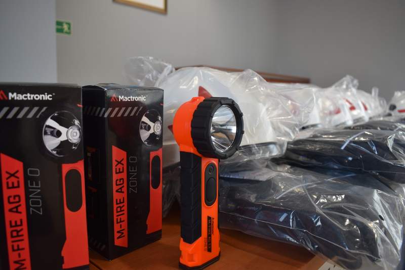 - pozostały sprzęt i wyposażenie: radiotelefon, latarki, zabezpieczenia na kierownicę (stosowane w ratownictwie drogowym), pilarka ratownicza do cięcia materiałów wielowarstwowych, bosaki dielektryczne.