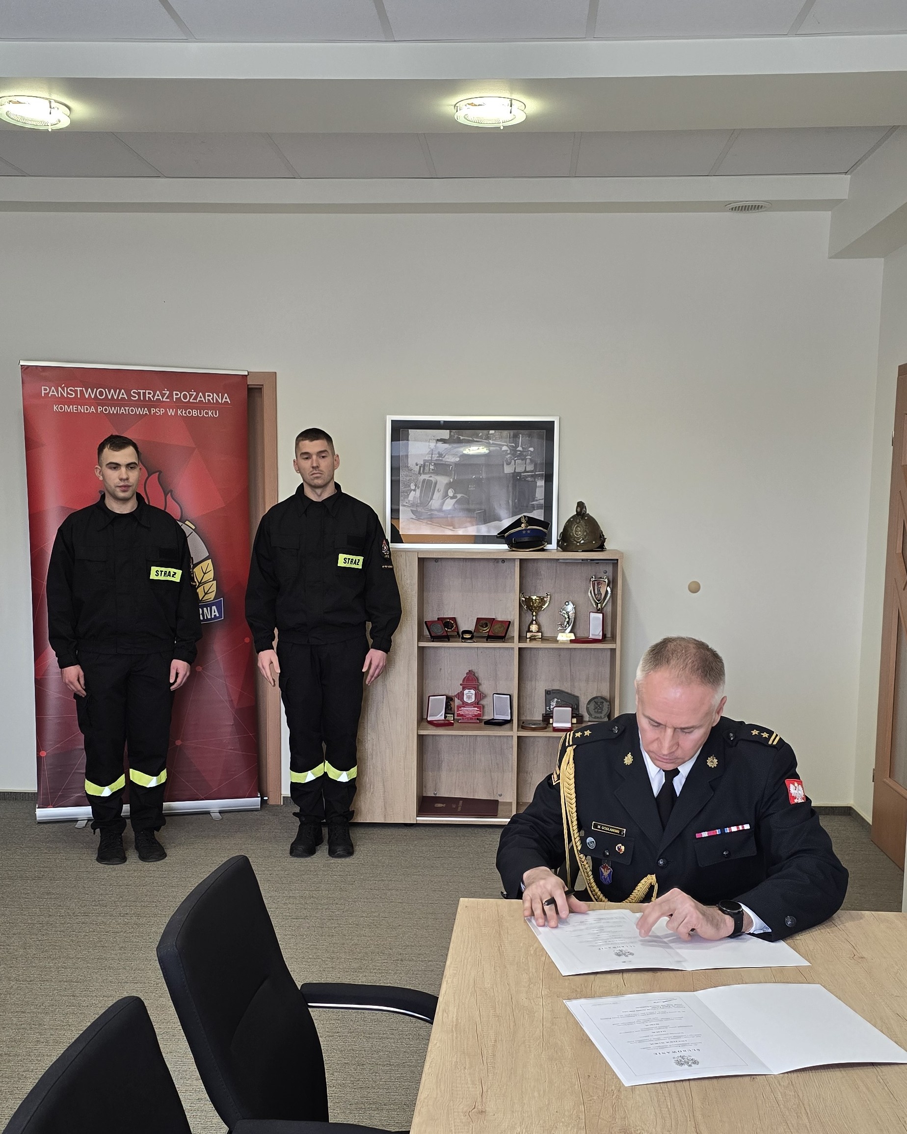 W dniu 08 stycznia 2026 roku odbyło się ślubowanie dwóch nowo przyjętych strażaków do służby w Komendzie Powiatowej Państwowej Straży Pożarnej w Kłobucku - str. Patryka PARUZELA oraz str. Dawida SIEJKI.