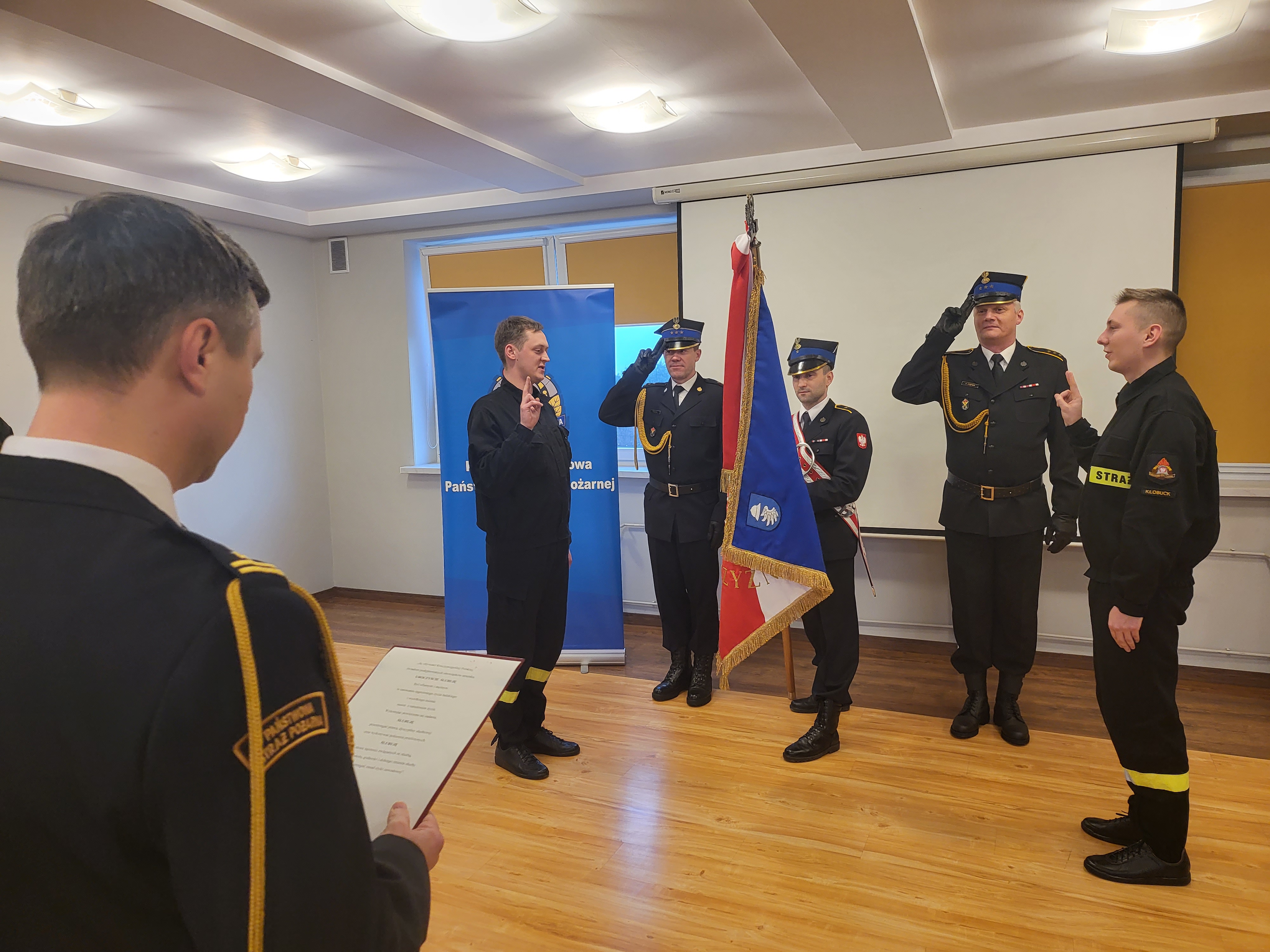 Nowi strażacy złożyli podpisy pod aktami ślubowania, pieczętując ten ważny moment w karierze zawodowej.