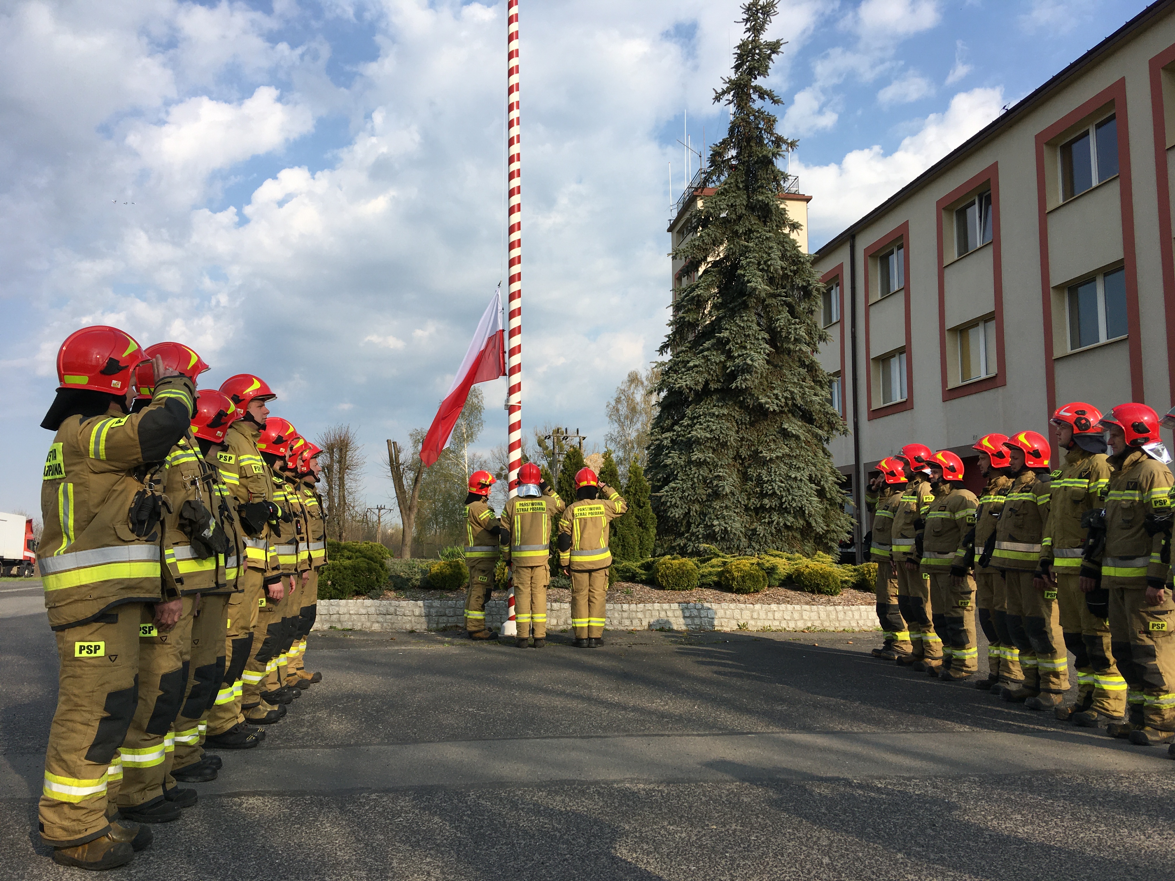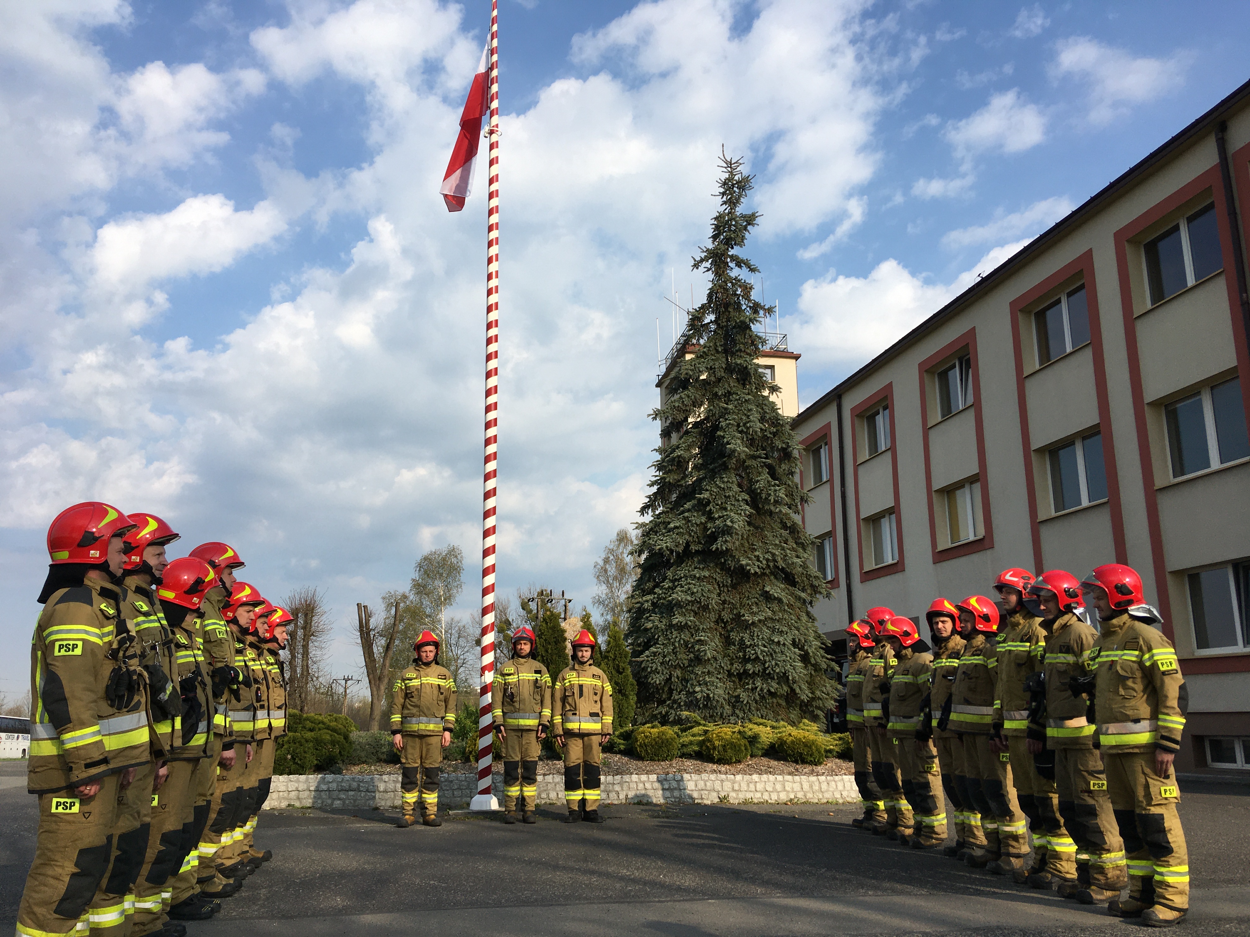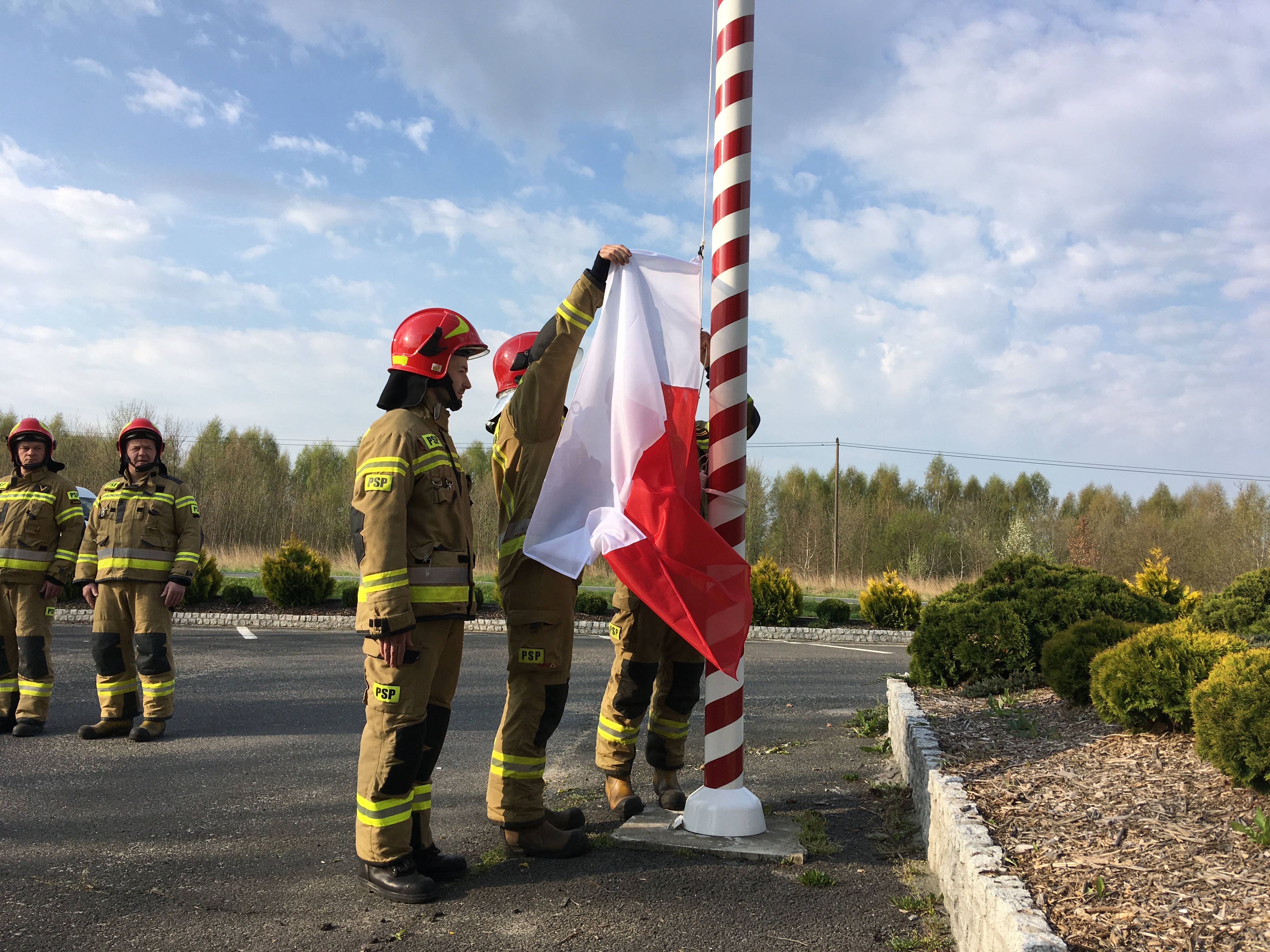 Uroczyste podniesienie flagi państwowej w Komendzie Powiatowej PSP w Kłobucku