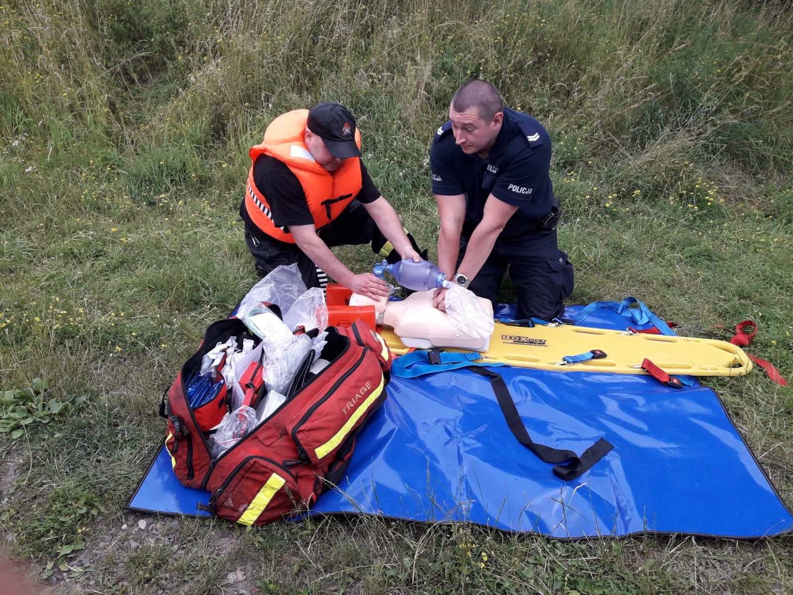 Mając na uwadze fakt, iż do dnia 5 lipca br. na terenie całego kraju odnotowano 103 utonięcia (źródło: https://statystyka.policja.pl/st/wybrane-statystyki/utoniecia) podjęto współpracę z Komendą Powiatową Policji w Kłodzku. W ramach tej współpracy funkcjonariusze Policji uczestniczyli w części praktycznej ćwiczeń, w trakcie których wspólnie doskonalono techniki ratowania osób topiących się za pomocą rzutek ratowniczych i koła ratunkowego bezpośrednio z brzegu jak i przy użyciu łodzi z silnikiem motorowym. Nieodzownym elementem ćwiczeń było również przypomnienie wiadomości z zakresu kwalifikowanej pierwszej pomocy przy tonięciu i wychłodzeniu organizmu. W ćwiczeniach uczestniczył również przedstawiciel Wodnego Ochotniczego Pogotowia Ratunkowego.