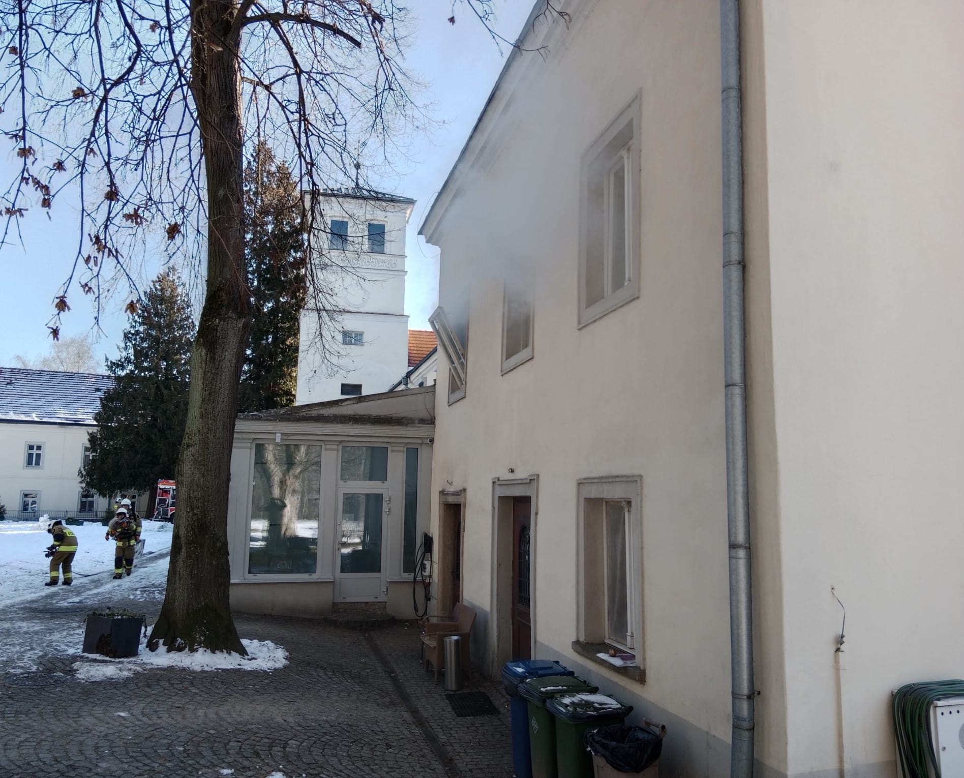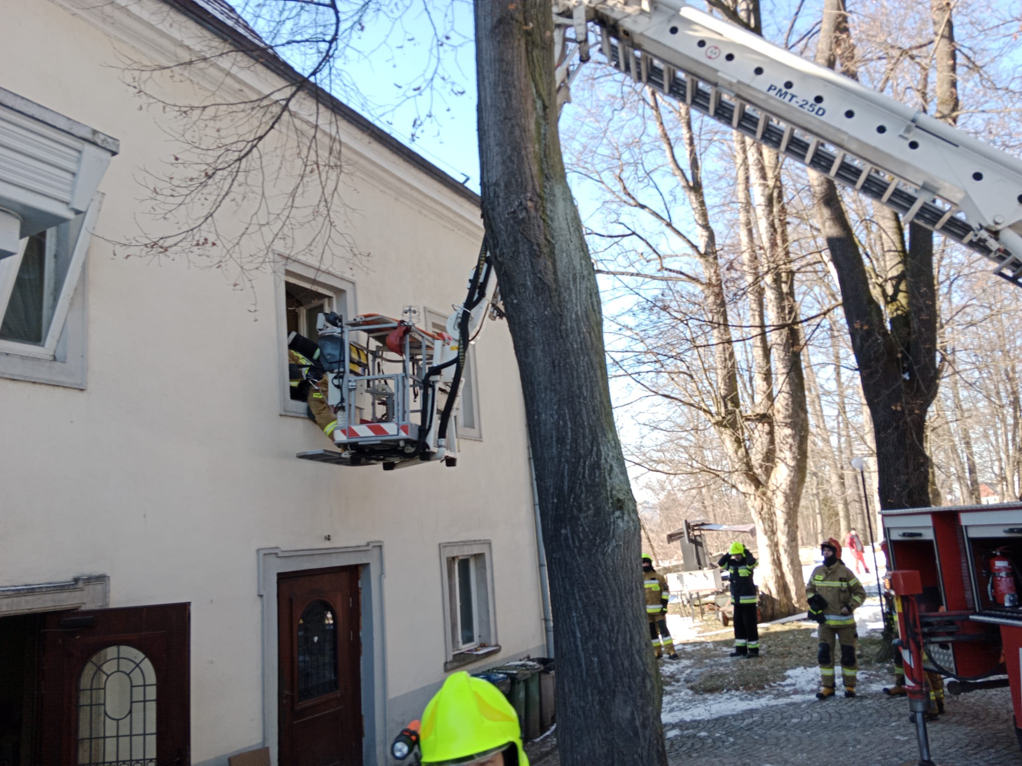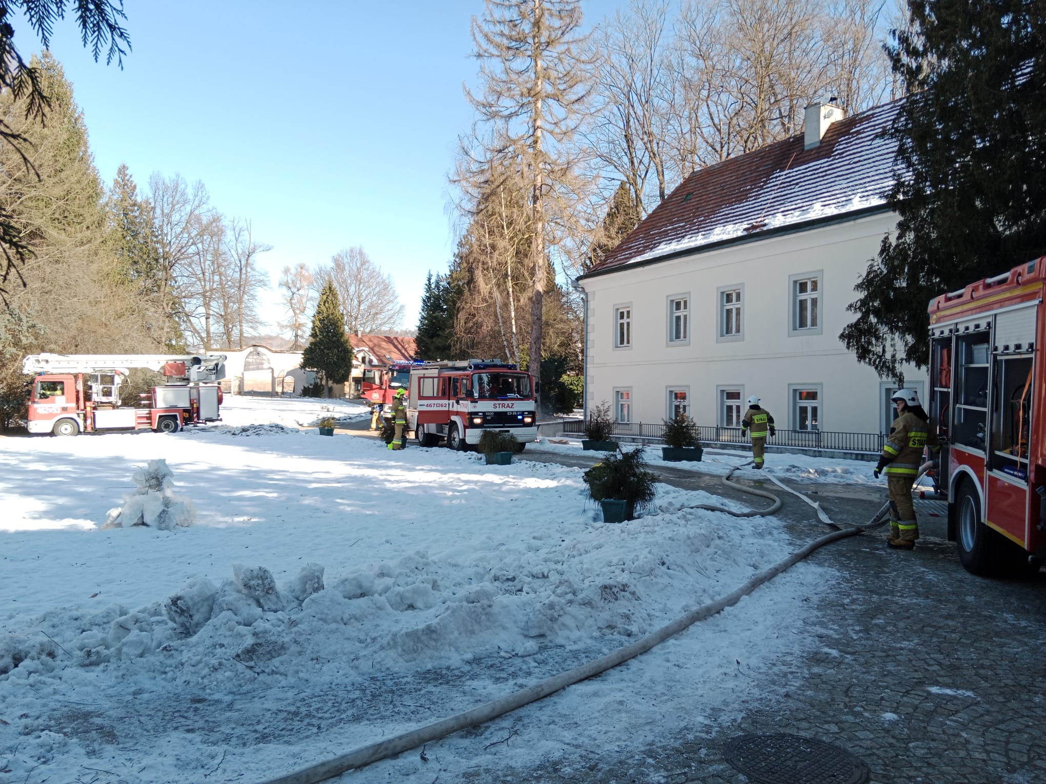 W dniu 9 lutego 2023 roku na terenie ,,Zamku na Skale’’ w Trzebieszowicach odbyły się w ramach doskonalenia zawodowego ćwiczenia, których scenariusz zakładał pożar w jednym z pokoi hotelowych. W wyniku pożaru poszkodowana została jedna osoba, która nie zdołała ewakuować się z budynku o własnych siłach.