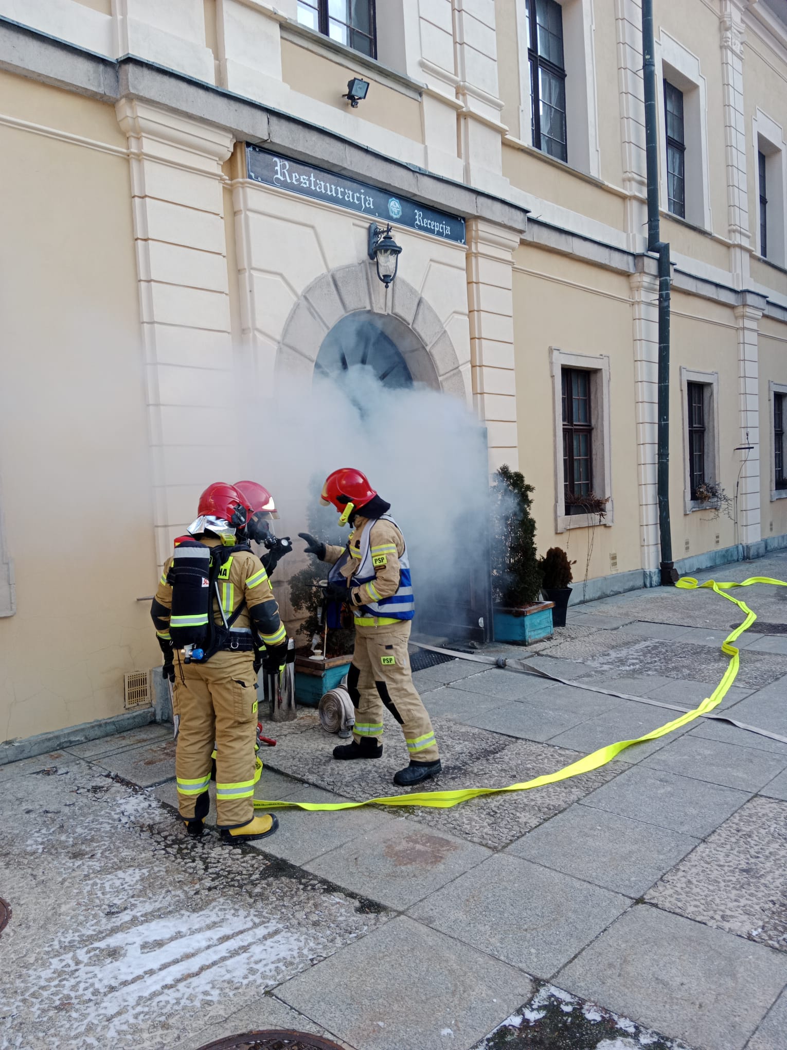 W dniu 11.01.2022 roku na terenie zamku w Międzylesiu odbyły się w ramach doskonalenia zawodowego ćwiczenia, których scenariusz zakładał pożar pokoju w części hotelowej obiektu z rozprzestrzenieniem się ognia na dach budynku. W wyniku pożaru poszkodowane zostały dwie osoby, które znajdowały się w objętym pożarem pokoju. W ćwiczeniach udział wzięła zmiana służbowa nr 1 z Jednostki Ratowniczo-Gaśniczej Państwowej Straży Pożarnej w Bystrzycy Kłodzkiej oraz jednostki Ochotniczych Straży Pożarnych z Międzylesia oraz Goworowa. Po zakończeniu ćwiczeń dokonano rozpoznania operacyjnego obiektu. Była to dla strażaków idealna okazja m. in. do zapoznania się z zainstalowanym w obiekcie systemem sygnalizacji pożaru, występującymi w nim potencjalnymi zagrożeniami dla ratowników w postaci mediów, a także sprawdzenia punktów czerpania wody czy rozmieszczenia pomieszczeń w obiekcie.