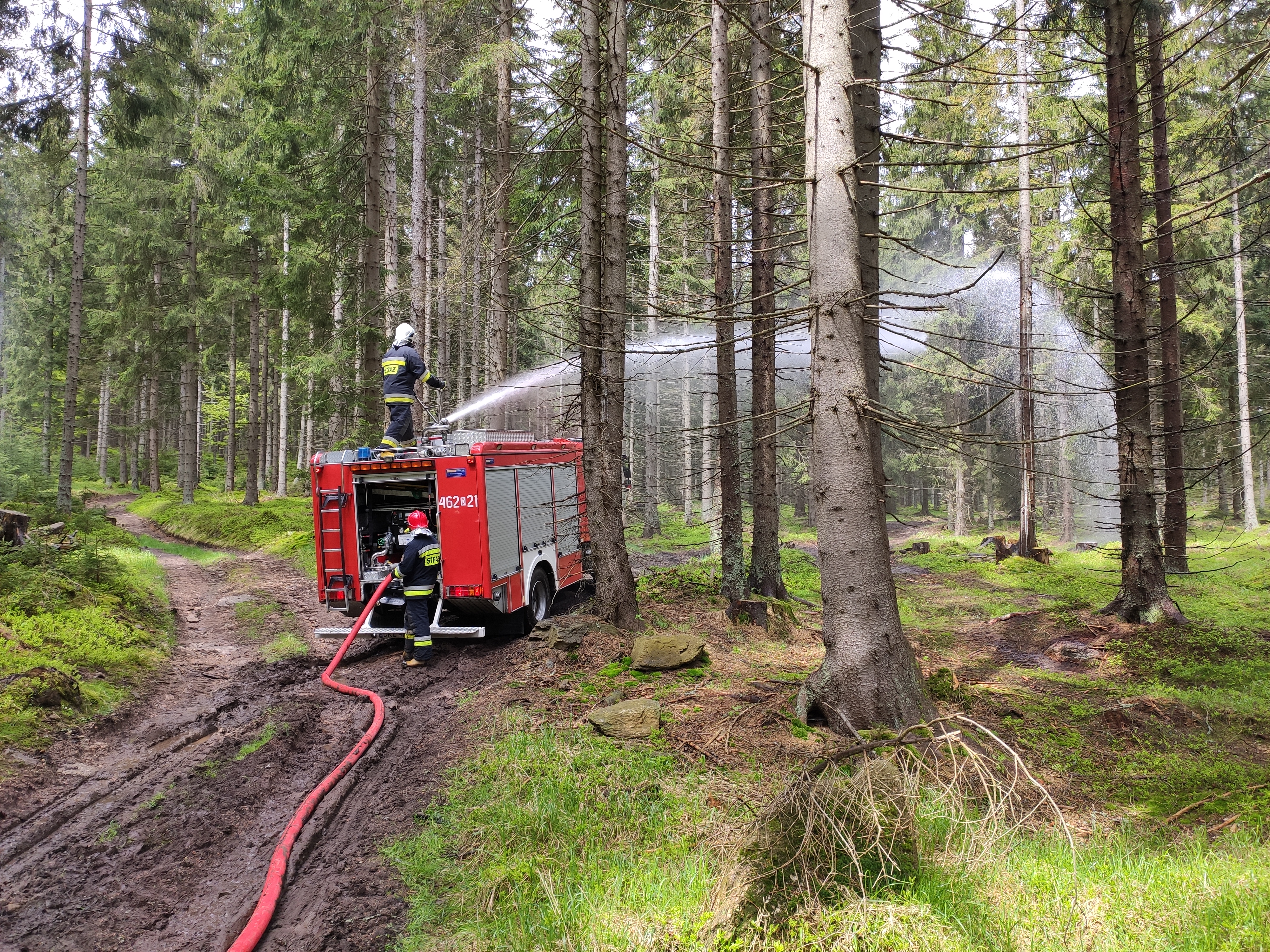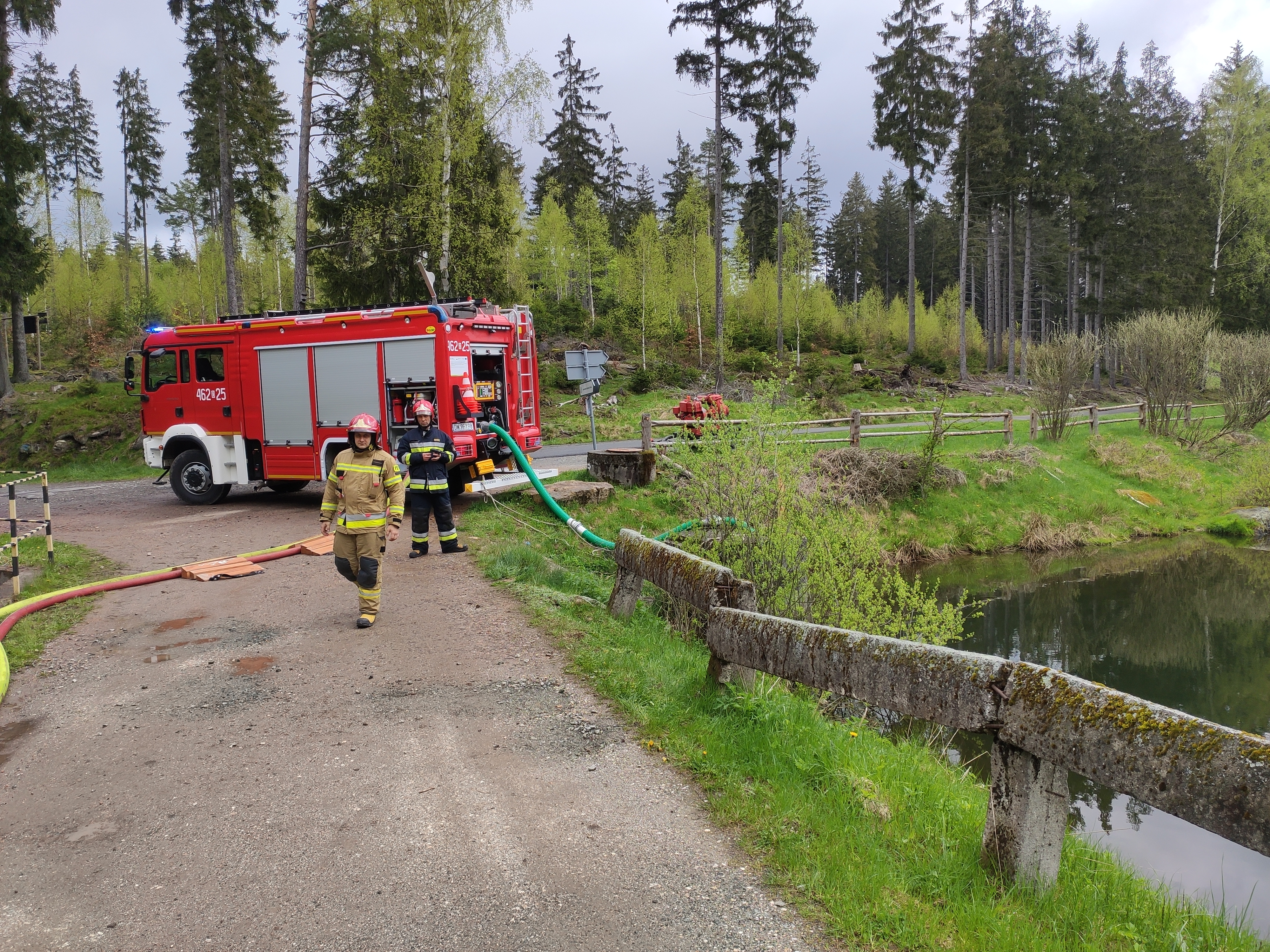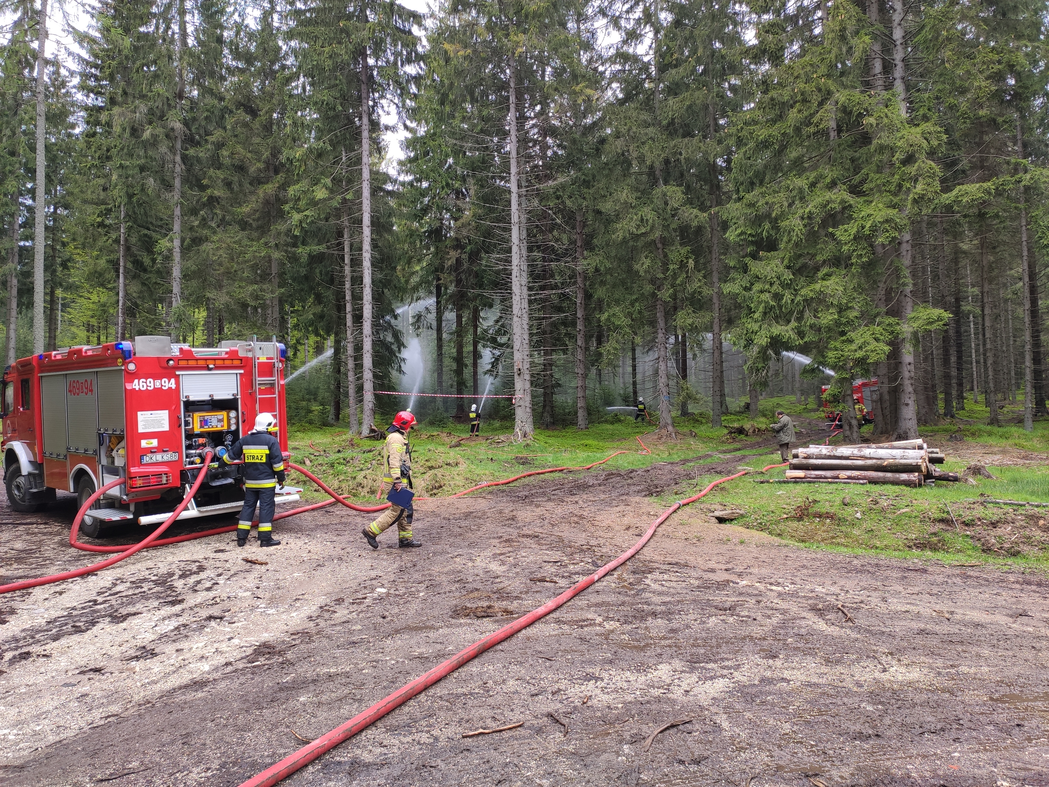 W dniu 19 maja br. w ramach doskonalenia zawodowego na terenie Nadleśnictwa Bystrzyca Kłodzka odbyły się ćwiczenia, które zakładały gaszenie pożaru lasu w leśnictwie Spalona Dolna. Ćwiczenia odbyły się na świeżym powietrzu z zachowaniem reżimu sanitarnego, w których udział wzięła zmiana służbowa nr 1 z Jednostki Ratowniczo-Gaśniczej Państwowej Straży Pożarnej w Bystrzycy Kłodzkiej, jednostki Ochotniczych Straży Pożarnych z Wilkanowa, Międzylesia i Idzikowa oraz przedstawiciele Nadleśnictwa Bystrzyca Kłodzka. Podczas ćwiczeń sprawdzono praktyczne umiejętności strażaków z zakresu przepompowywania i przetłaczania wody na dalekie odległości.