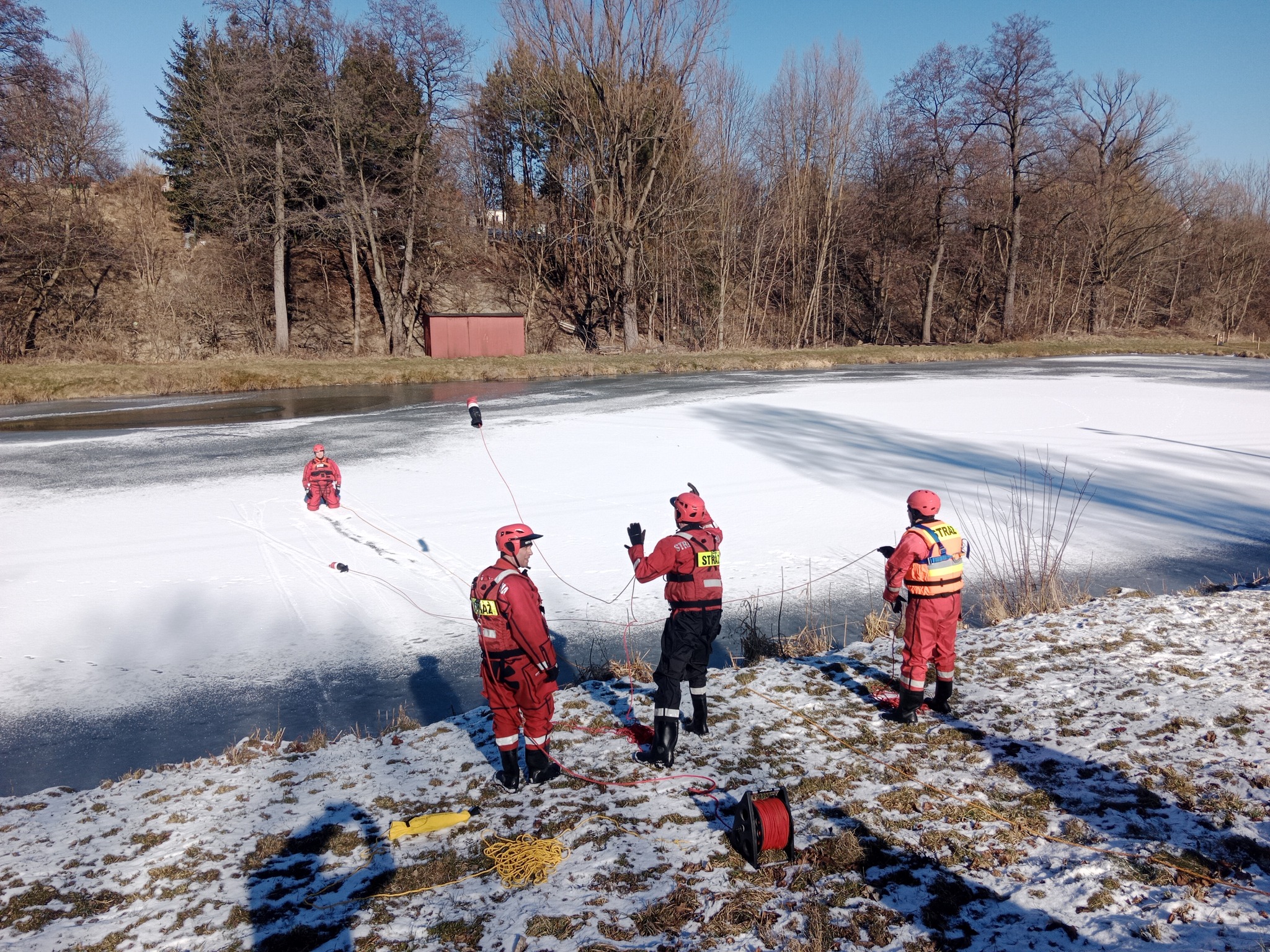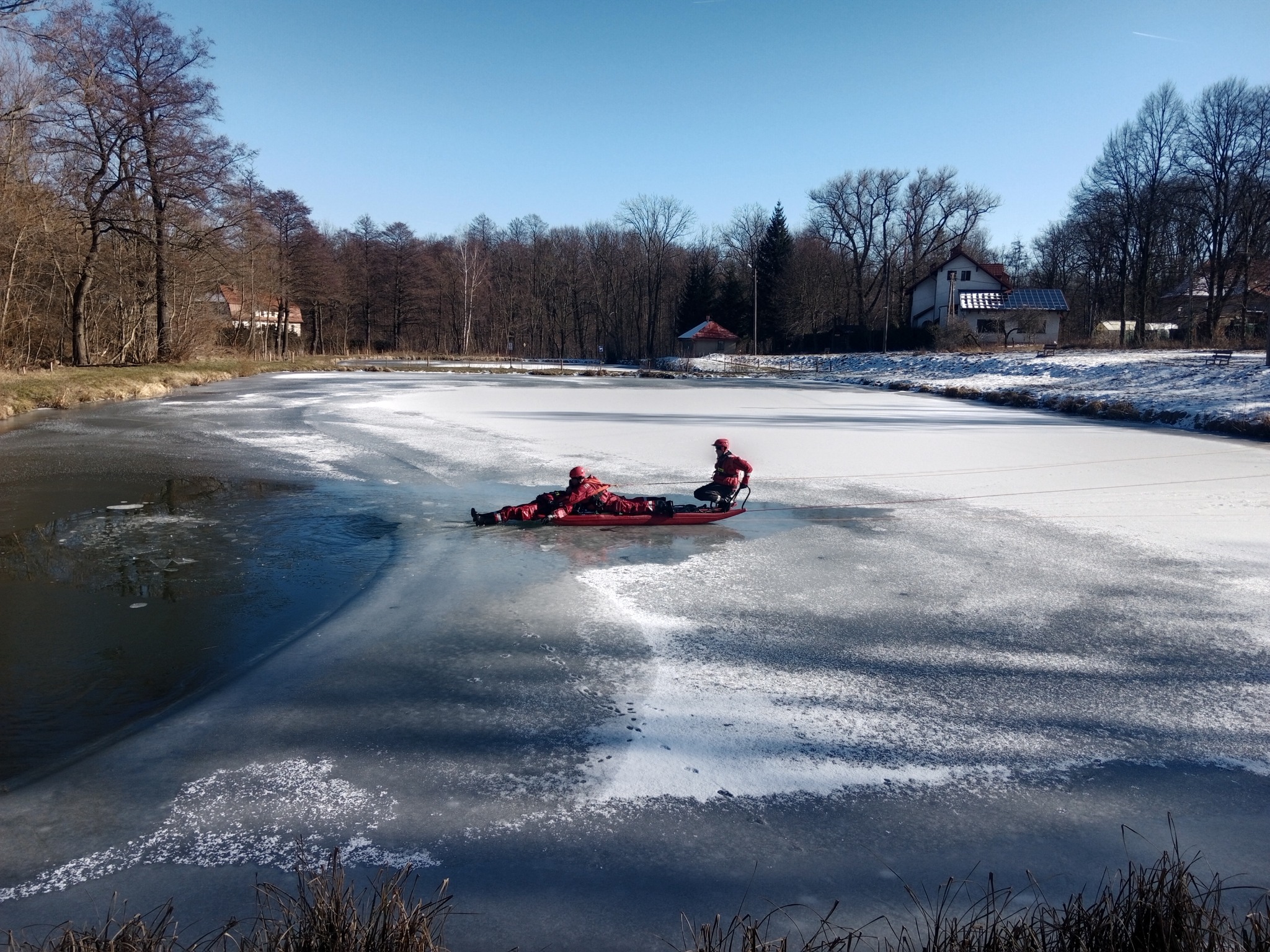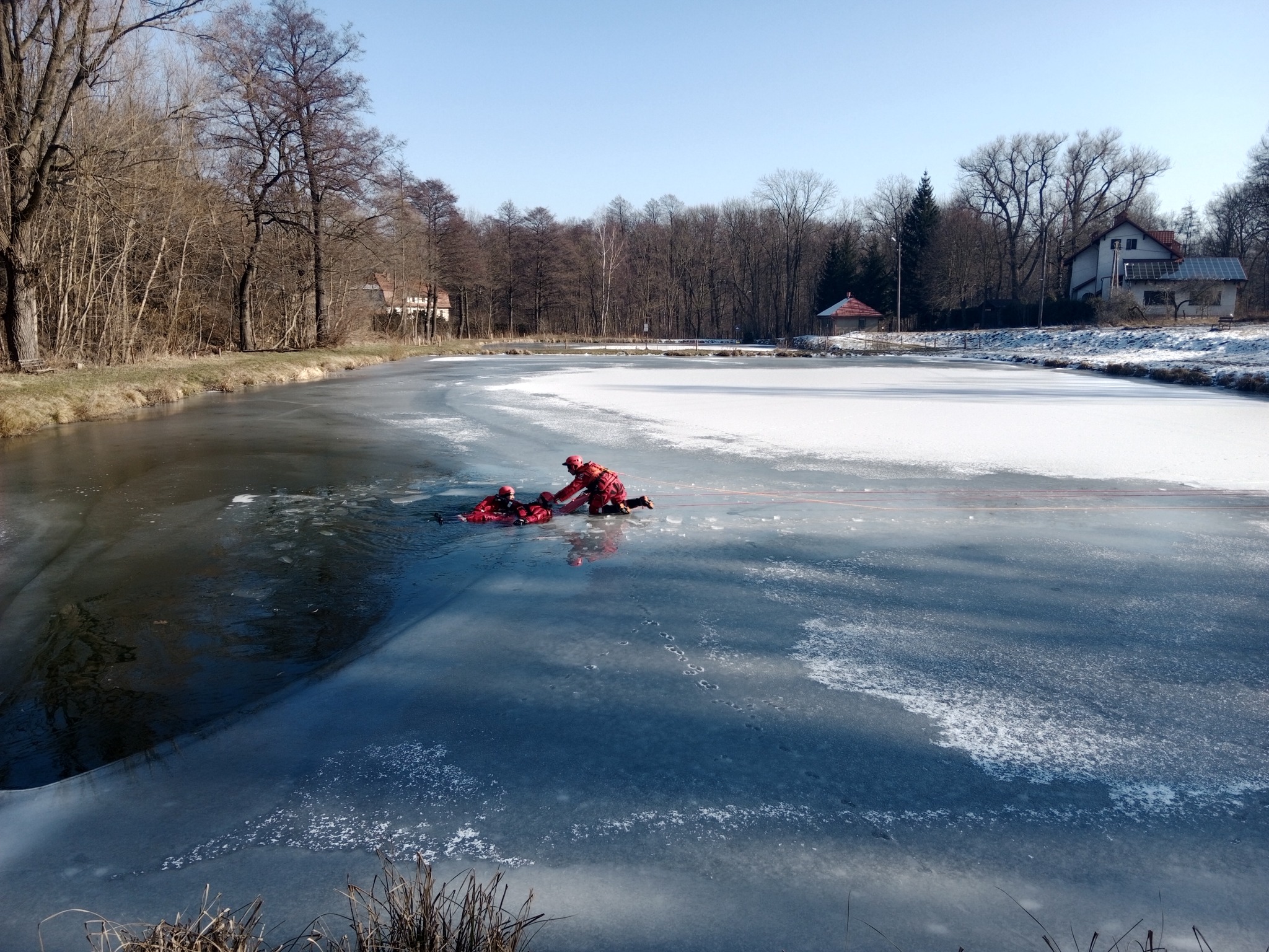 Ćwiczenia z zakresu ratownictwa lodowego Jednostki Ratowniczo-Gaśniczej PSP w Bystrzycy Kłodzkiej