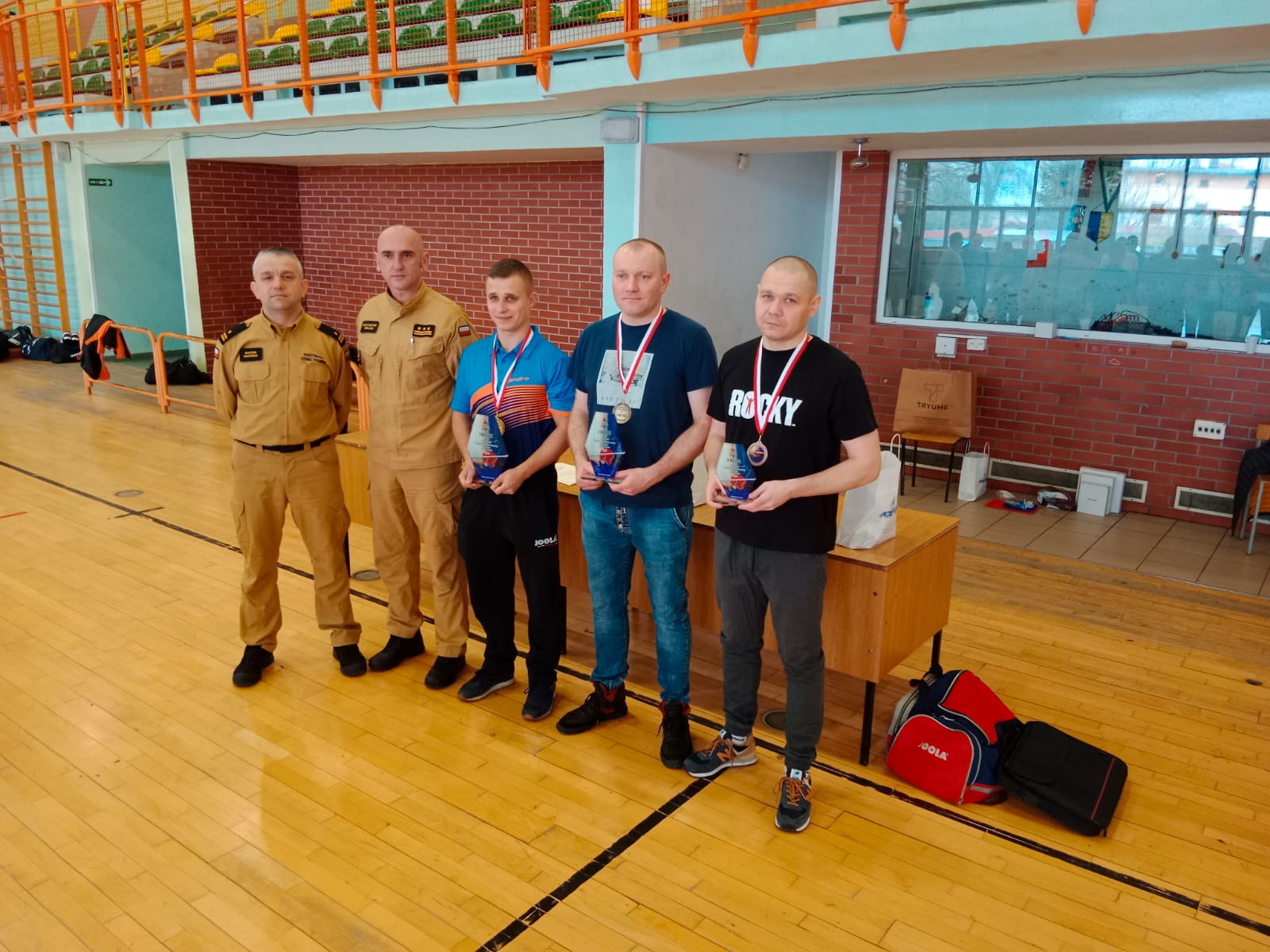 Podium Mistrzostw Województwa Dolnośląskiego Strażaków PSP w Tenisie Stołowym: