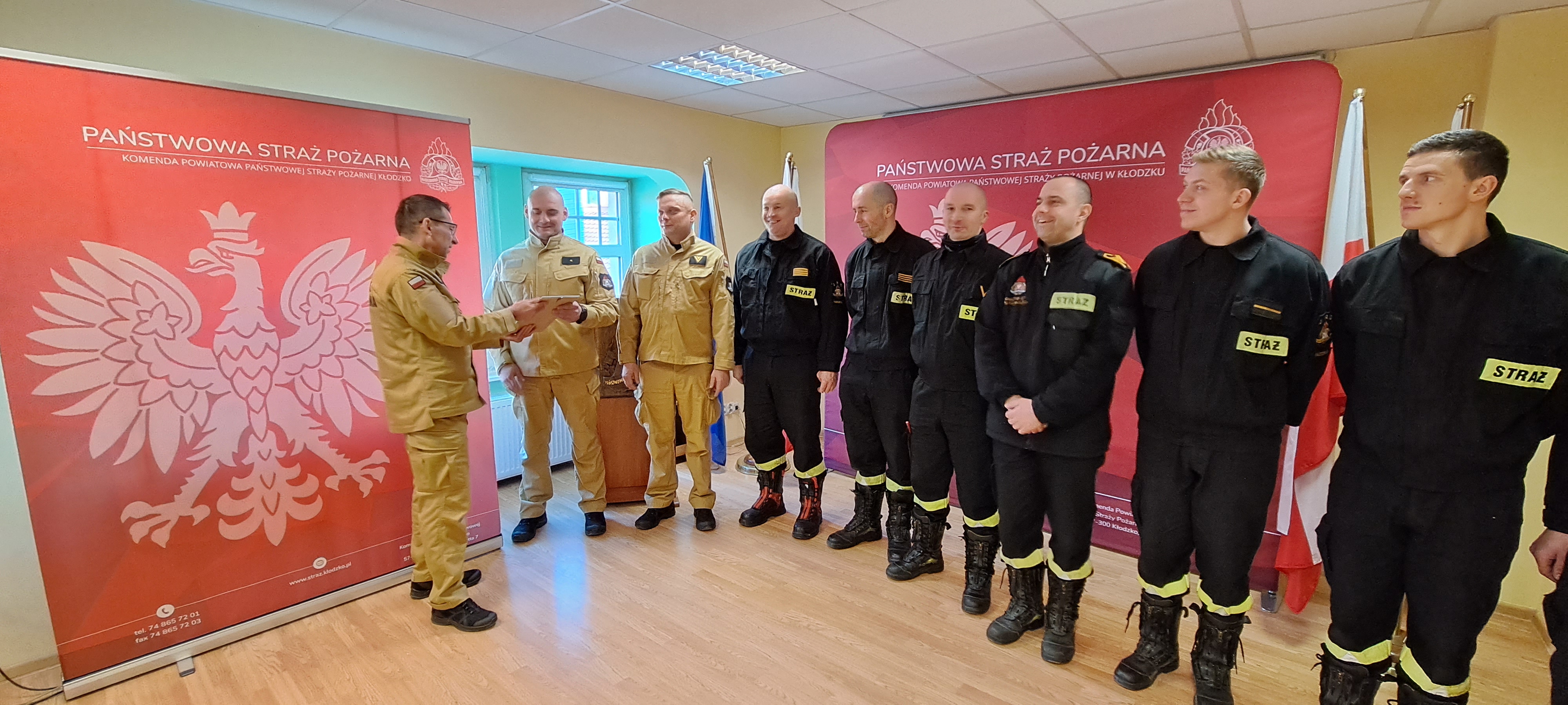 Listy pochwalne i podziękowania dla funkcjonariuszy Jednostki Ratowniczo-Gaśniczej PSP w Kłodzku