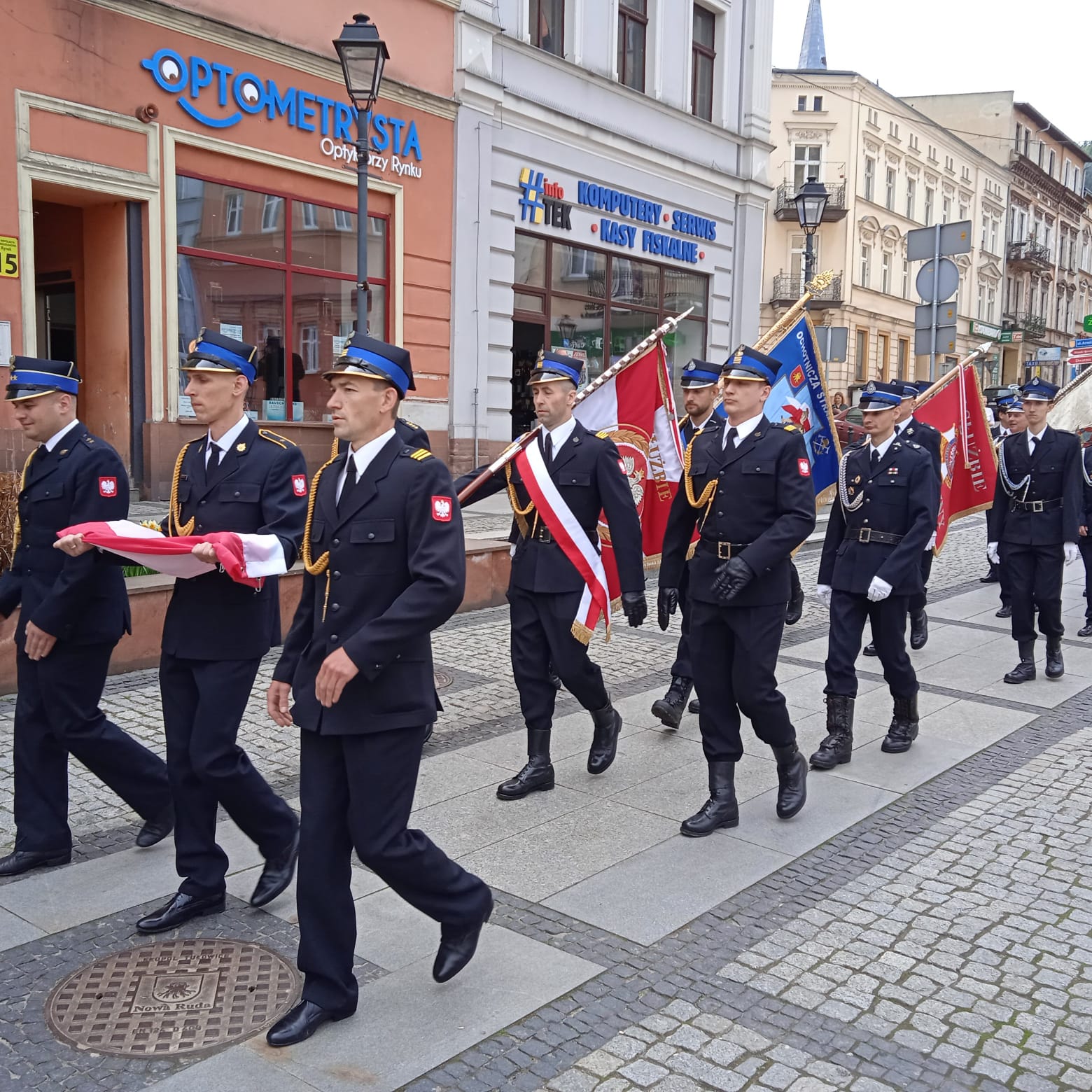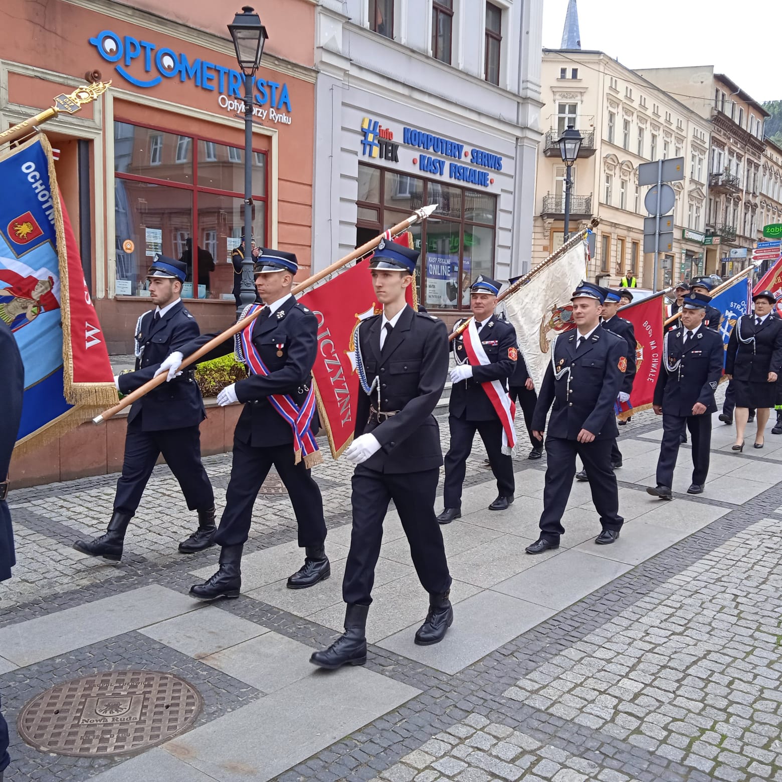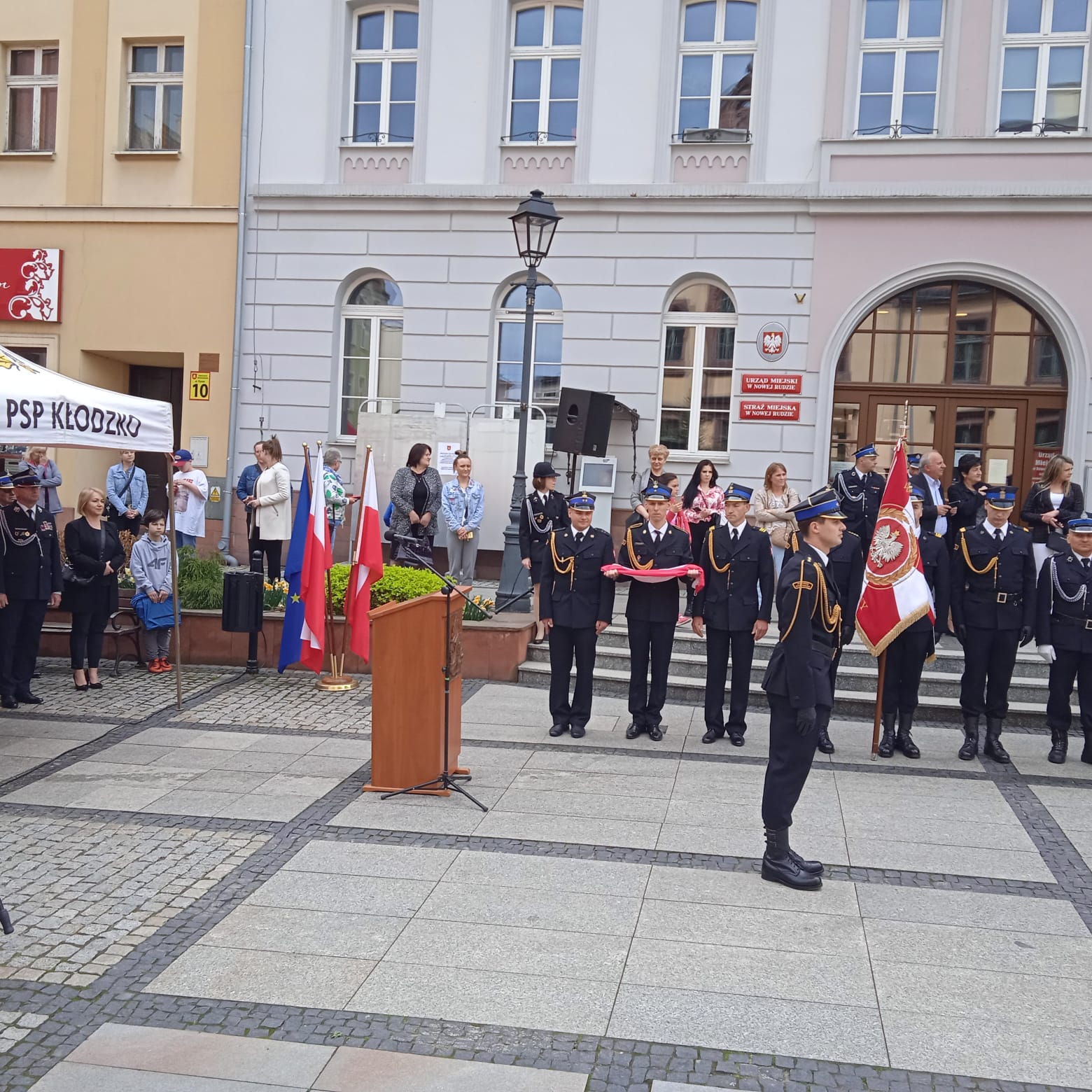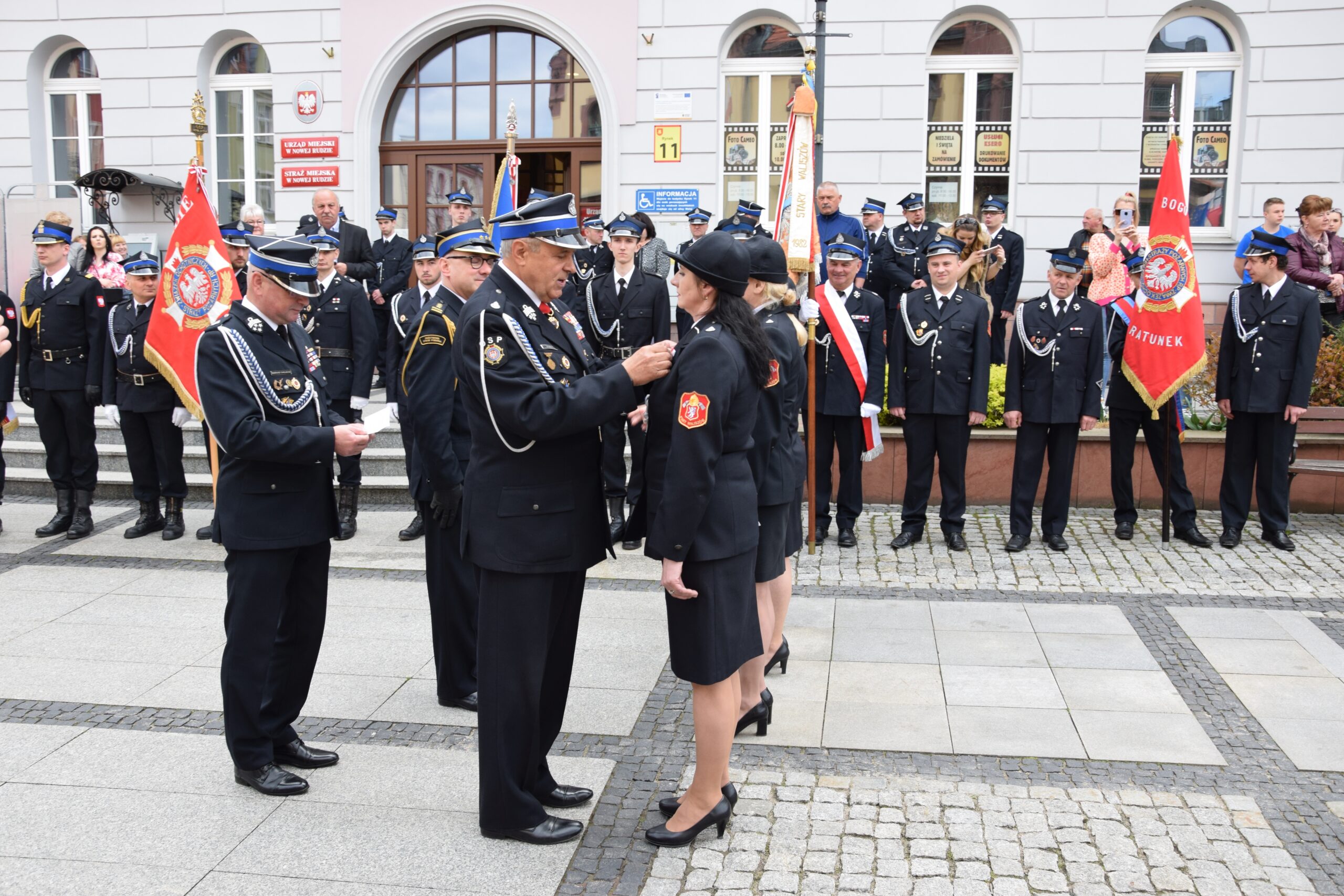 W dniu 7 maja br. odbyły się w Nowej Rudzie uroczyste Powiatowe Obchody Dnia Strażaka. Zgodnie z tradycją zostały zainaugurowane mszą święta w kościele pod wezwaniem św. Mikołaja odprawioną w intencji strażaków. Po mszy świętej uczestnicy przemaszerowali na Rynek Miejski, gdzie zorganizowana została główna część obchodów. Po złożeniu przez Dowódcę Uroczystości meldunku o rozpoczęciu uroczystego apelu z okazji Powiatowych Obchodów Dnia Strażaka na terenie powiatu kłodzkiego dla Zastępcy Dolnośląskiego Komendanta Wojewódzkiego Państwowej Straży Pożarnej we Wrocławiu st. bryg. Piotra Grzyba i odegraniu hymnu państwowego pod przewodnictwem Noworudzkiej Orkiestry Górniczej zabrali głos organizatorzy bryg. Rafał Chorzewski - Komendant Powiatowy PSP w Kłodzku oraz dh Dariusz Chojecki - Prezes Zarządu Oddziału Powiatowego Związku Ochotniczych Straży Pożarnych RP.