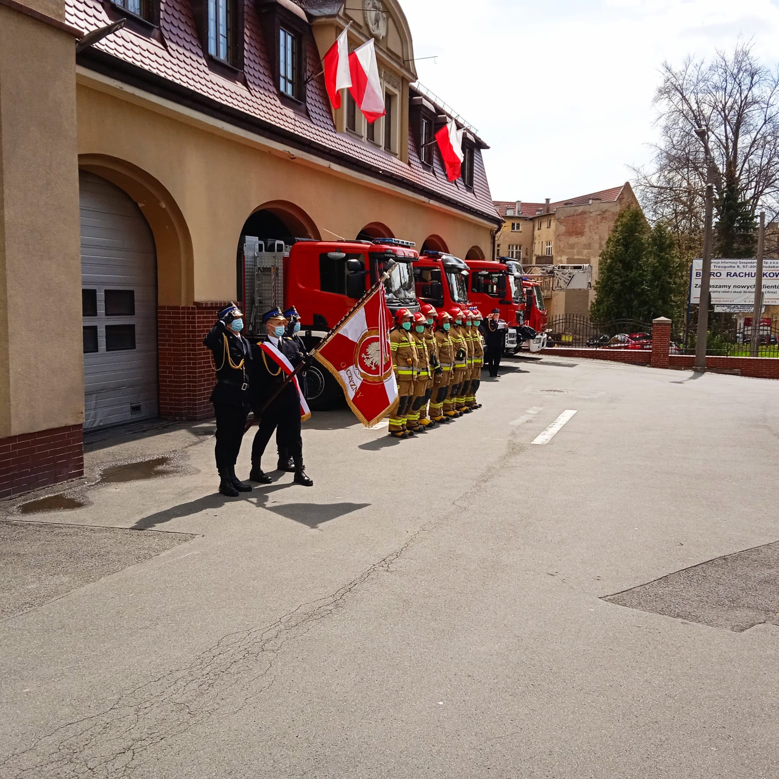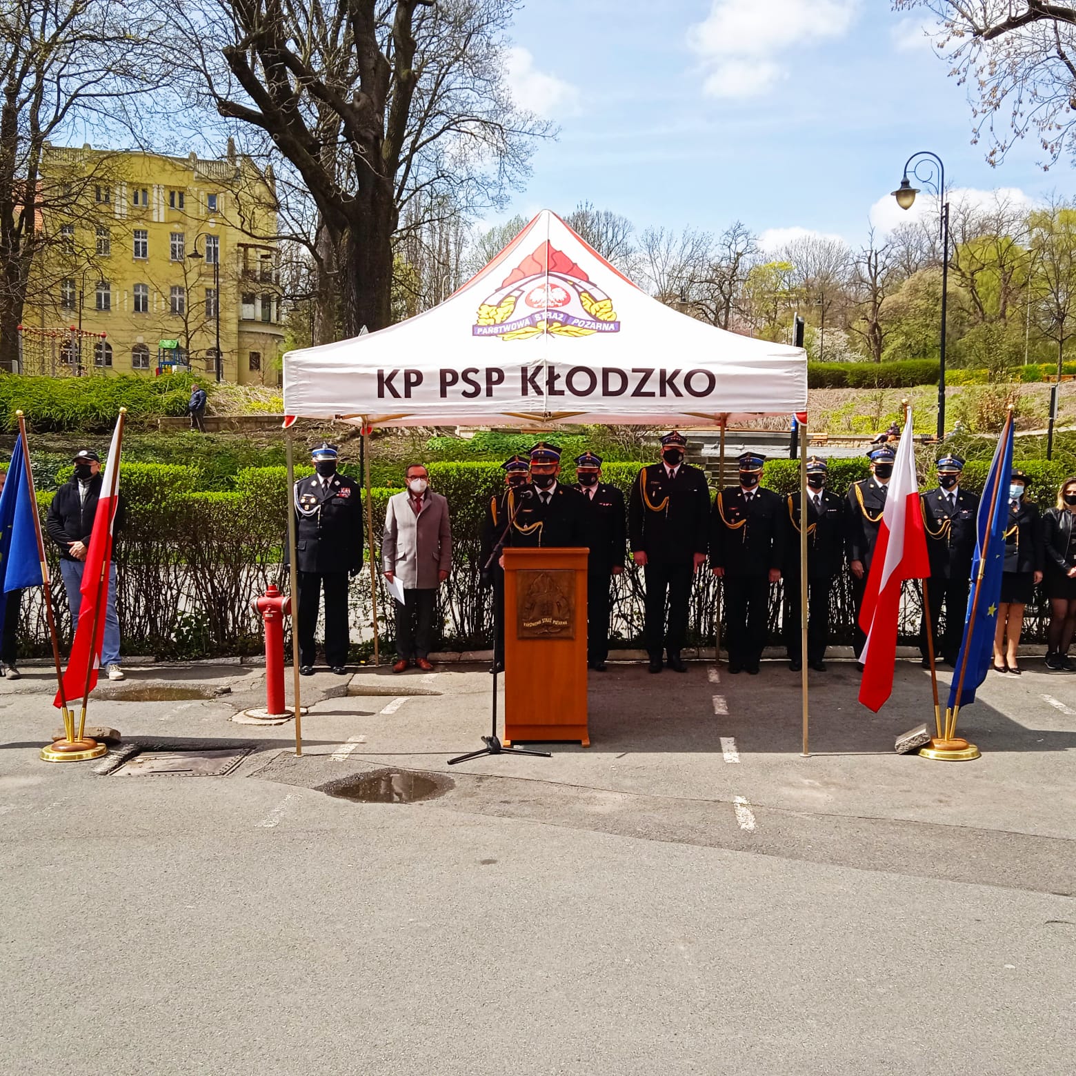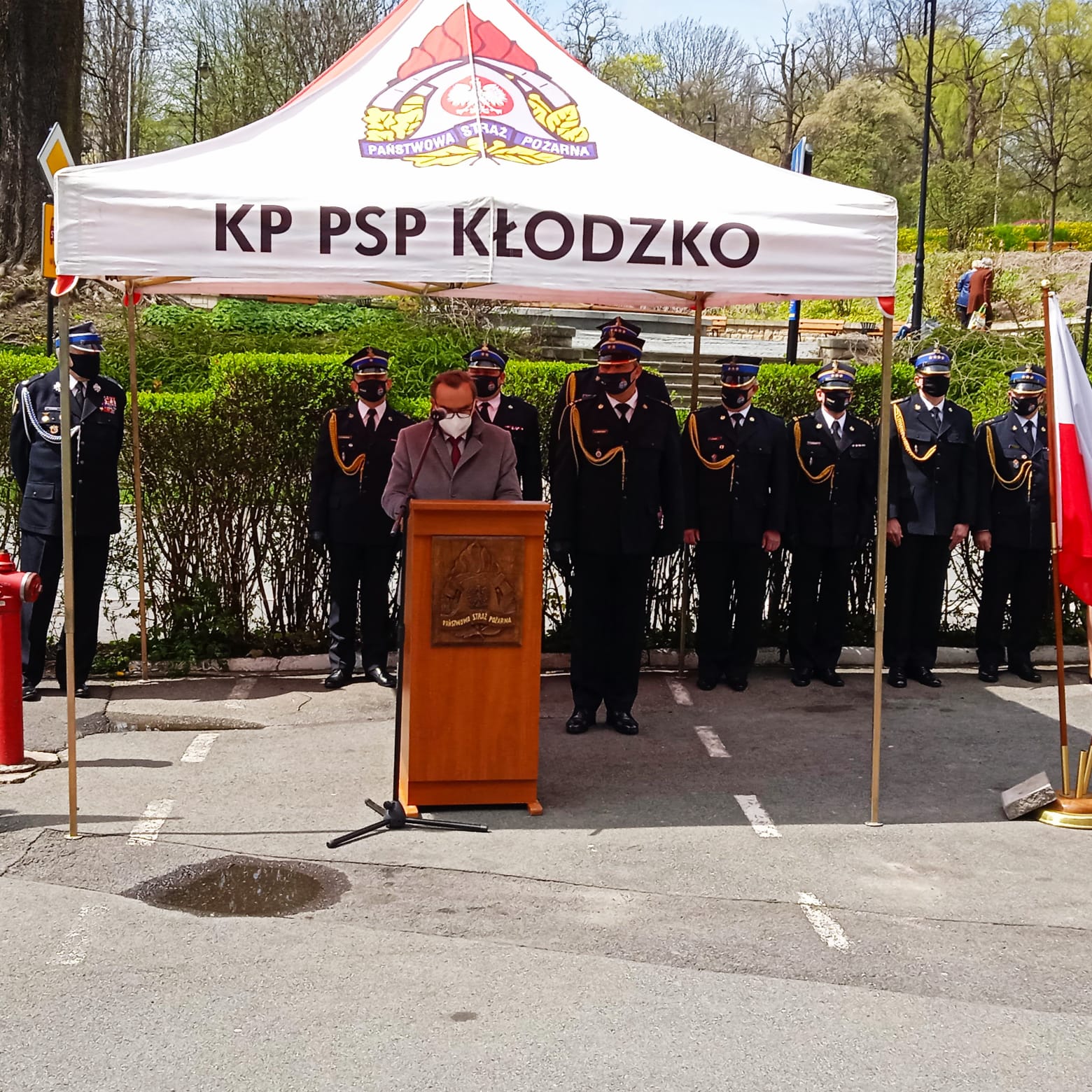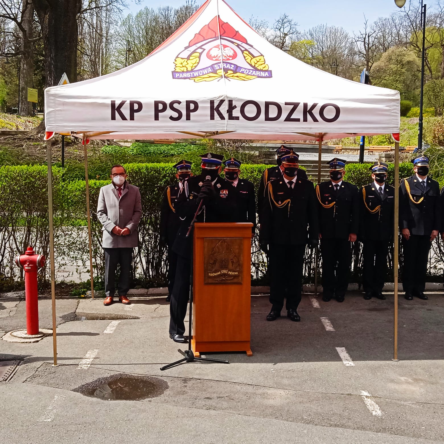 W dniu 4 maja br. o godz. 1200 na placu przed Komendą Powiatową Państwowej Straży Pożarnej w Kłodzku odbył się uroczysty apel z okazji powiatowych obchodów Dnia Strażaka. Z uwagi na trwający w dalszym ciągu na terenie Rzeczypospolitej Polskiej stan epidemii wywoływany zakażeniami wirusem SARS–CoV-2 apel miał charakter uroczystości wewnętrznej dla funkcjonariuszy i pracowników cywilnych Komendy Powiatowej Państwowej Straży Pożarnej w Kłodzku. Wychodząc naprzeciw obowiązującym obostrzeniom oraz zasadom reżimu sanitarnego w uroczystości uczestniczyli jedynie Starosta Powiatu Kłodzkiego reprezentowany przez Pana Ryszarda Niebieszczańskiego – Członka Zarządu Powiatu Kłodzkiego i honorowego Prezesa Zarządu Powiatu Związku Ochotniczych Straży Pożarnych RP oraz druh Ryszard Drozd - Prezes Oddziału Wojewódzkiego i Powiatowego Związku Ochotniczych Straży Pożarnych RP. Gospodarzem uroczystości był Komendant Powiatowy Państwowej Straży Pożarnej w Kłodzku bryg. Rafał Chorzewski, natomiast Dowódcą uroczystości kpt. Krystian Kot. W trakcie apelu ze strony Komendanta oraz zaproszonych gości w stronę strażaków Państwowej jak i Ochotniczej Straży Pożarnej, ale również pracowników cywilnych Komendy kierowane były liczne podziękowania i słowa uznania za trud i poświęcenie niesione w realizacji zadań postawionych przed formacją, a w szczególności przy akcjach ratowniczo-gaśniczych. Głównym punktem uroczystości było odczytanie wyciągów z rozkazów personalnych Ministra Spraw Wewnętrznych i Administracji, Komendanta Głównego, Wojewódzkiego oraz Powiatowego Państwowej Straży Pożarnej mianujących na wyższe stopnie służbowe funkcjonariuszy w korpusach oficerskich, aspiranckich, podoficerskich i szeregowych. Serdecznie gratulujemy awansowanym!