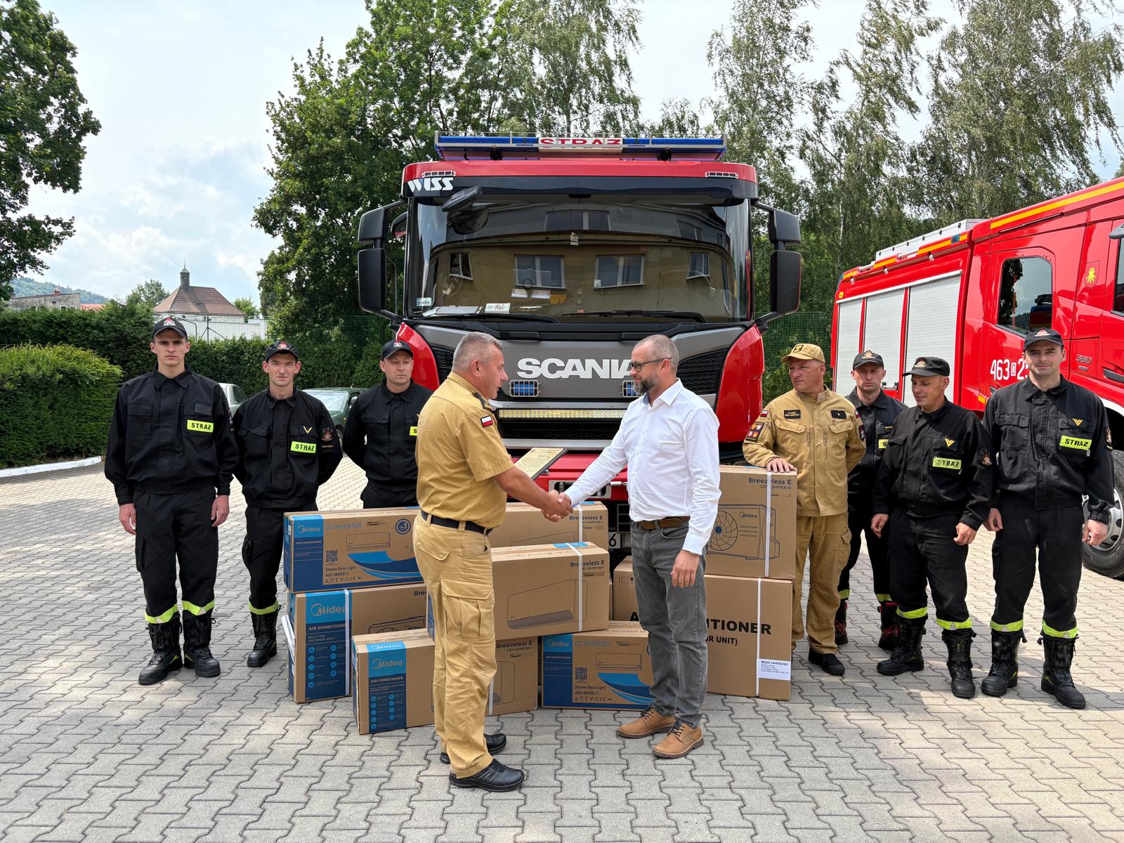 Przekazanie klimatyzatorów dla strażaków z Jednostki Ratowniczo-Gaśniczej w Nowej Rudzie