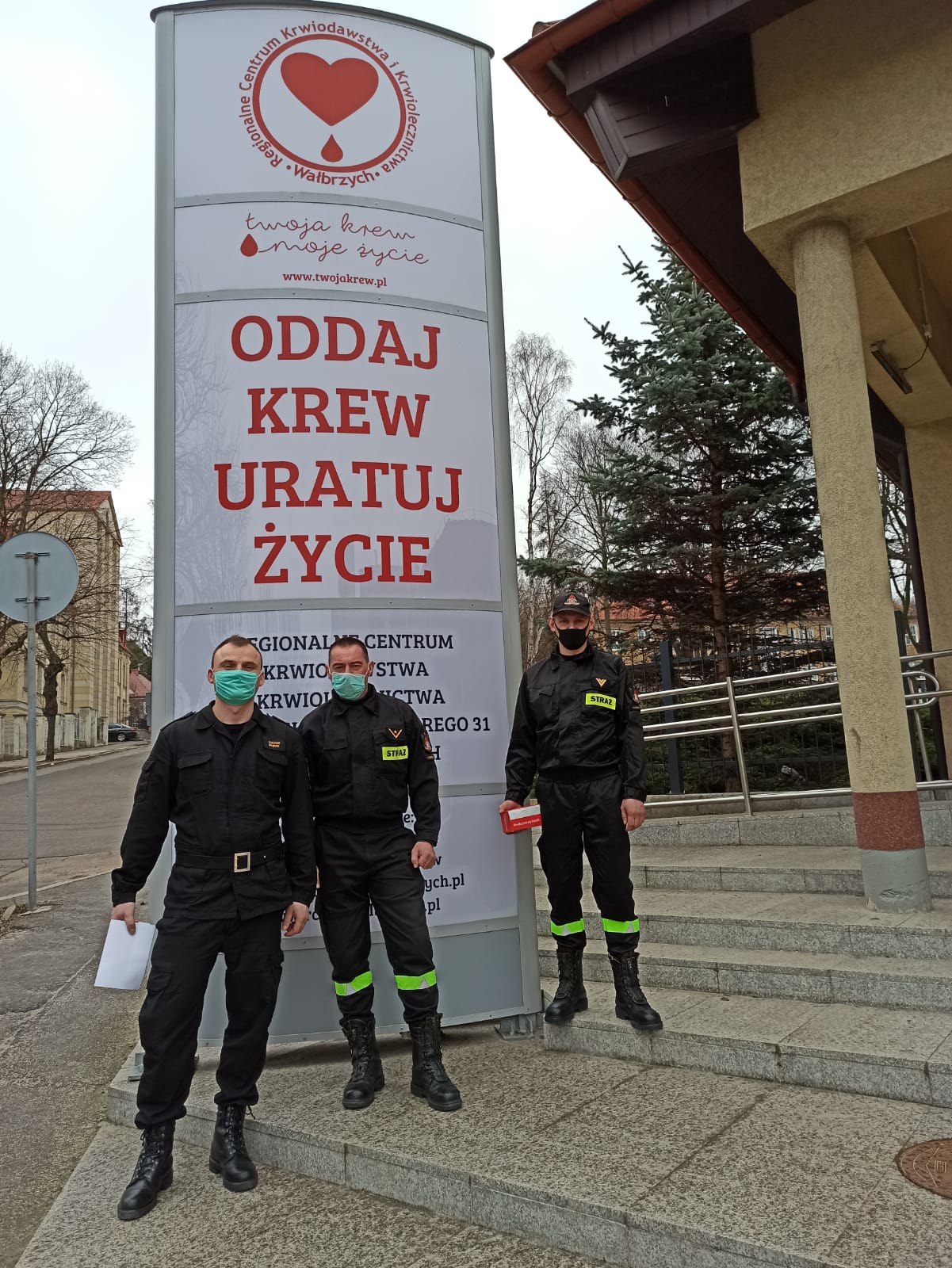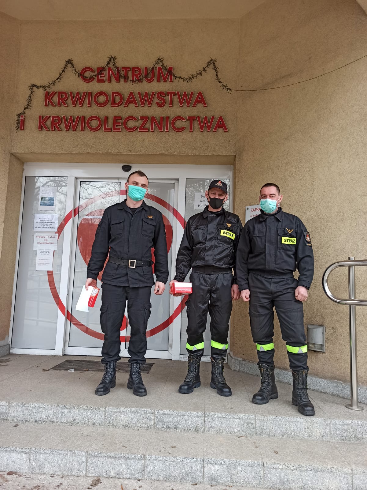 W poniedziałek 29 marca br. do Regionalnego Centrum Krwiodawstwa i Krwiolecznictwa w Wałbrzychu przy ul. Bolesława Chrobrego 31 zgłosili się ozdrowieńcy z Komendy Powiatowej Państwowej Straży Pożarnej w Kłodzku. Młodszy kapitan Łukasz Babiak, młodszy aspirat Daniel Paluszek oraz starszy ogniomistrz Grzegorz Hatala teraz kiedy już przebyli Covid-19 postanowili podzielić się swoim osoczem z najbardziej potrzebującymi. Osocze osoby, która przebyła zakażenie SARS-CoV-2 zawiera przeciwciała, które mogą uratować zdrowie oraz życie chorym na COVID - 19. Procedura pobrania osocza jest bezbolesna i w zależności od metody trawa od kilku minut w przypadku pobrania 450 ml krwi pełnej,