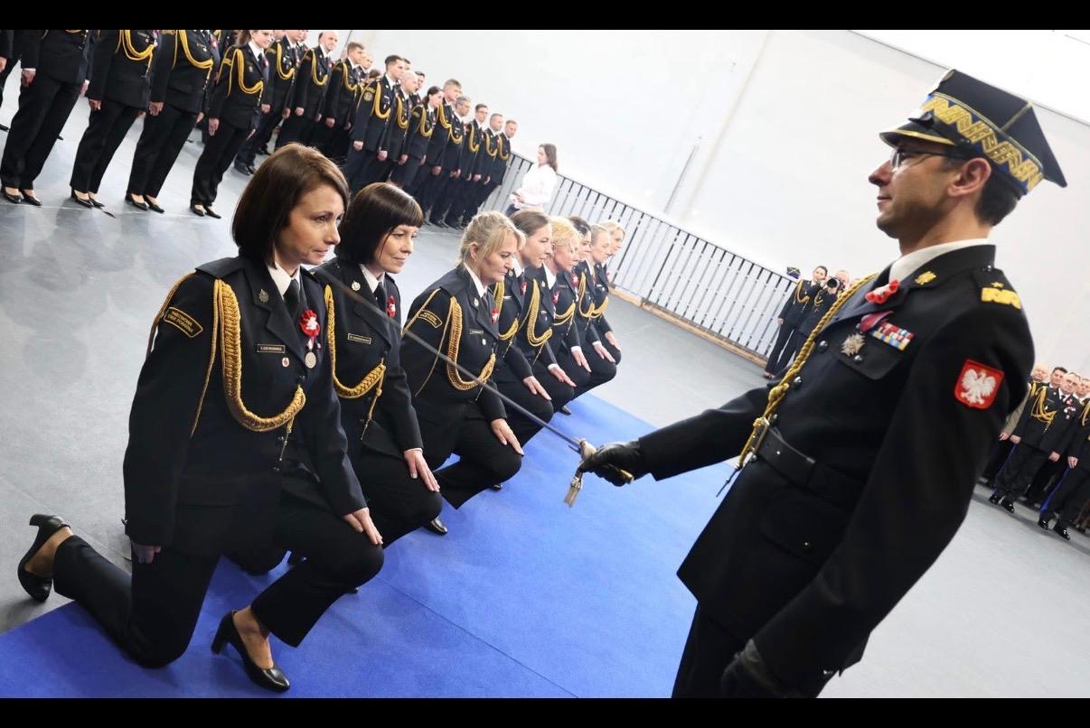 Podczas uroczystości komendant główny PSP, nadbryg. Wojciech Kruczek, dokonał aktu promocji na pierwszy stopień oficerski Państwowej Straży Pożarnej. Awans na stopień młodszego kapitana PSP otrzymało 94 strażaków, którym nadanie stopnia zatwierdził Minister Spraw Wewnętrznych i Administracji, Pan Marcin Kierwiński. W gronie awansowanych znalazła się również nasza koleżanka, mł. kpt. Kinga Pawlak, która została pierwszą oficer w historii Komendy Powiatowej PSP w Kłodzku.