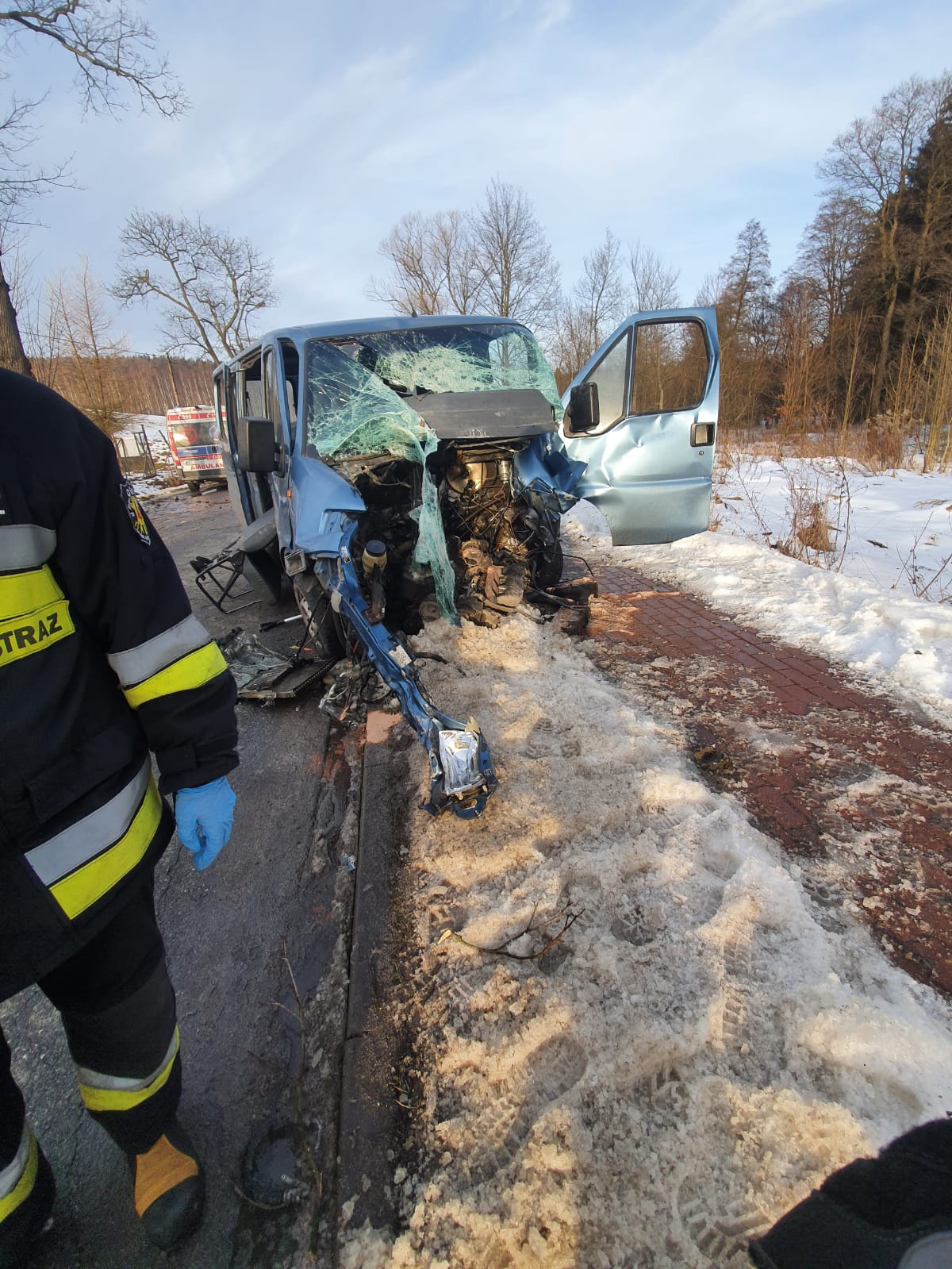 20.02.2021 r. godz. 15:49 – Nowa Ruda, ul. Sokola (Droga Powiatowa nr 3356D) – wypadek drogowy z udziałem samochodu dostawczego FIAT Ducato. Przypuszczalnie w wyniku niedostosowania prędkości do warunków panujących na drodze przez kierującego pojazdem dostawczym Fiat, doszło do uderzenia przodem pojazdu w przydrożne drzewo. W wyniku zdarzenia uszkodzony został samochód dostawczy. Pojazdem podróżowały dwie osoby z czego jedna została zabrana do szpitala przez ZRM. Działania zastępów straży pożarnej polegały na zabezpieczeniu miejsca zdarzenia oraz sorbcji z jezdni plamy płynów eksploatacyjnych. W działaniach ratowniczych udział brał jeden zastęp JRG Nowa Ruda oraz dwa zastępy OSP KSRG (Jugów oraz Nowa Ruda-Słupiec) – 10 ratowników.