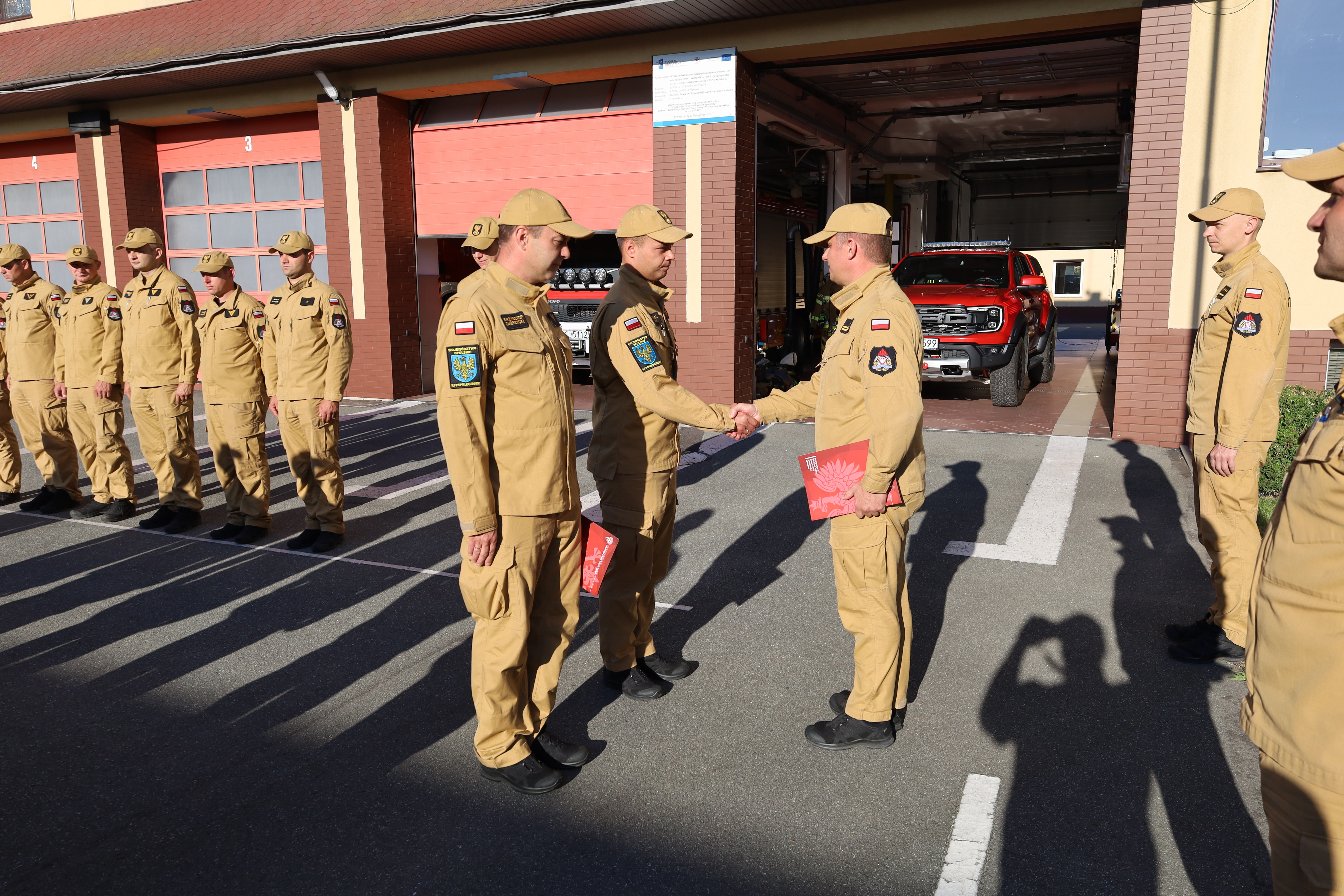 19 sierpnia 2025 r. w Jednostce Ratowniczo-Gaśniczej w Kluczborku odbyła się uroczysta zmiana służby, w której oprócz zmian służbowych udział wziął Zastępca Komendanta Powiatowego PSP w Kluczborku, mł. bryg. Łukasz Olejnik.