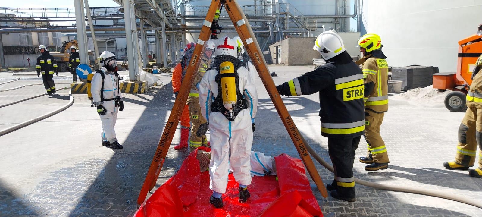 Ćwiczenia sprawdzały dodatkowo przygotowanie pracowników do prowadzenia sprawnej ewakuacji, alarmowania podmiotów ratowniczych oraz współdziałanie z kierującym działaniem ratowniczym. Po dotarciu na miejsce ćwiczący otrzymali informację od kierującego ewakuacją o 6 osobach zaginionych. Działania polegały na przeszukaniu budynków, przygotowaniu rot RIT, rozpoznaniu zagrożeń chemicznych dekontaminacji wstępnej i neutralizacji zagrożenia.
