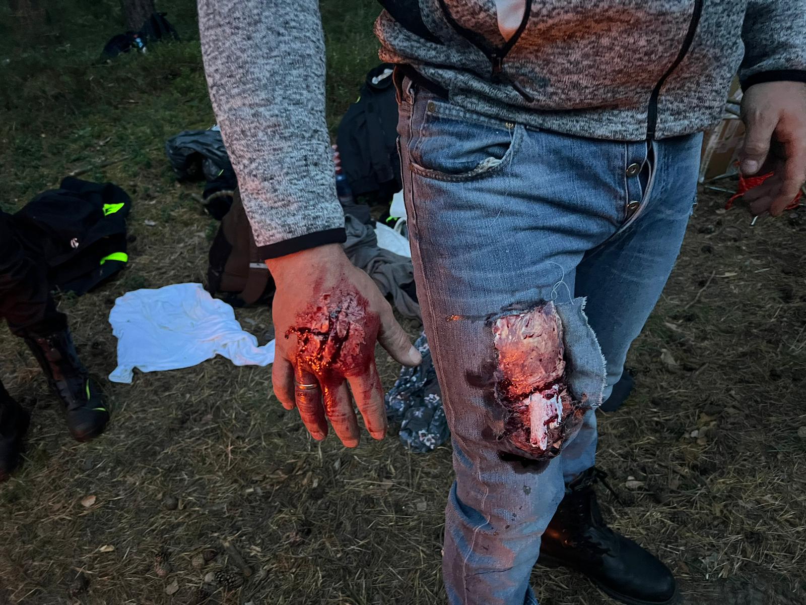 W związku z wielkością zdarzenia i koniecznością pilnego dotarcia do osób poszkodowanych SK organizuje 3 plutony ratownicze wyposażone w pilarki spalinowe oraz zestawy PSP R1. Ich zadaniem jest jak najszybsze dotarcie na miejsce zdarzenia i pomoc przebywającym tam ludziom. Do działań dysponowana jest również Wojskowa Straż Pożarna (WSP) Szumirad która dysponuje obsadą i sprzętem mogącym prowadzić działania wspólnie wraz z zastępami OSP i PSP. W trakcie dotarcia zastępów do miejscowości Kamieniec okazuje się, że jedyną droga do obozowiska jest trakt leśny wokół nieużytkowanej linii kolejowej relacji Kluczbork – Fosowskie, jednak należy usunąć z niego powalone drzewa na długości 500 m. Po chwili do SK docierają informacje mówiące o wielu osobach uwięzionych w obozowisku, które doznały urazów a kilka osób jest uznane za zaginione.