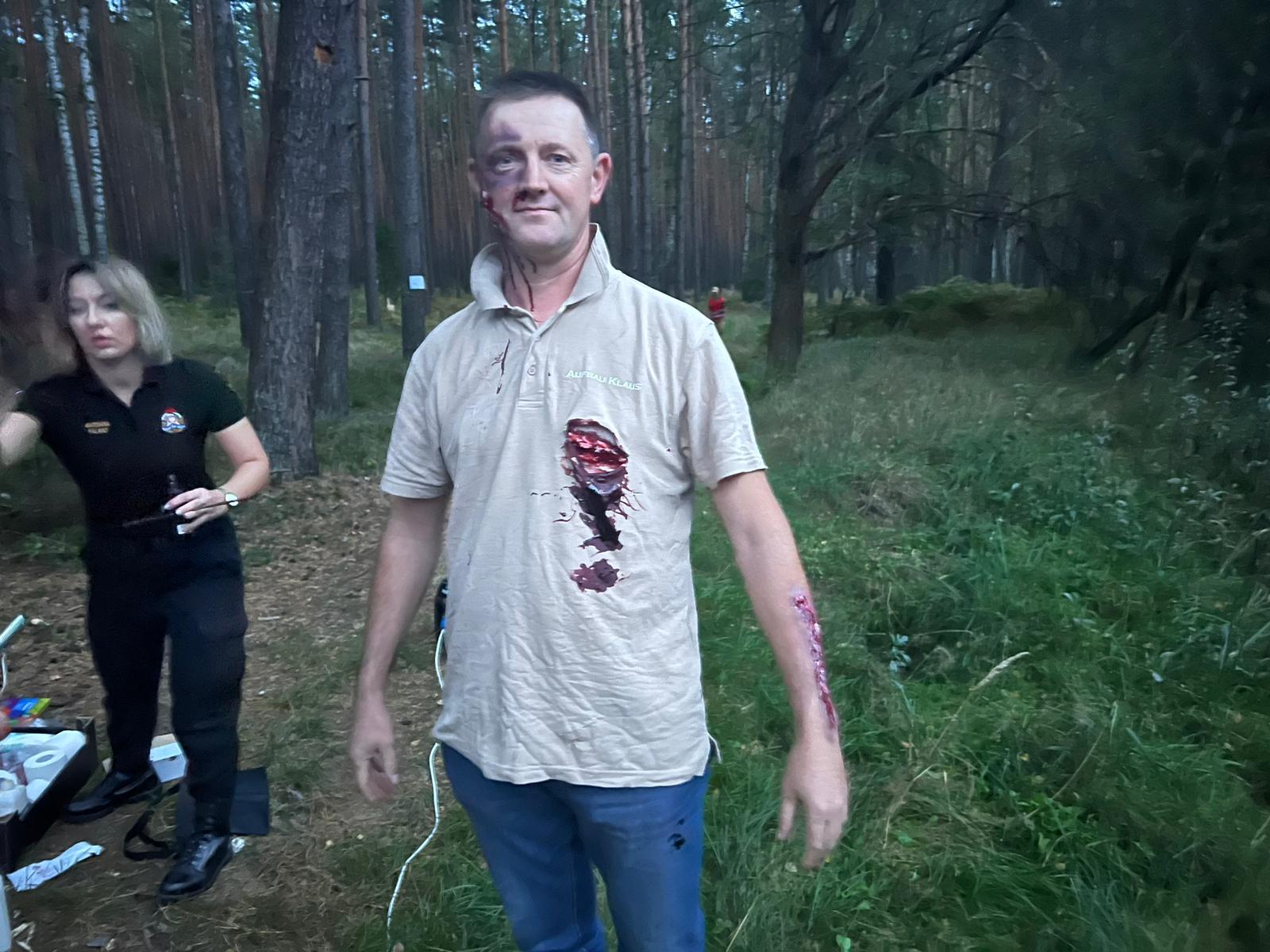 Jako PSP mieliśmy okazję zainscenizować skomplikowaną sytuację, która wymagała szybkiej i zorganizowanej reakcji jednostek ratowniczych z naszego powiatu. Działania miały miejsce na terenie lasu w obrębie dawnego siedliska Kamieniec, gdzie powstał obóz poszukiwawczy (archeologiczny). Miejsce obozu zostało zlokalizowane w samym środku lasu, a jego uczestnicy (pozoranci), zajmowali się poszukiwaniami artefaktów pochodzącymi z okresu XX-lecia międzywojennego.