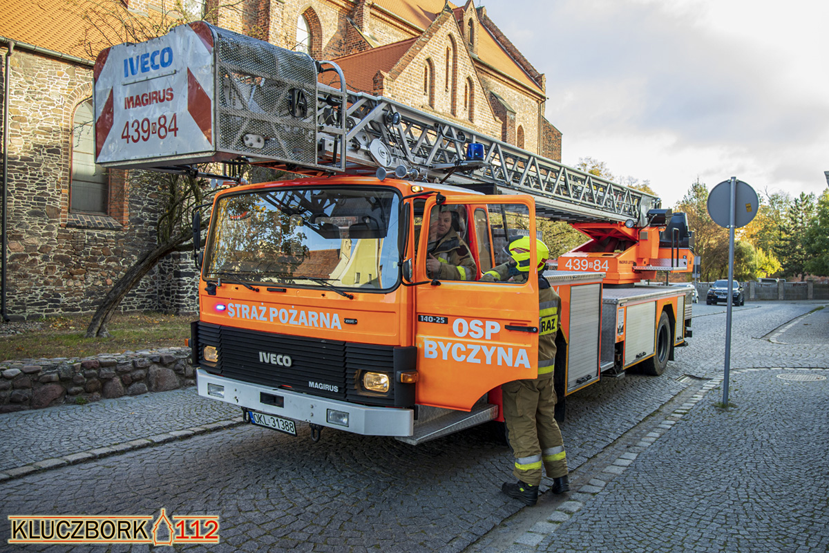 Informatyk zaplątany w linę na wieży kościoła św. Mikołaja i pożar poddasza Zespołu Szkół w Byczynie. Te zdarzenia były tematem ćwiczeń powiatowych pk.: „TOWER 2021”.
