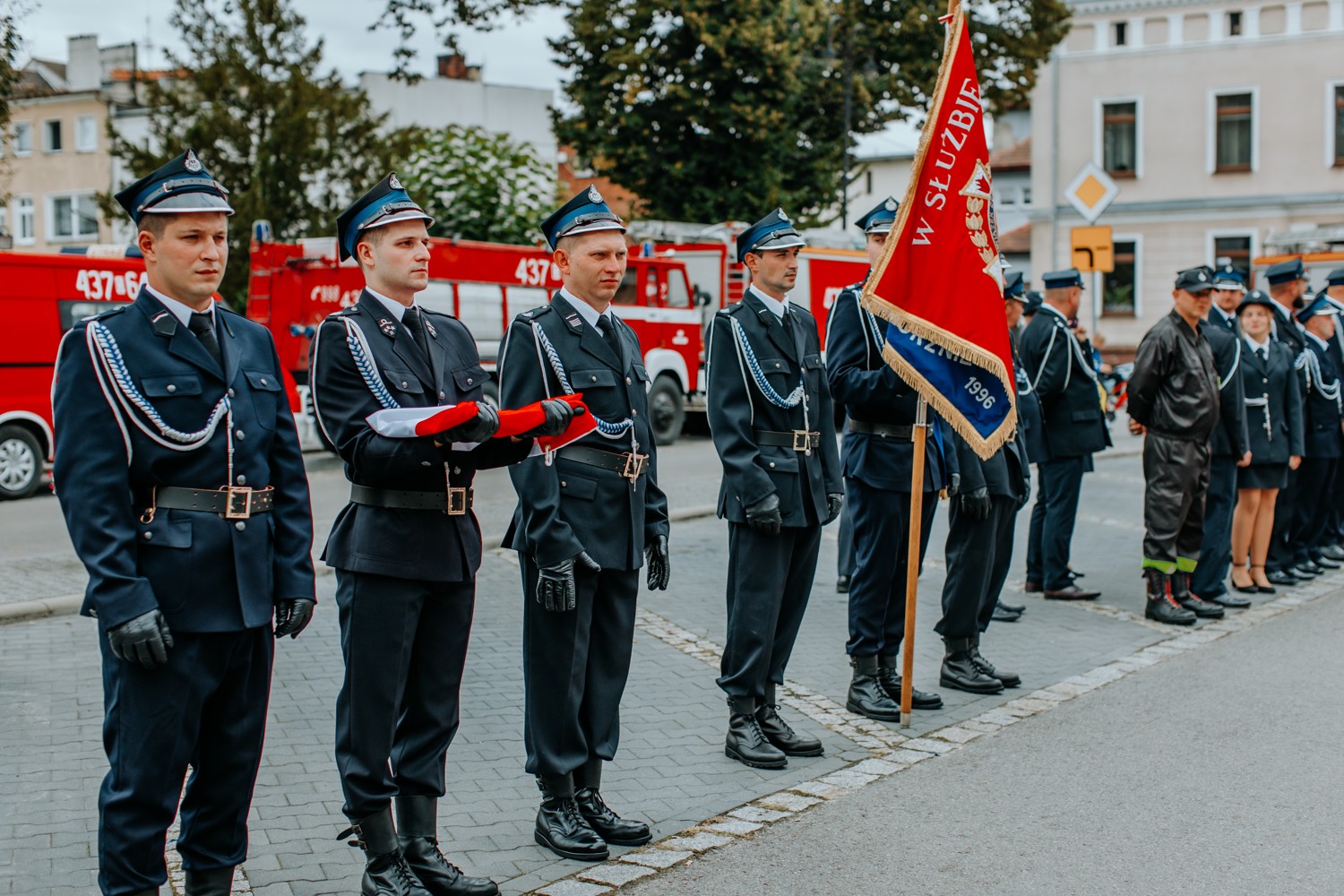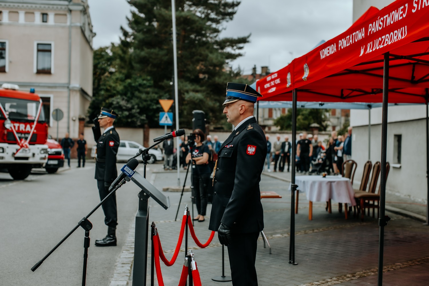 Uroczystość rozpoczęła się złożeniem meldunku zastępcy Opolskiego Komendanta Wojewódzkiego PSP w Opolu st. bryg. Dariuszowi Gieroniowi. Przybyłych gości przywitał gospodarz miasta Burmistrz Jan Leszek Wiącek.