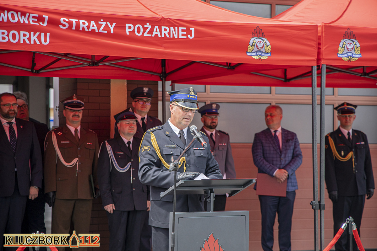 Zaproszeni goście podczas przemówień podkreślali znakomite przygotowanie KP PSP, oraz podległych jednostek OSP do realizacji zadań związanych z codzienną służbą, ale również z zadaniami, które w ostatnim okresie musiały zmierzyć się jednostki ochrony przeciwpożarowej w tym walkę z covid 19 jak i wsparcie przyjaciół z ukrainy. Podczas przemówienia Pan Starosta Powiatu Kluczborskiego Mirosław Birecki przekazał na ręce Komendanta Powiatowego PSP w Kluczborku zestawy do usuwania skutków silnych wiatrów, zestawy te będą wykorzystywane przez strażaków PSP i OSP w sytuacji gdy dojdzie do uszkodzenia połaci dachowych.